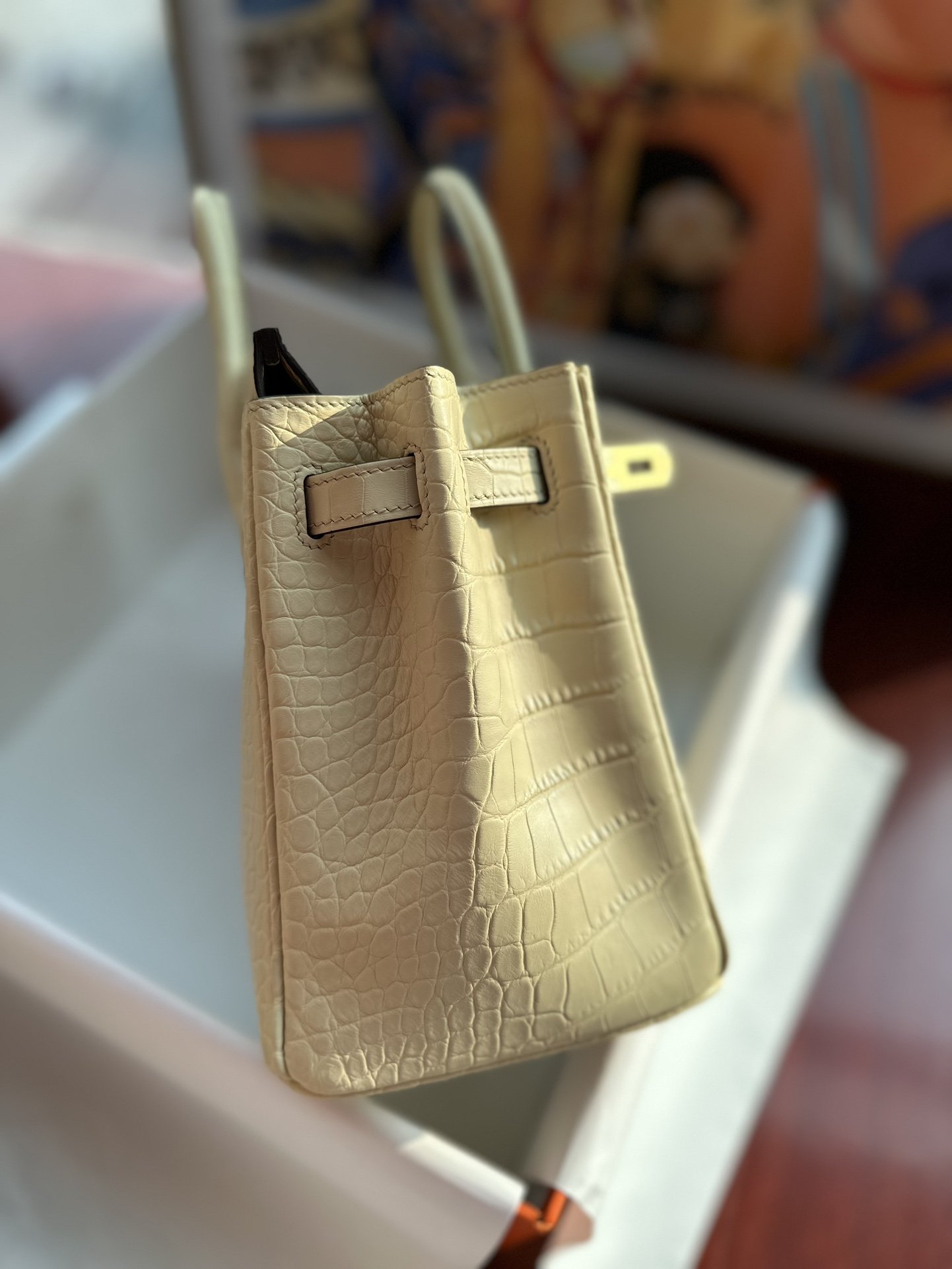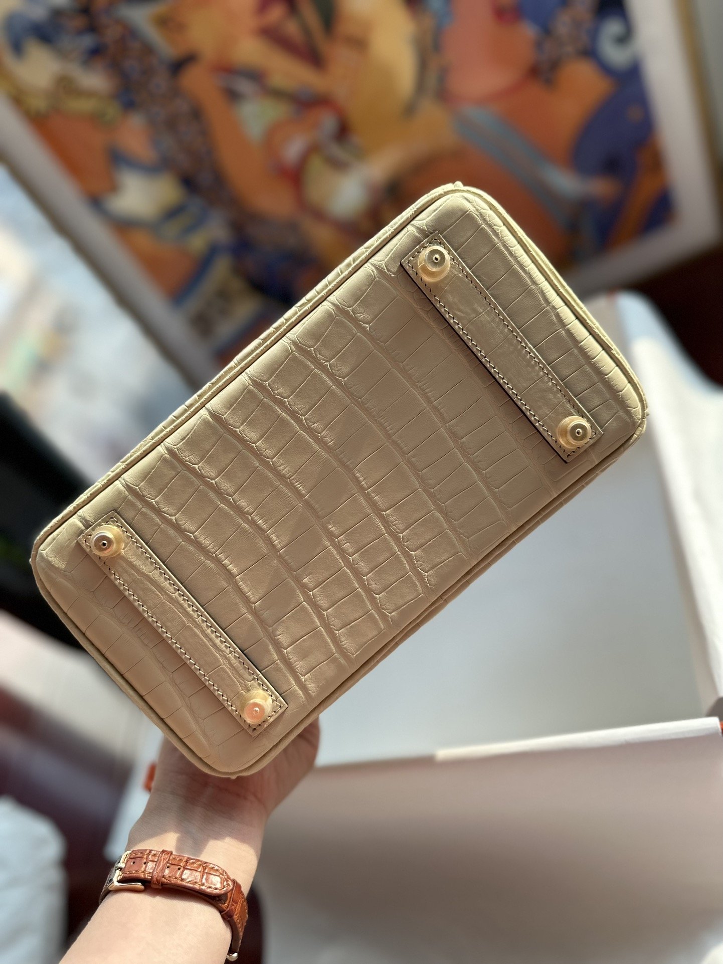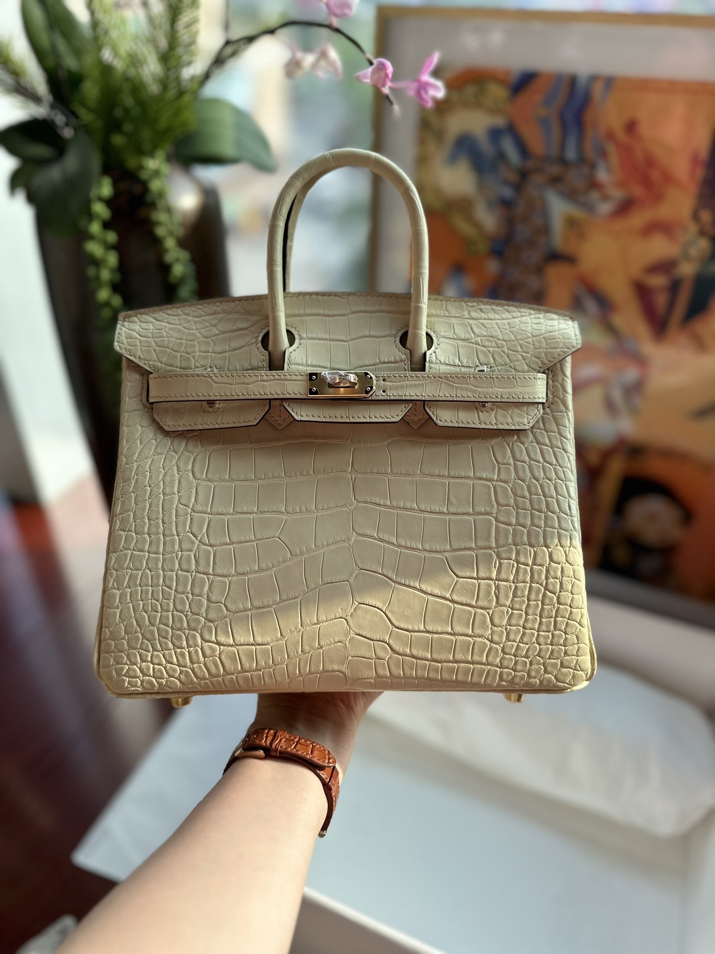 Beautiful spot Birkin 25 American alligator Alligator matte Matte Y1 vanilla Vanille