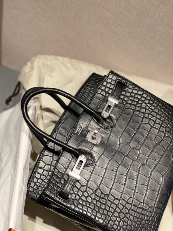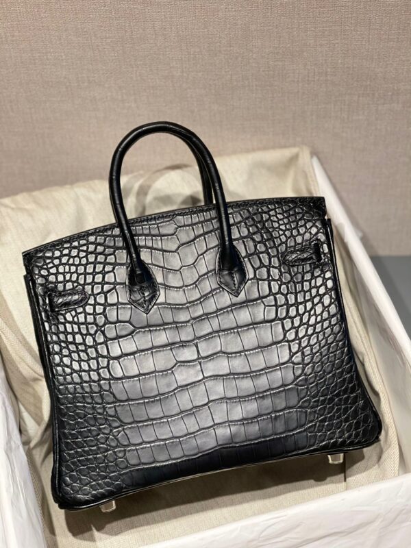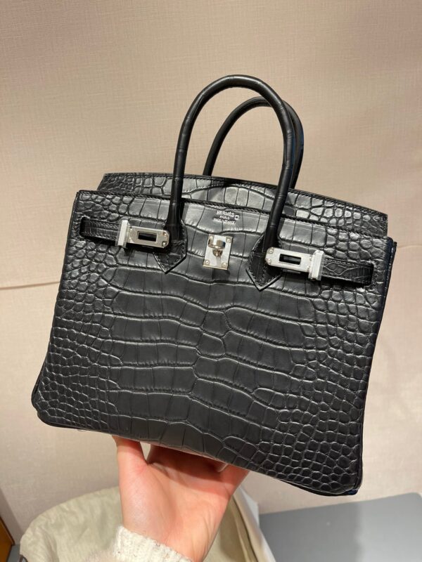 Birkin 25cmMatte Alligator leather. Black. Silver Buckle