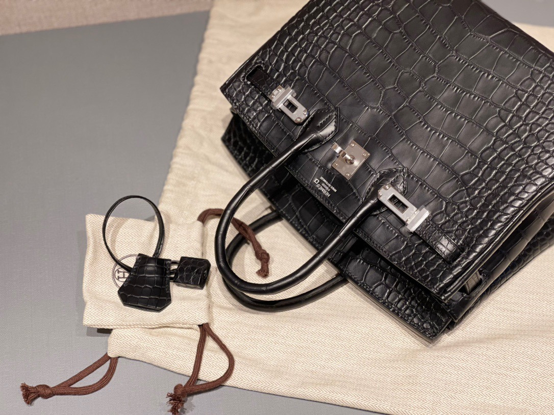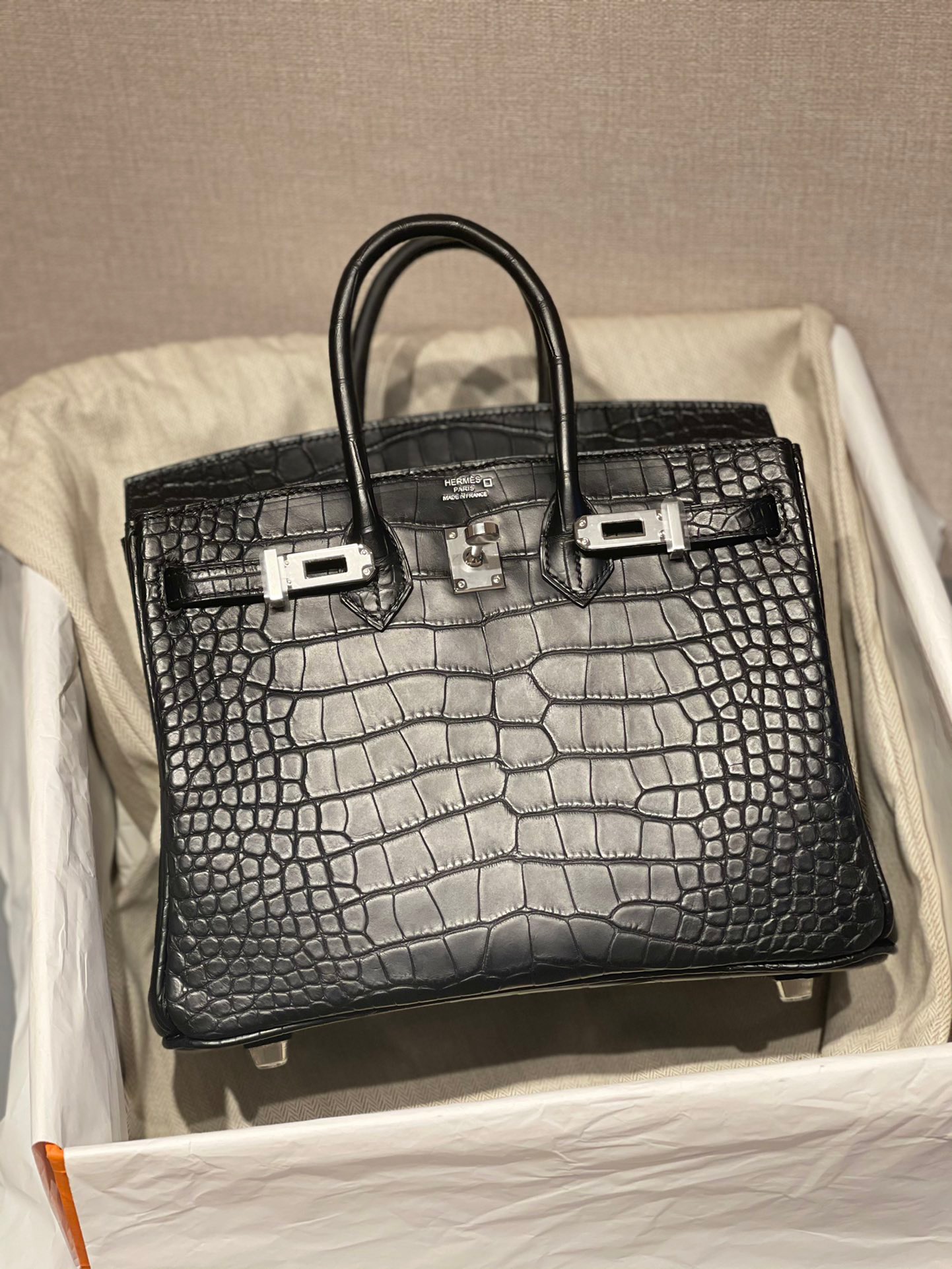 Birkin 25cmMatte Alligator leather. Black. Silver Buckle