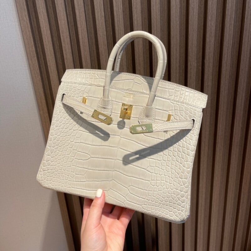 Birkin 25 Matte Alligator Glacier White