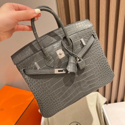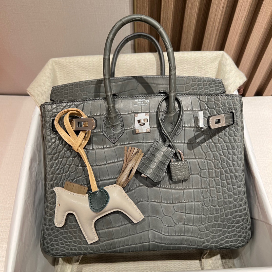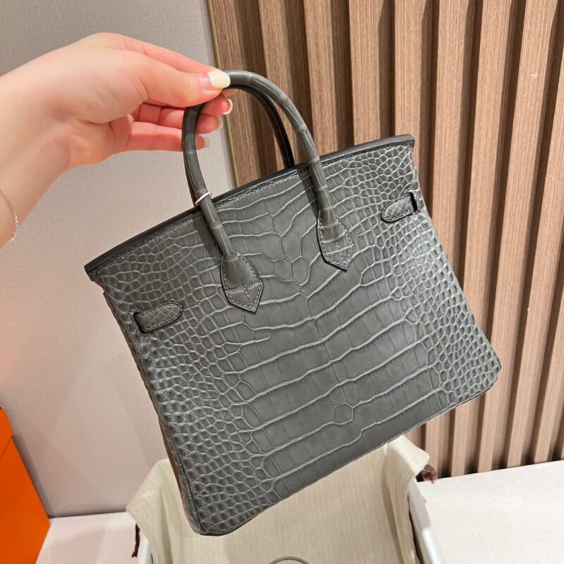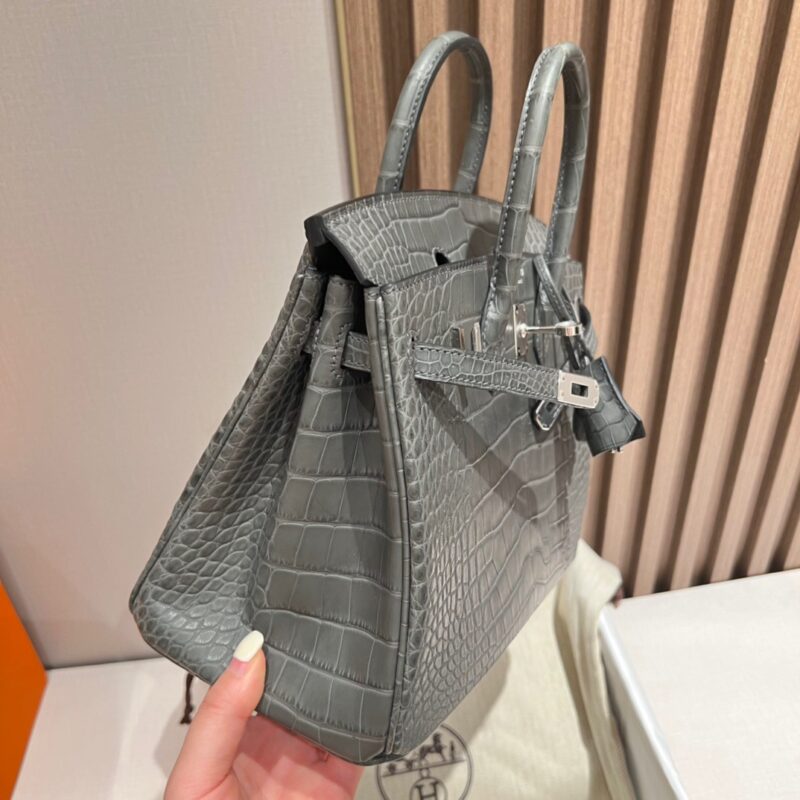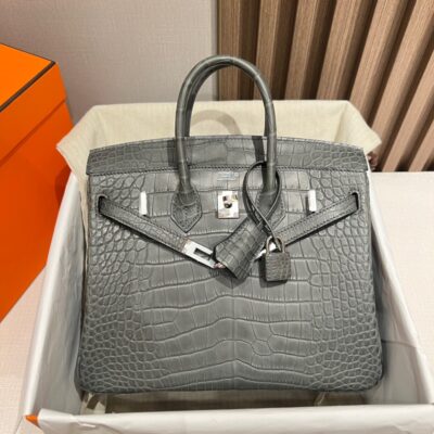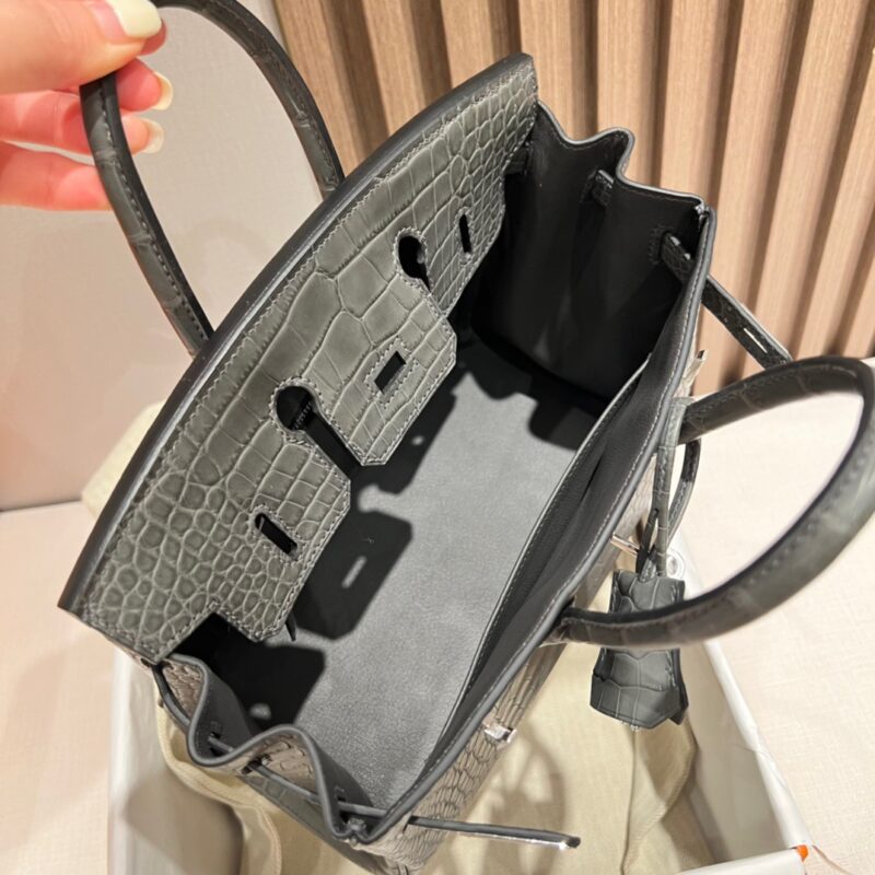 Birkin 25cm Matte Alligator leather. 88 Graphite Gray (Graphite). Silver Buckle