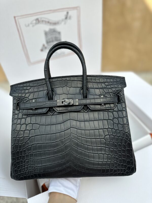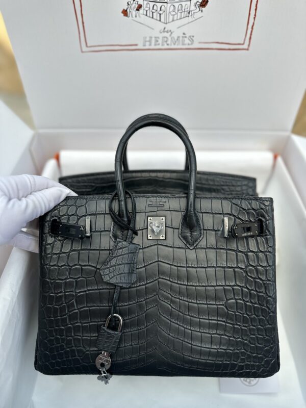 Birkin 25 in Noir Matte Niloticus Crocodile