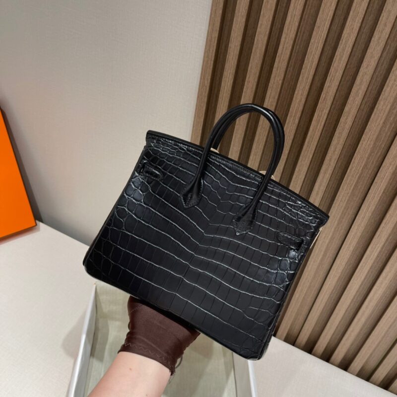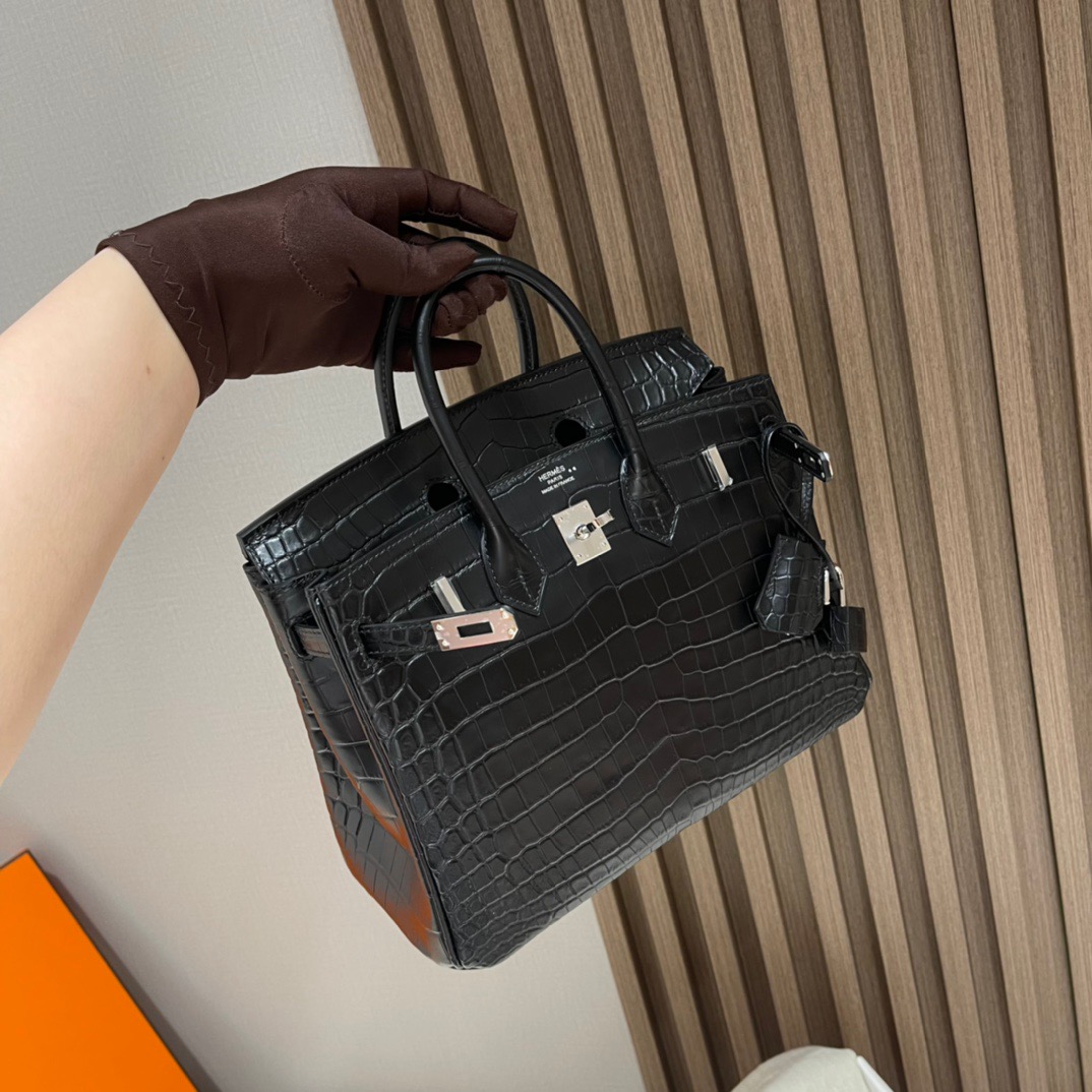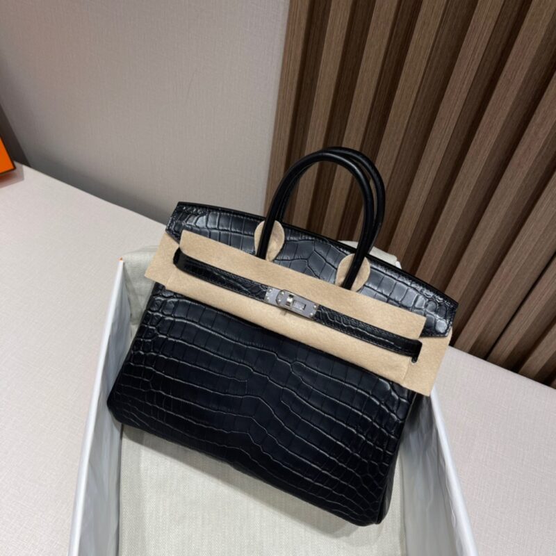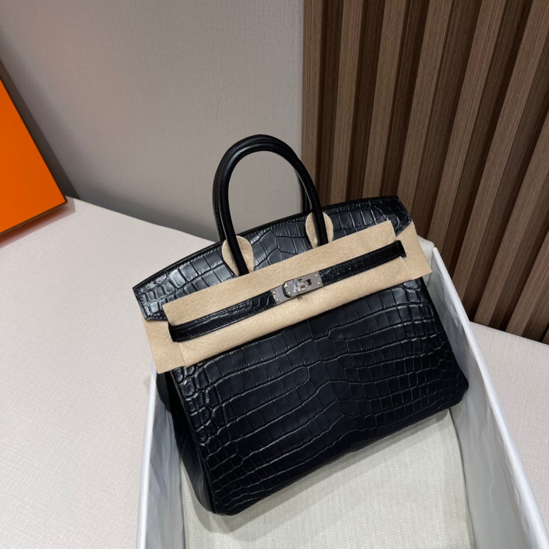 Birkin 25cm Matte Niloticus crocodile Leather. 89 Black (Noir) PHW. Siver Buckle