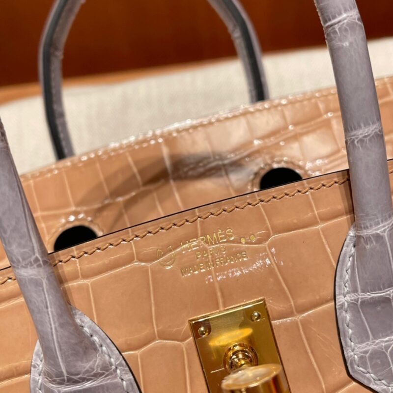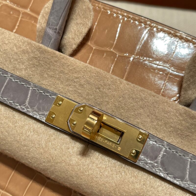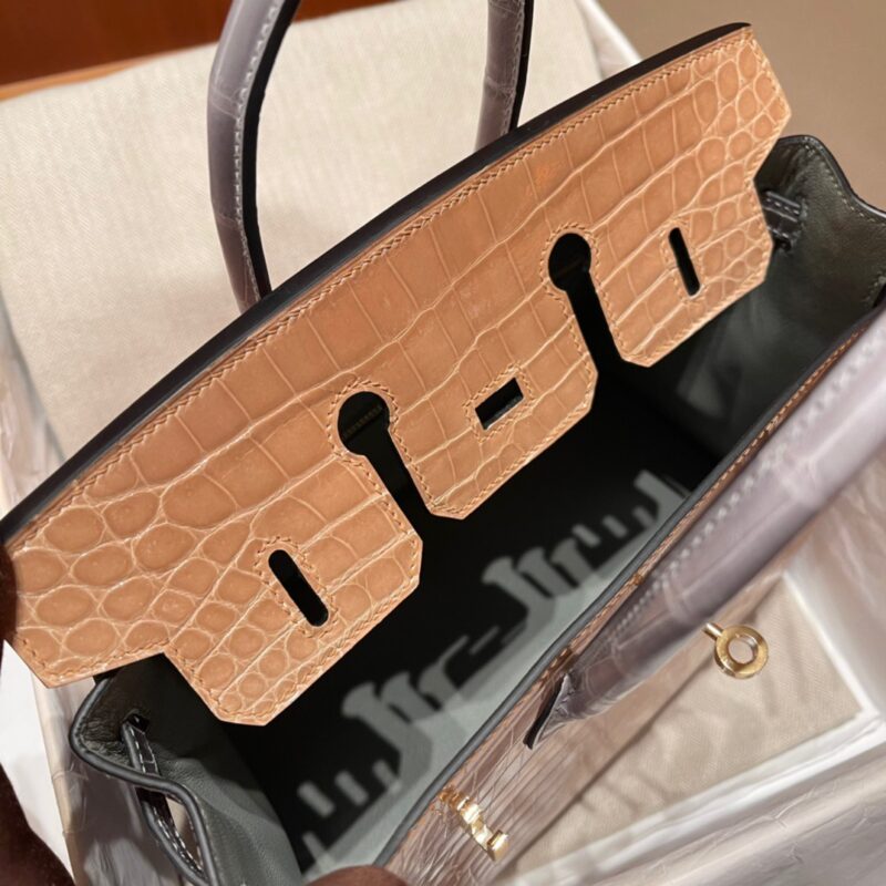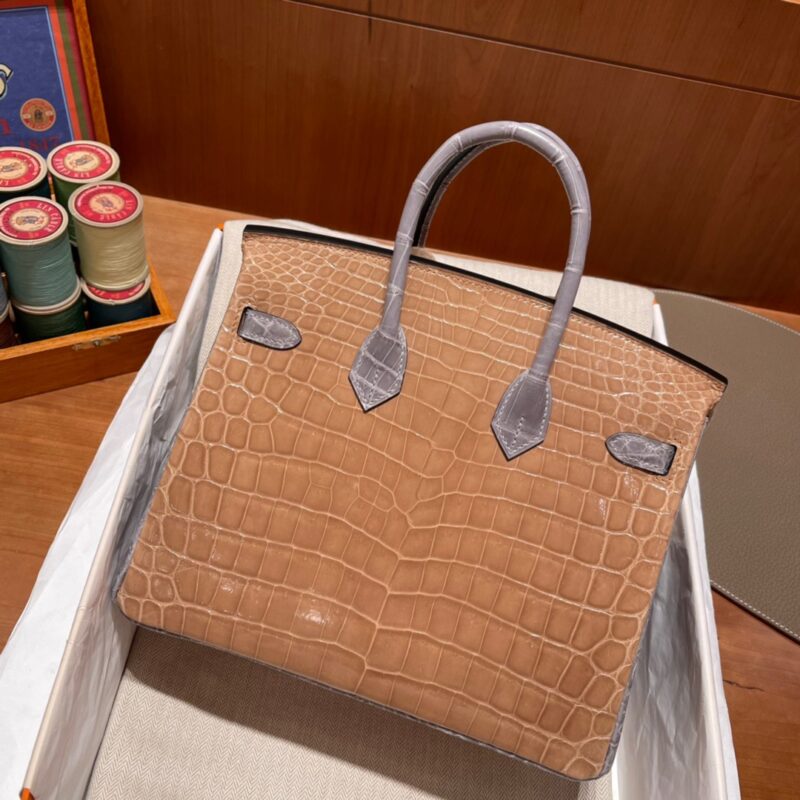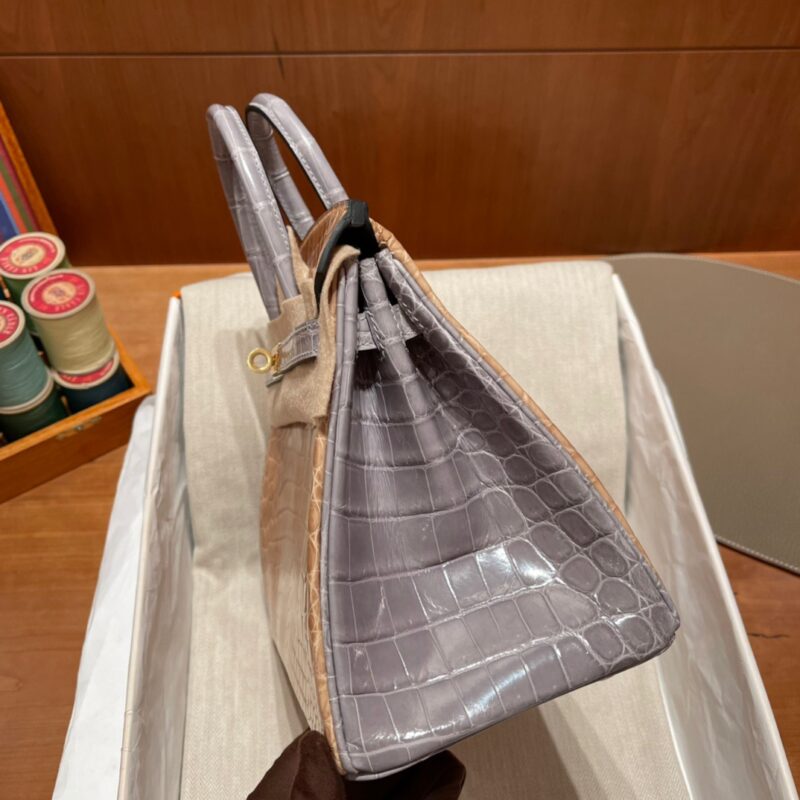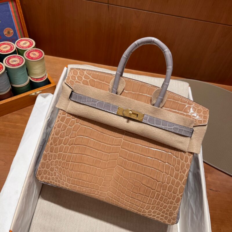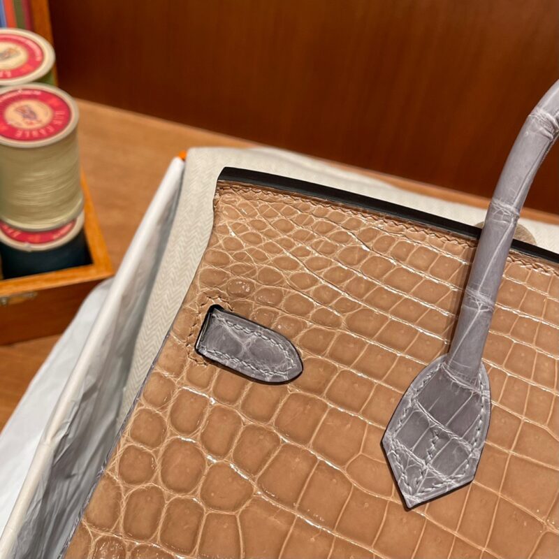 Birkin 25 Niloticus Crocodile Brown&Glacier Blue