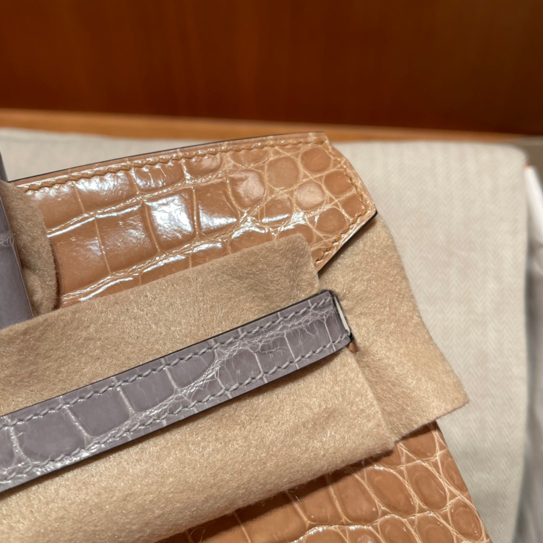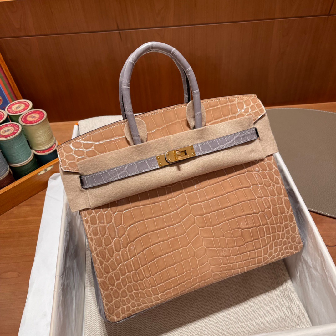 Birkin 25 Niloticus Crocodile Brown&Glacier Blue