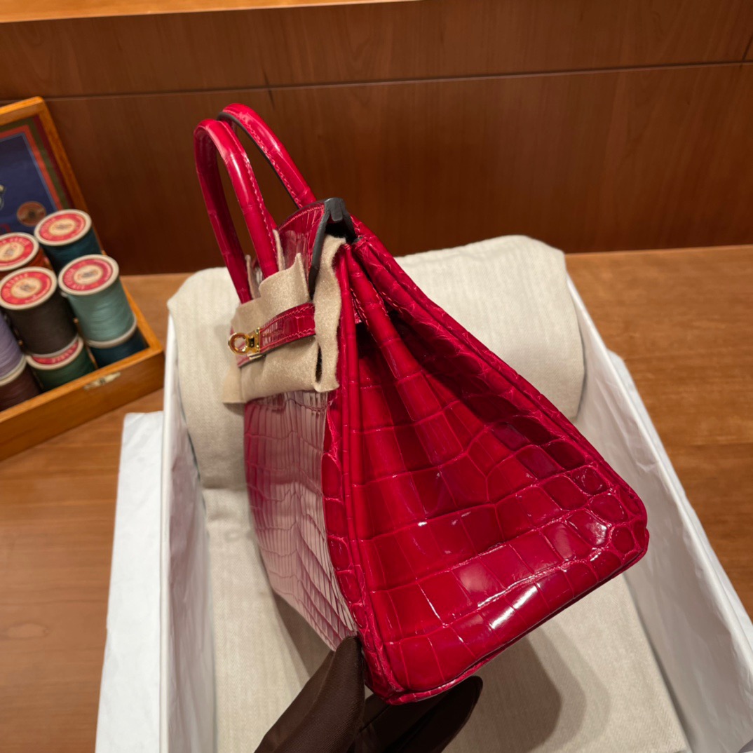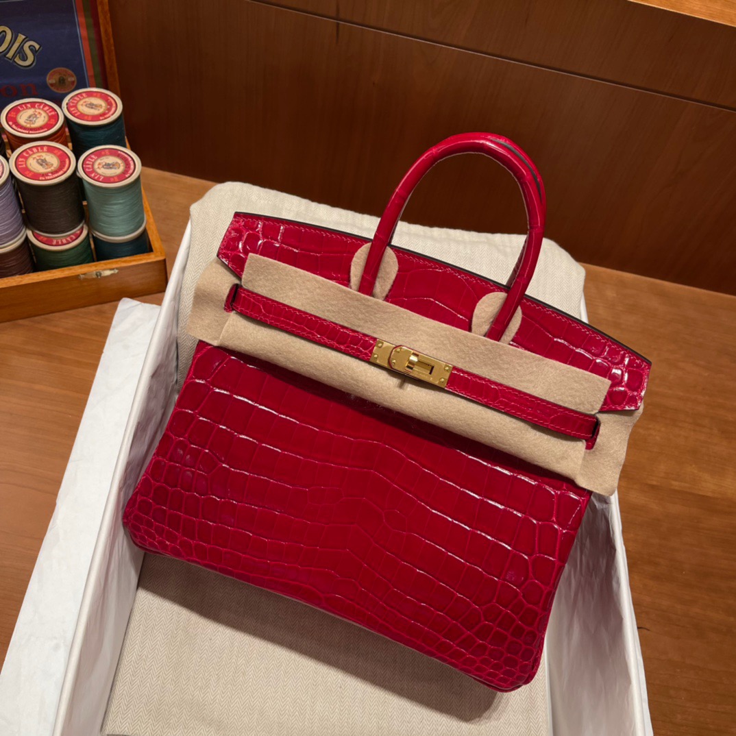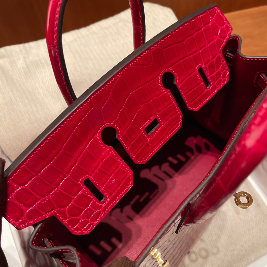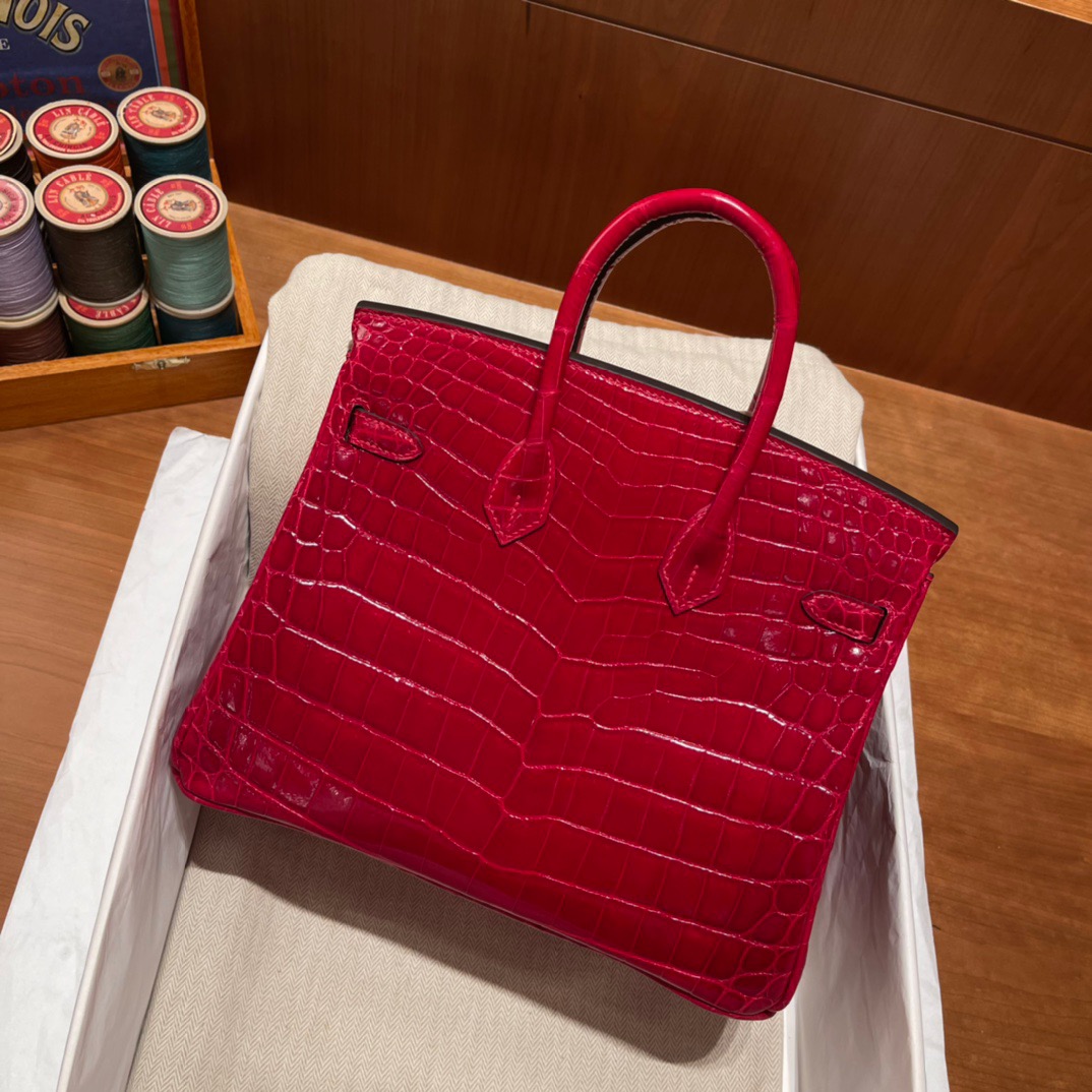 Birkin 25 Niloticus Crocodile Shiny Flag Red