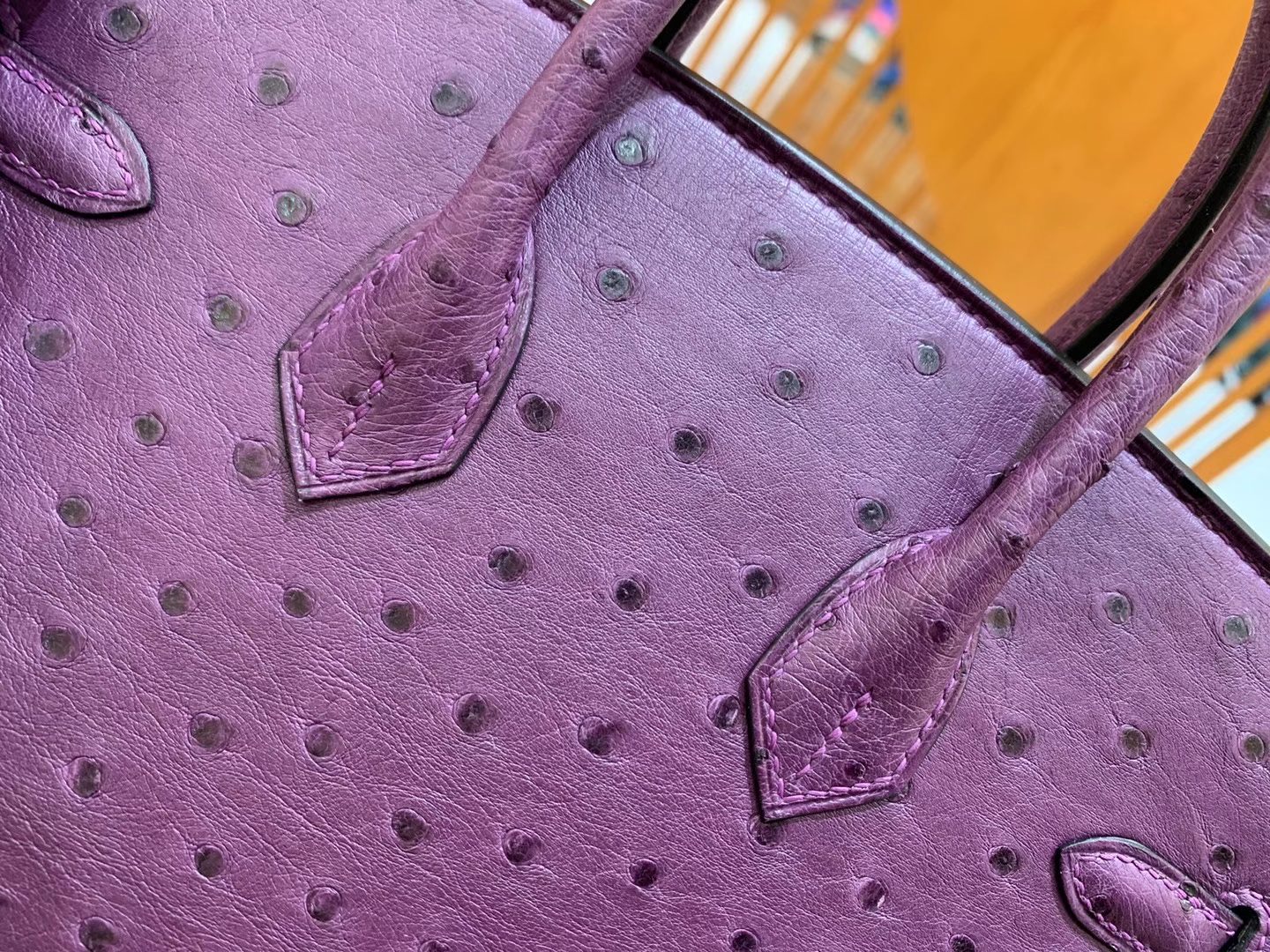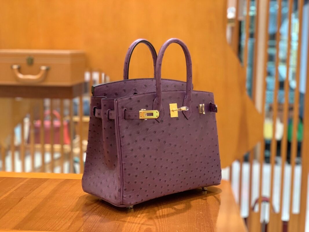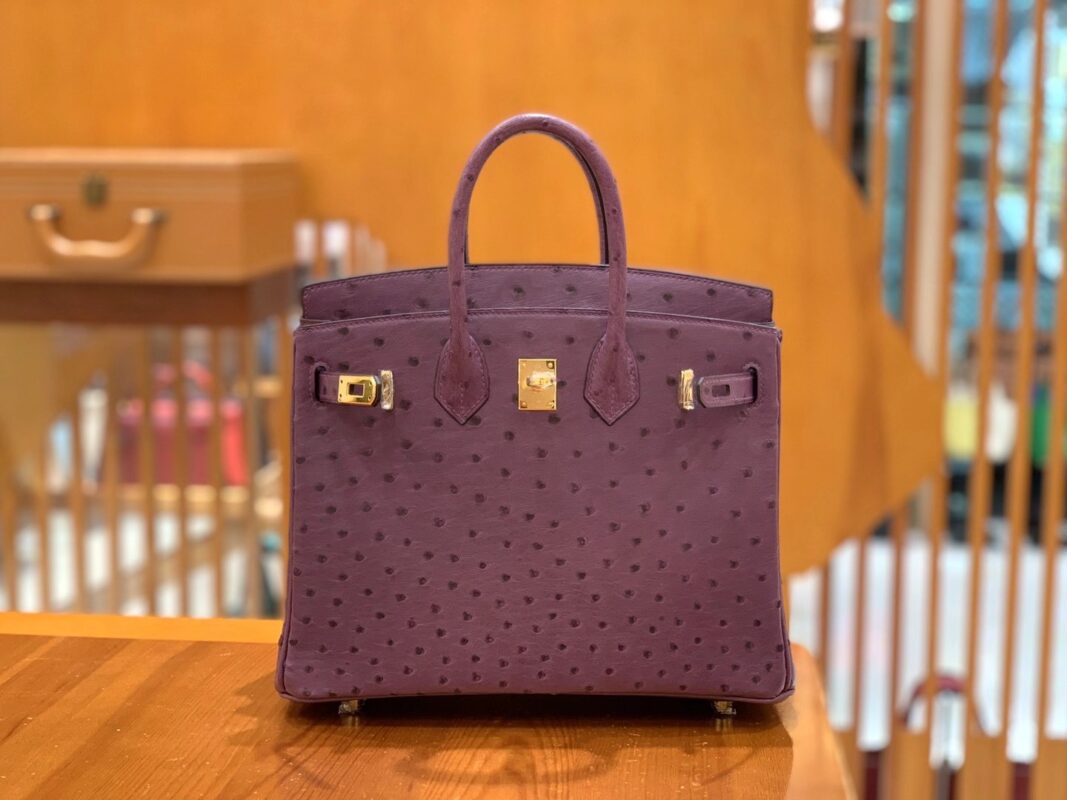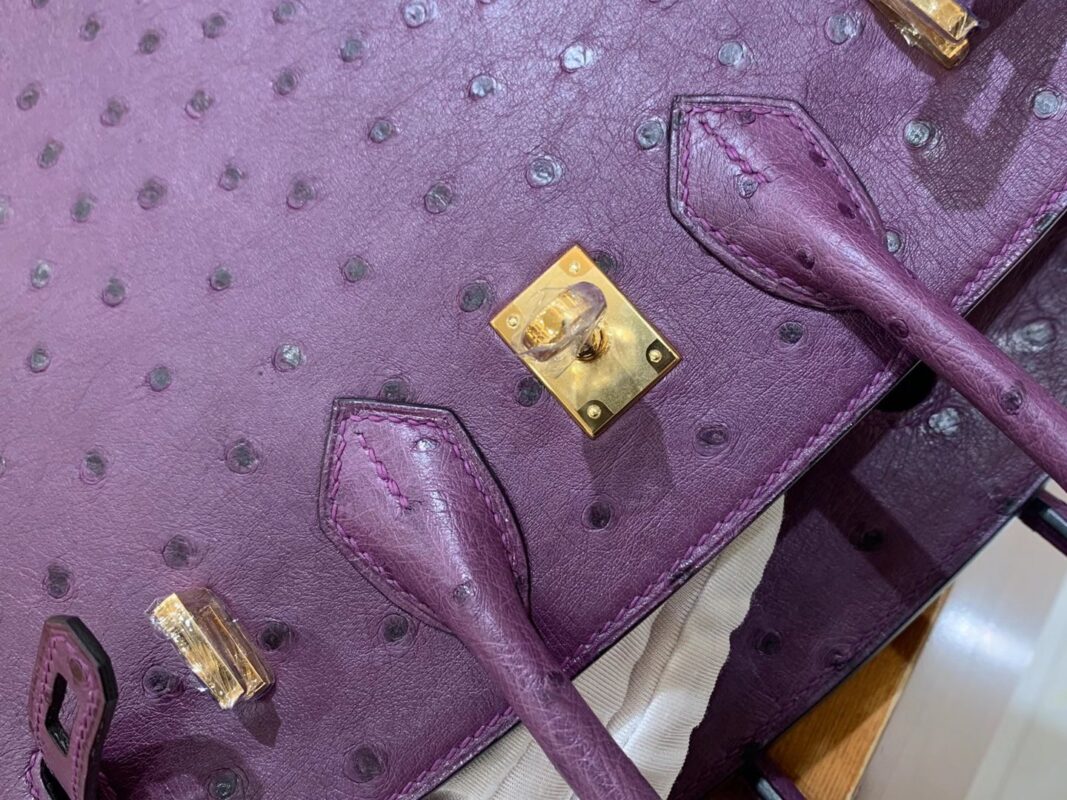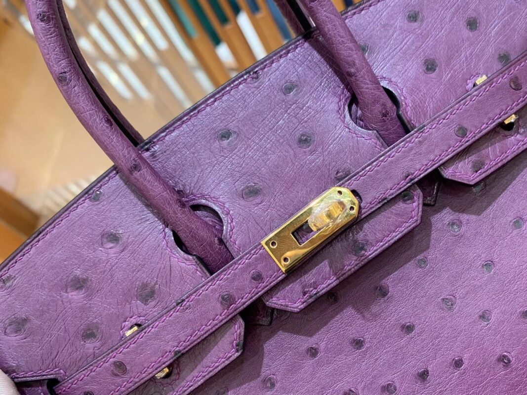 Birkin 25cm Anemone Purple Gold BuckleImported South African KK grade ostrich leather. Hand-sewn