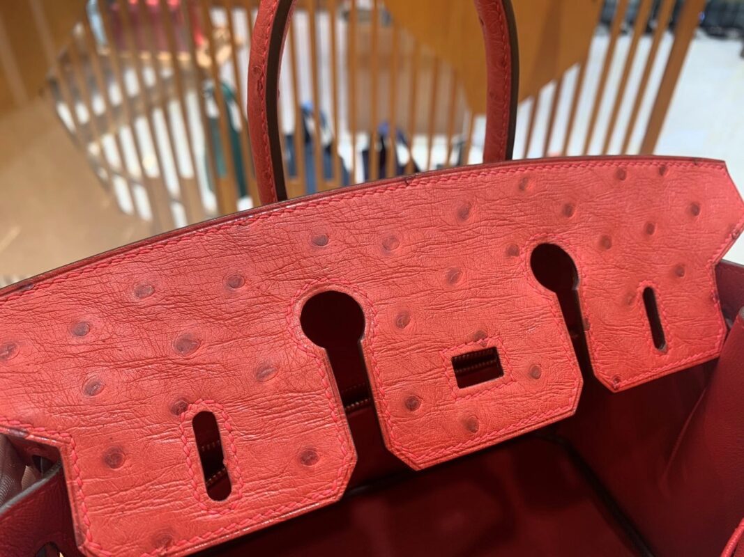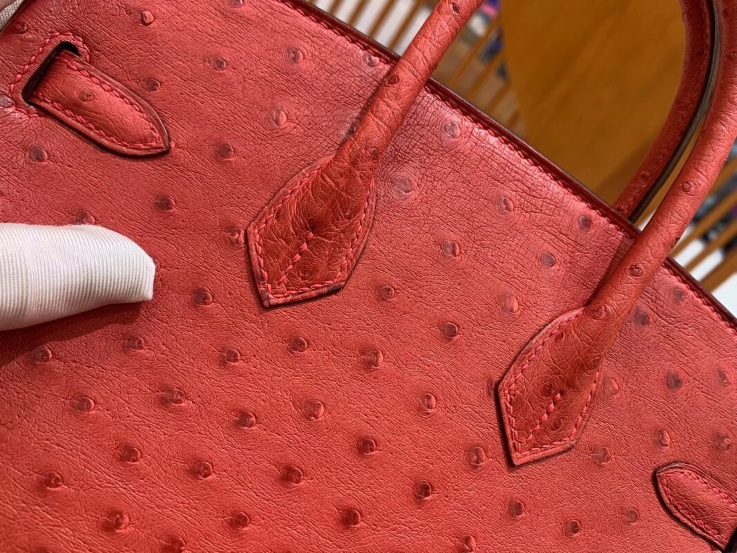 Birkin 25cm Garnet Red Gold BuckleImported South African KK grade ostrich leather. Hand-sewn