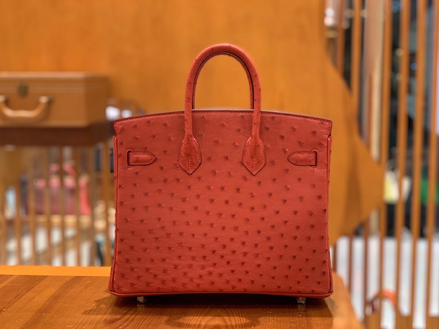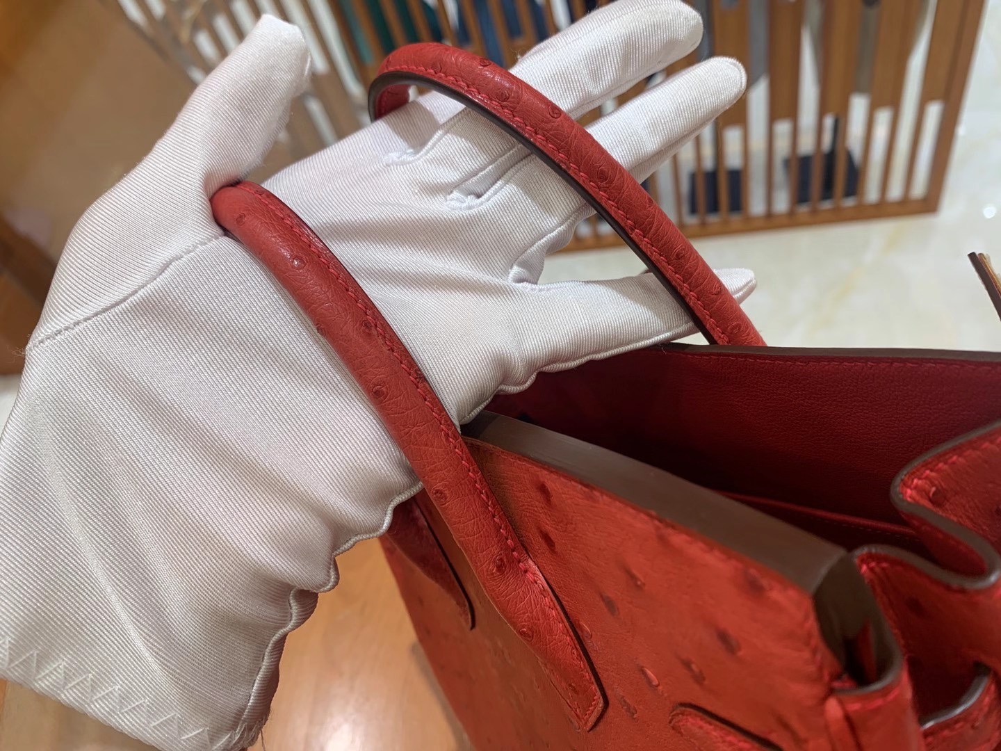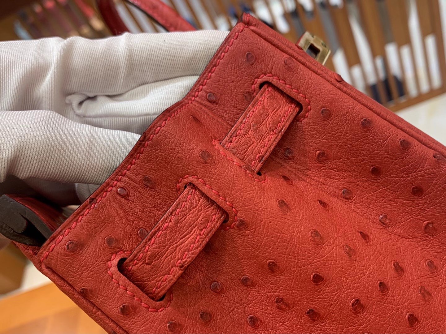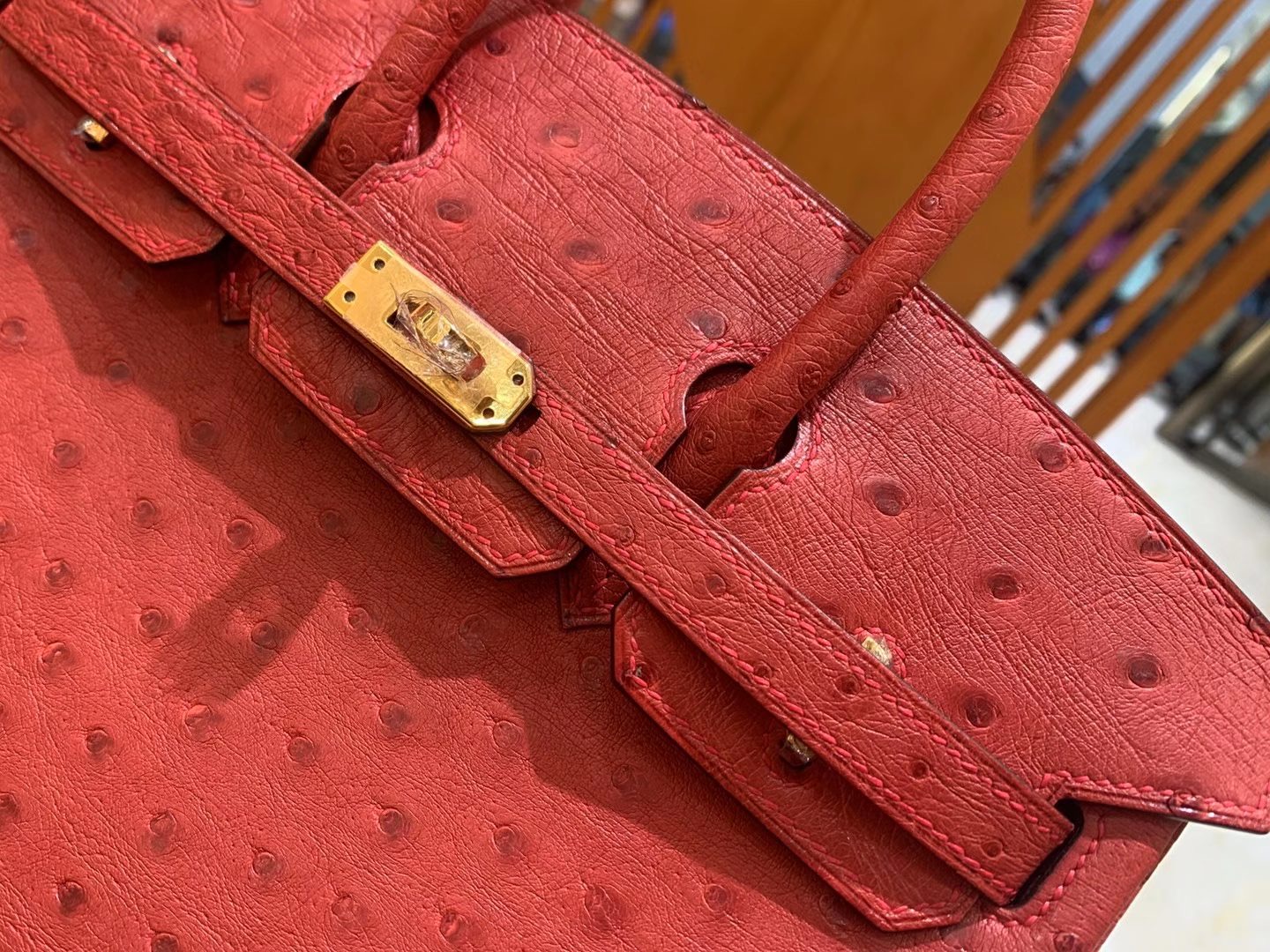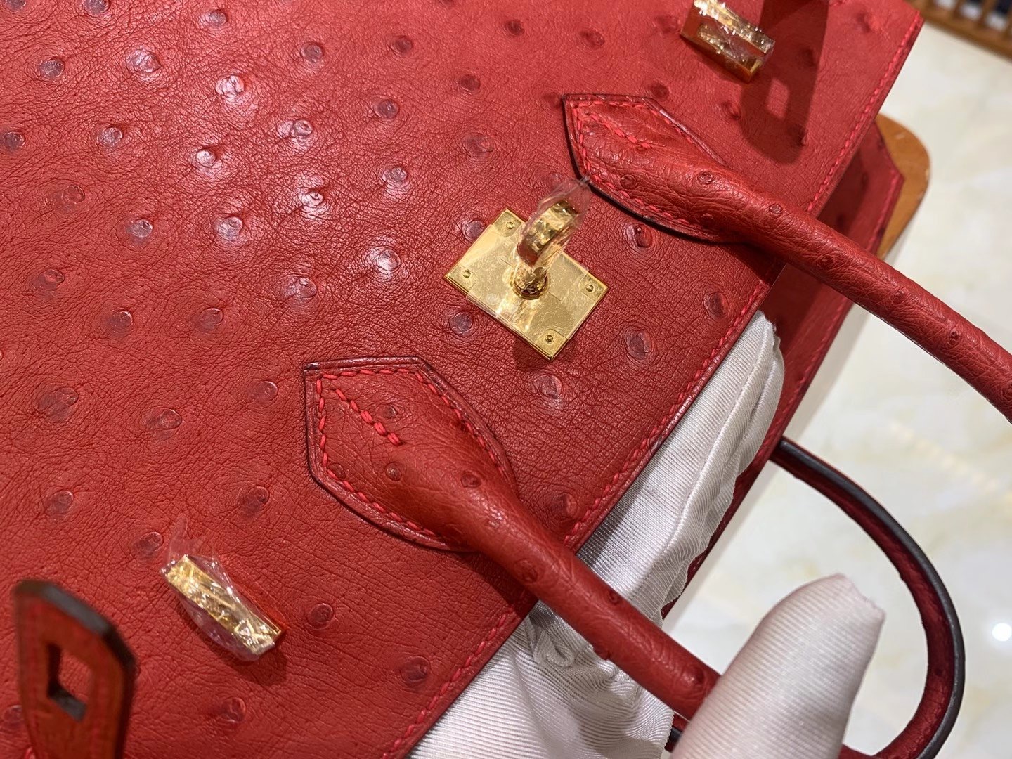 Birkin 25cm Garnet Red Gold BuckleImported South African KK grade ostrich leather. Hand-sewn