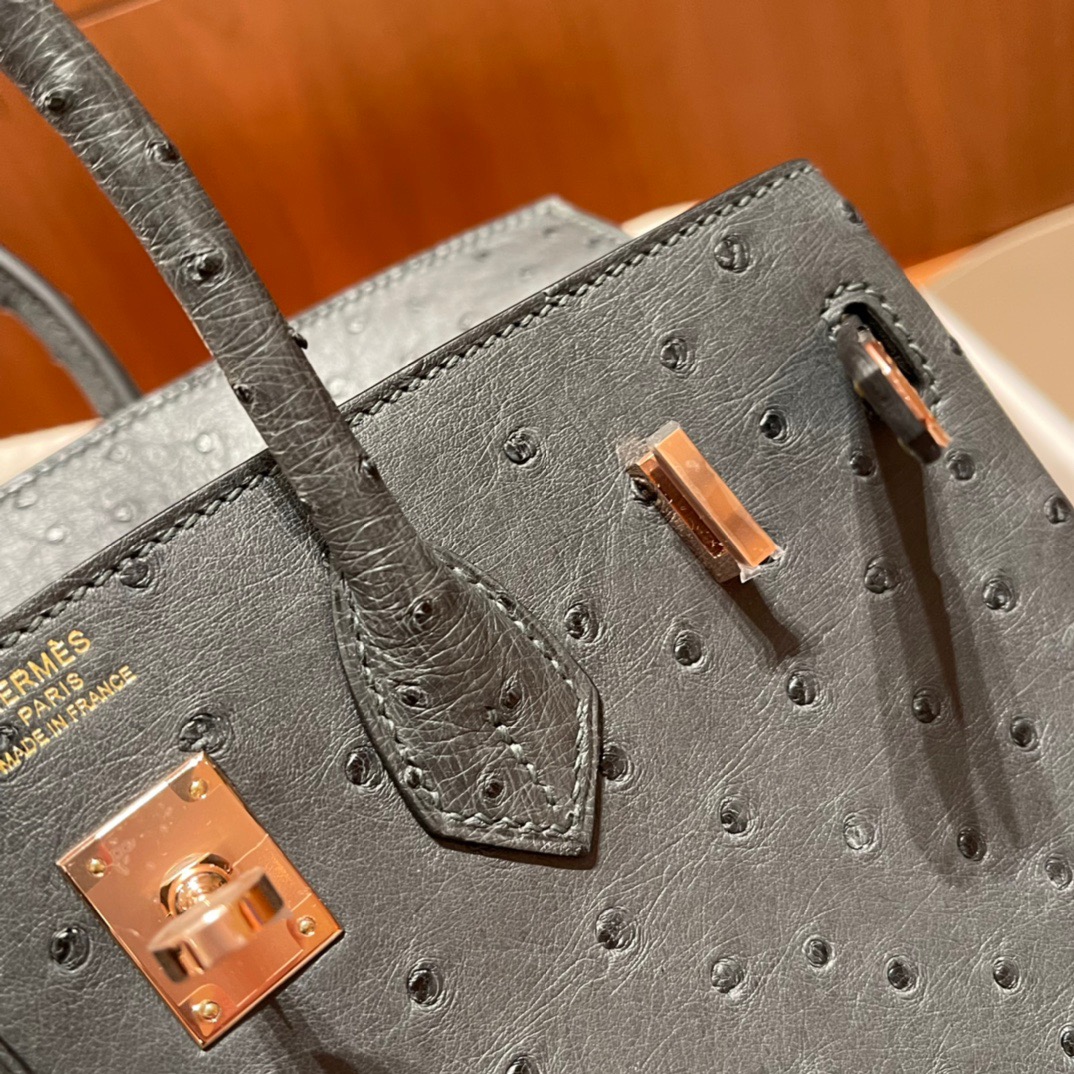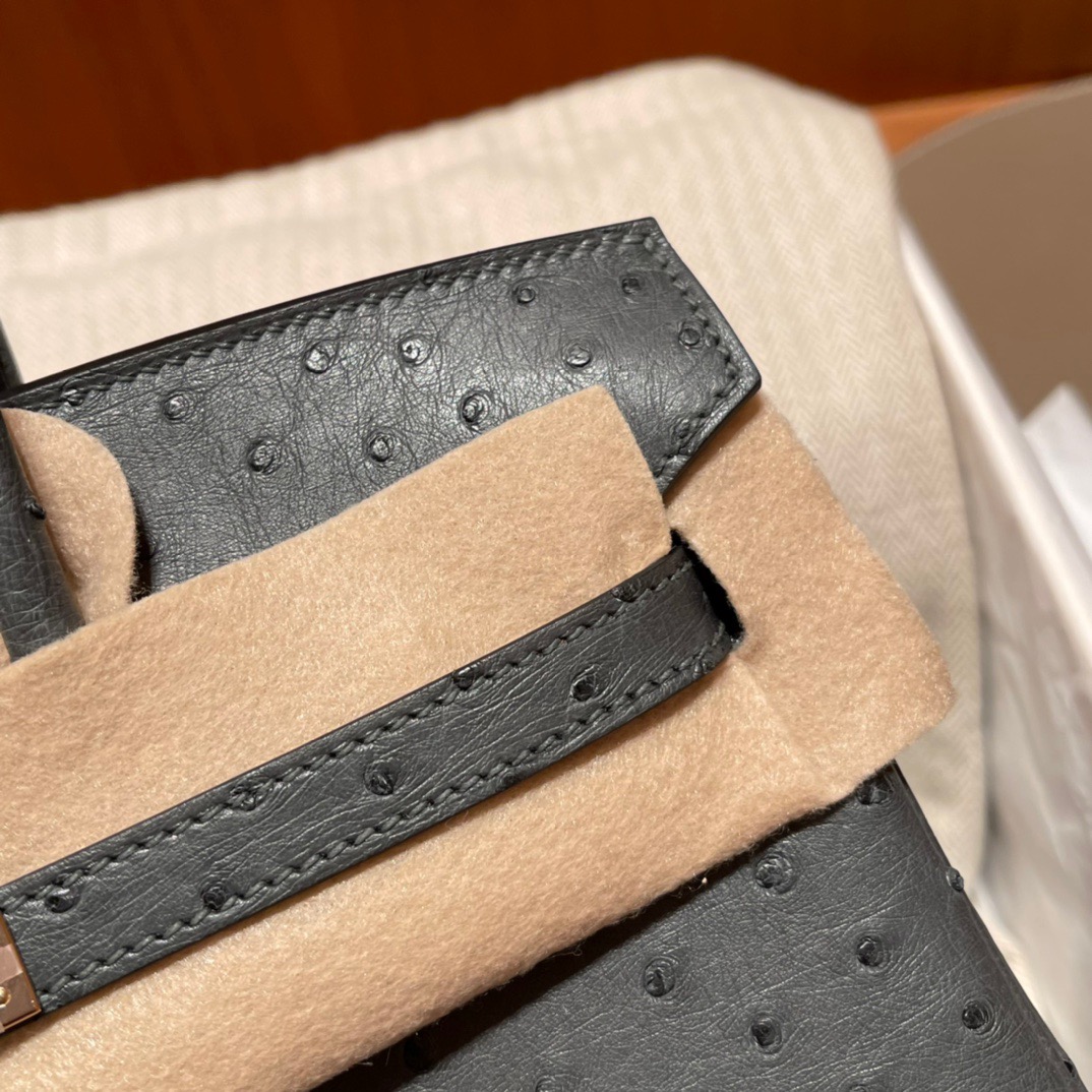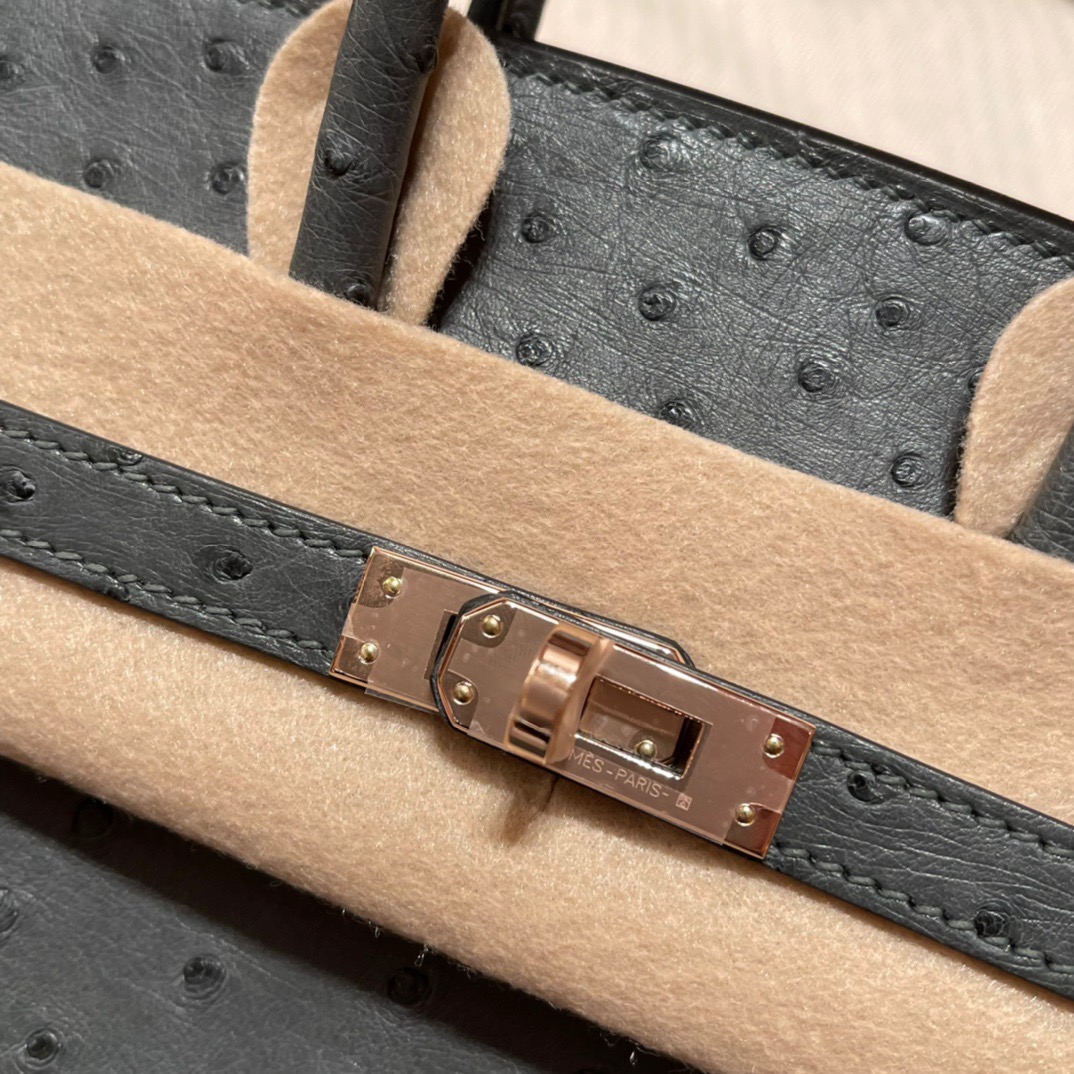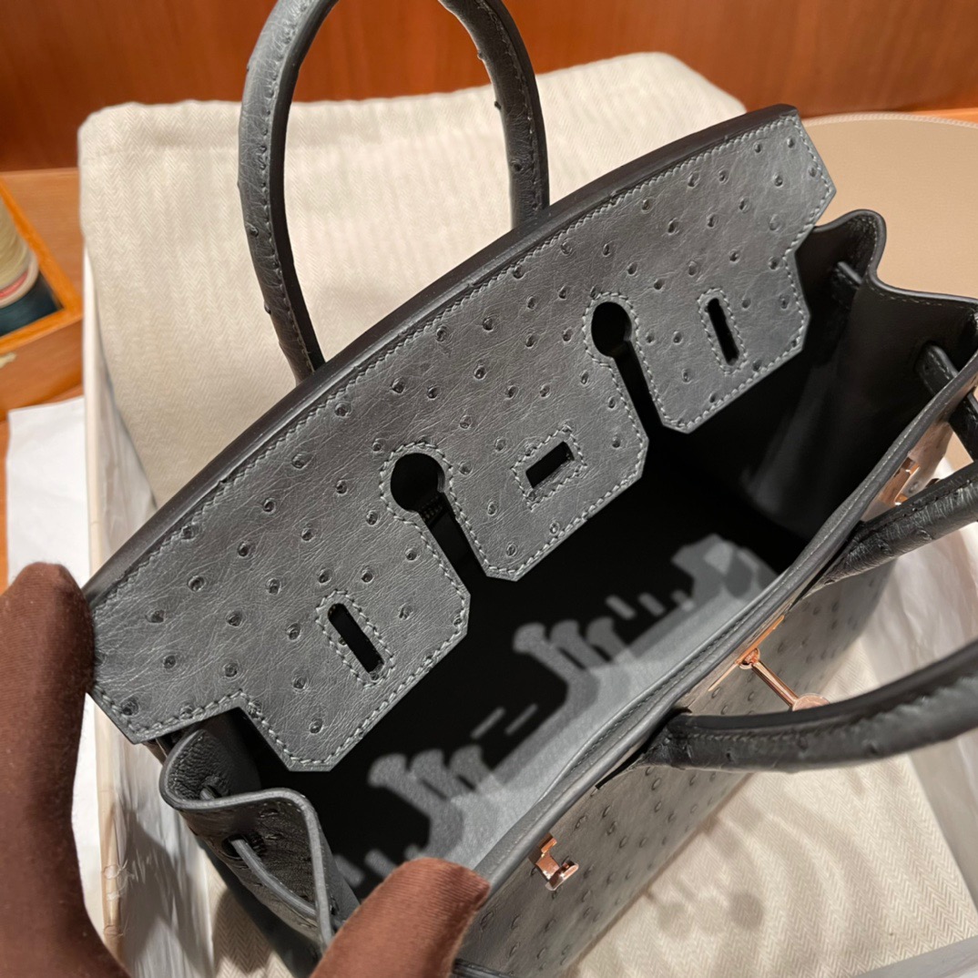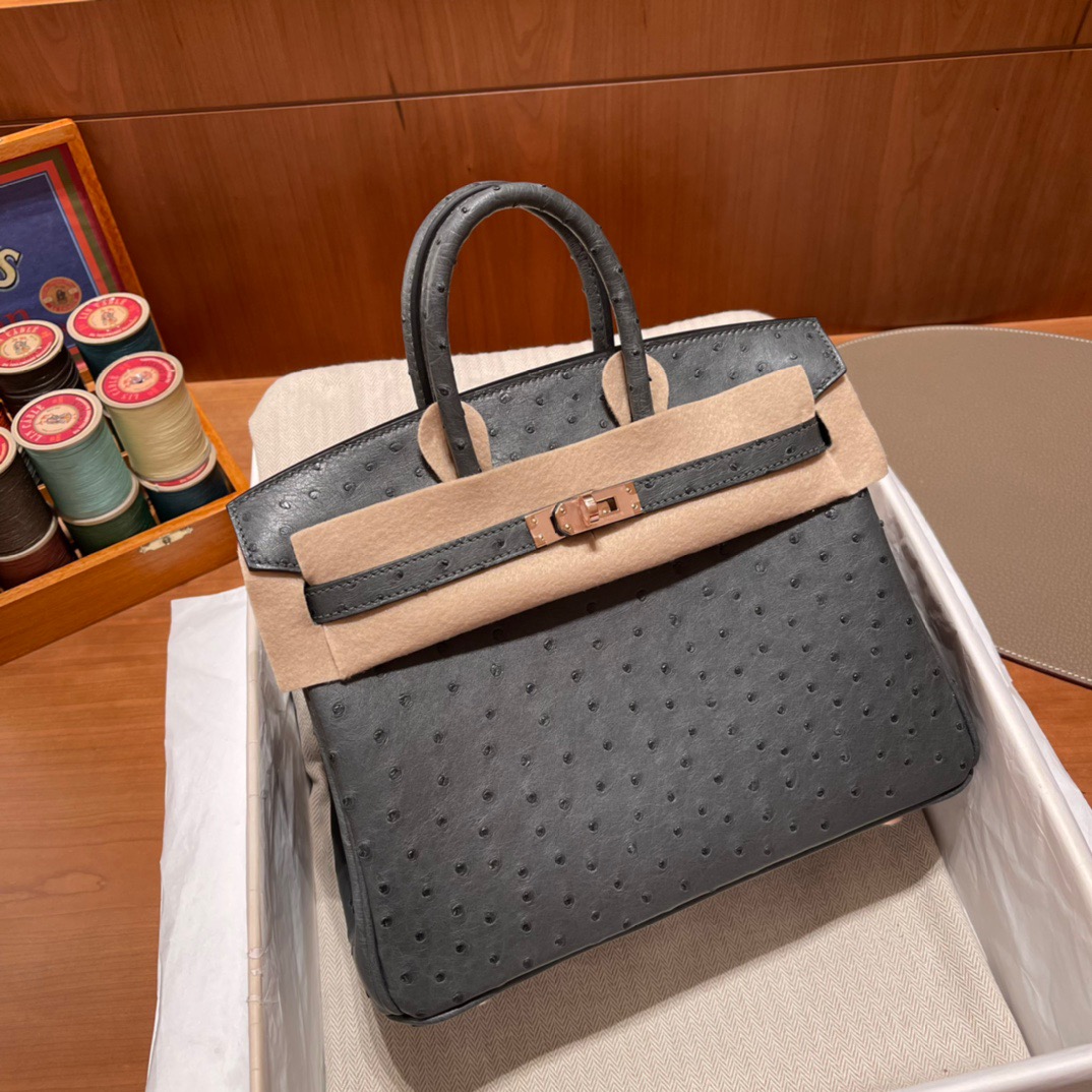 Birkin 25cm South Africa kk ostrich leather. 88 Graphite Rose. Gold Buckle