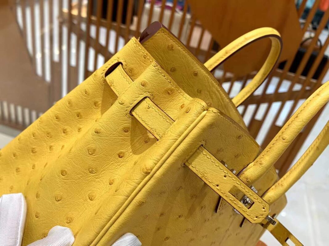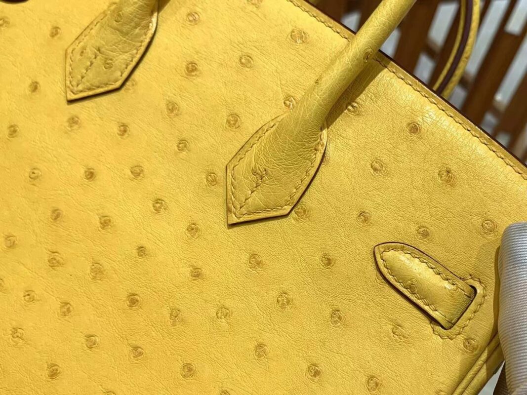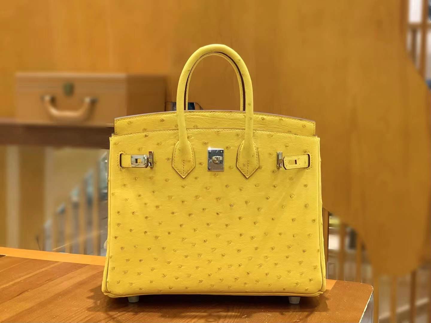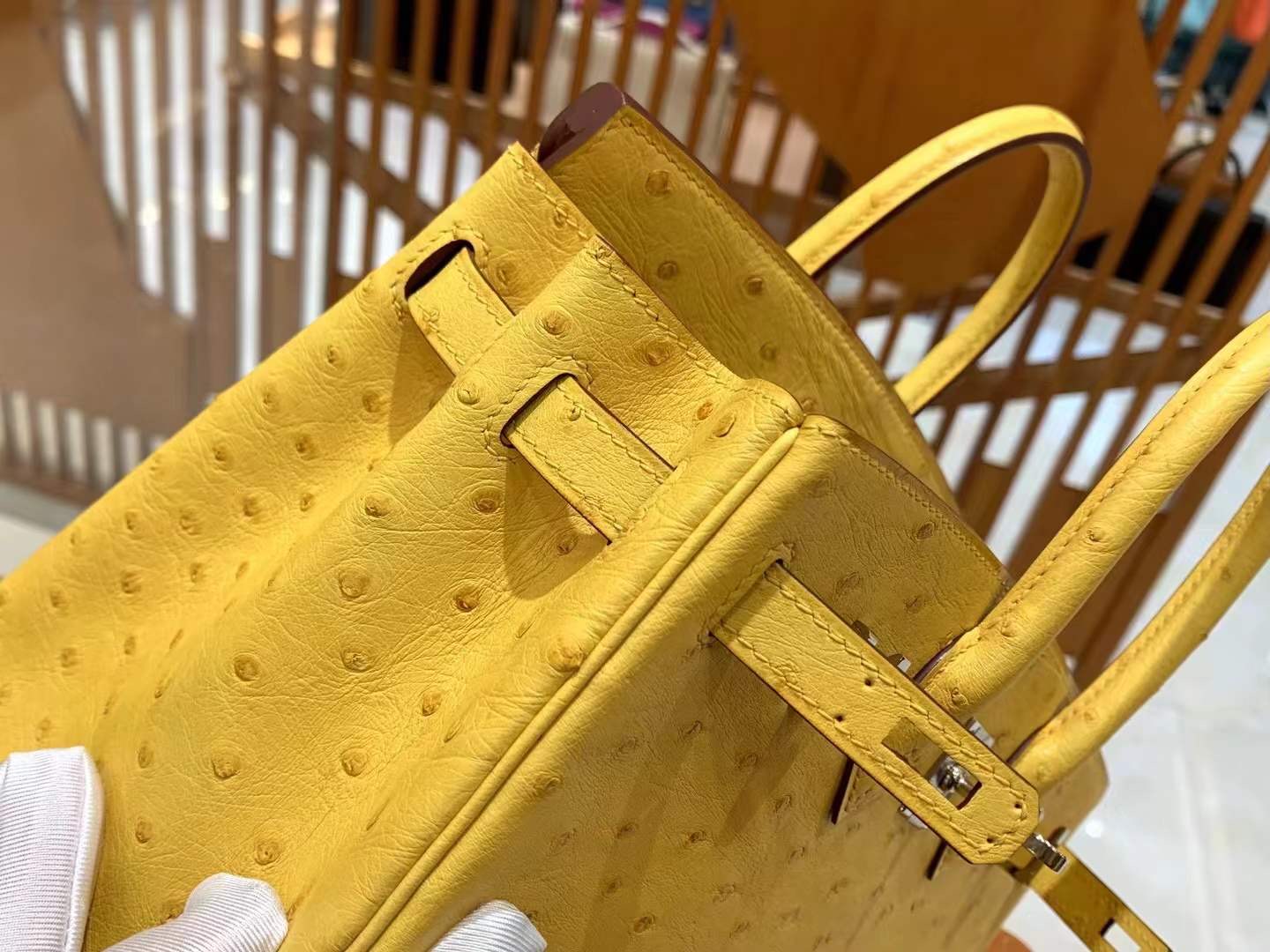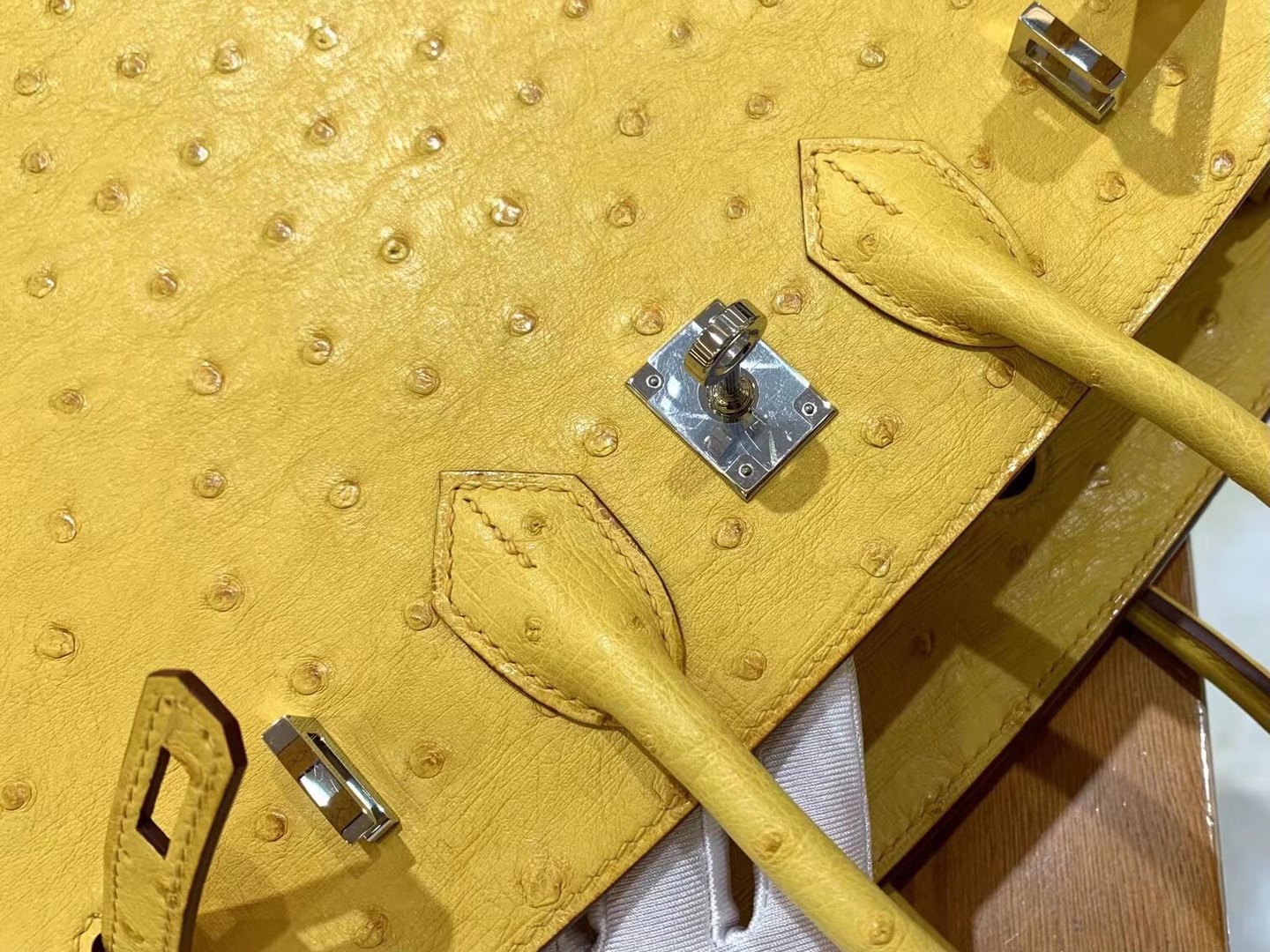 Birkin 25cm Neapolitan Yellow Silver Buckle Imported South African KK grade ostrich leather. Hand-sewn