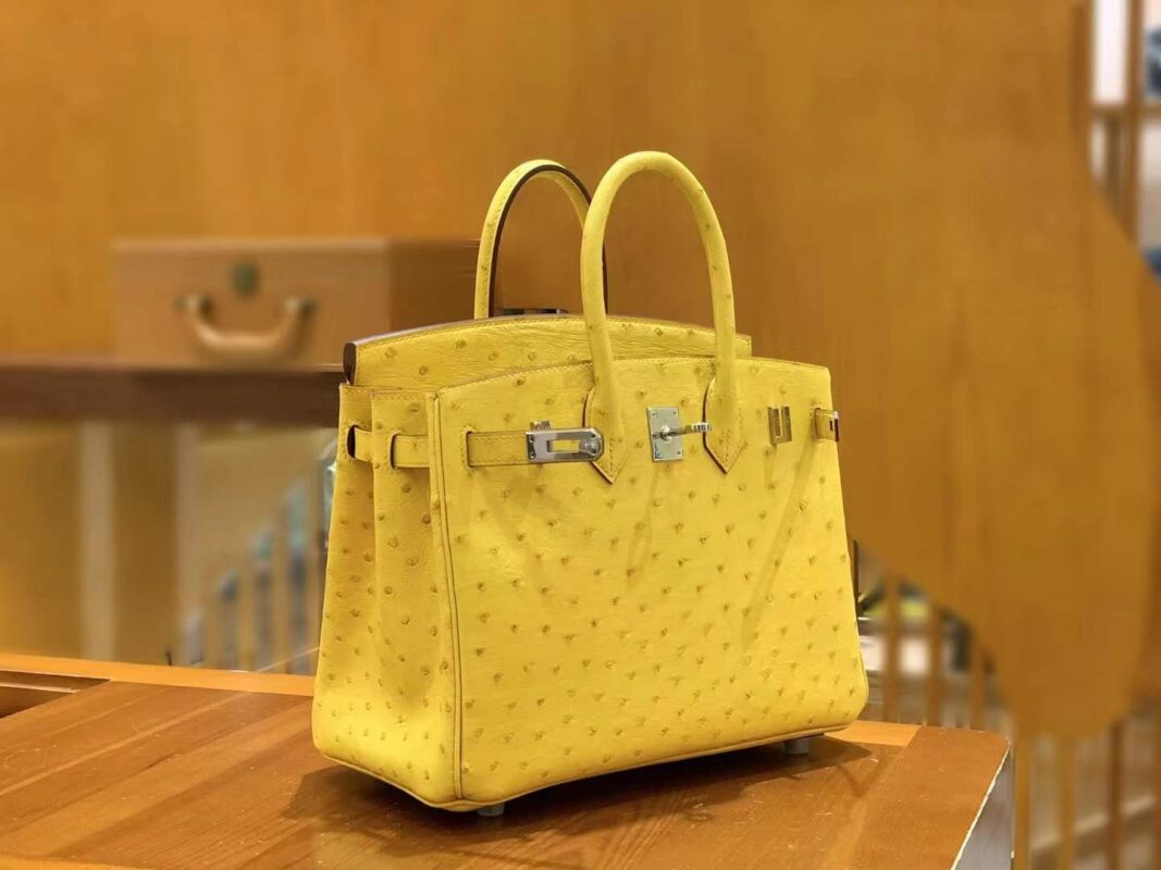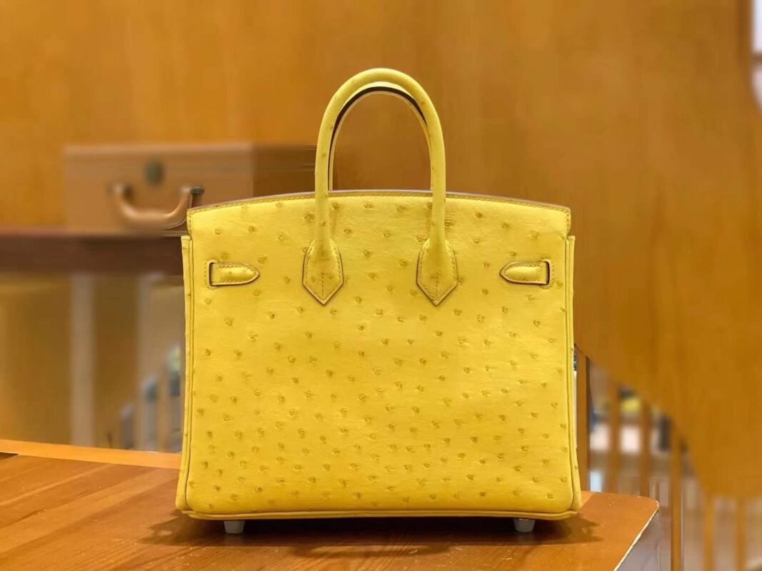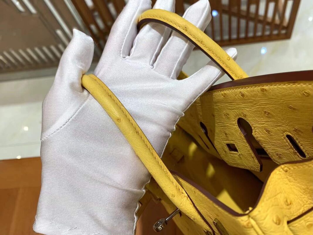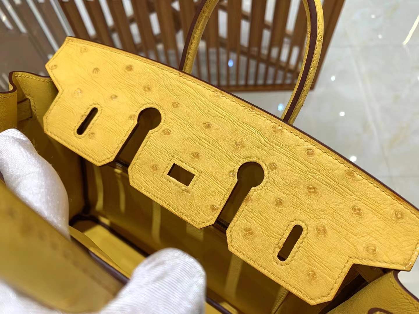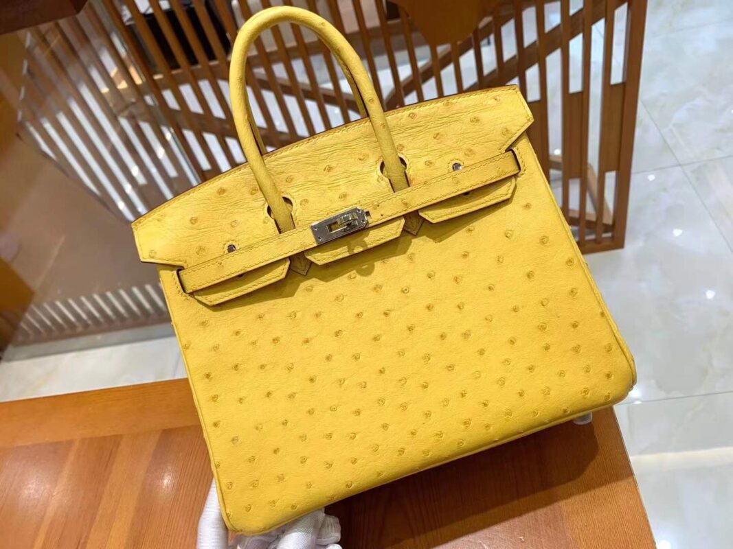 Birkin 25cm Neapolitan Yellow Silver Buckle Imported South African KK grade ostrich leather. Hand-sewn