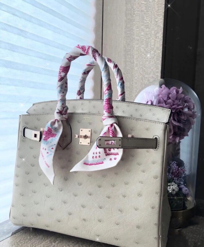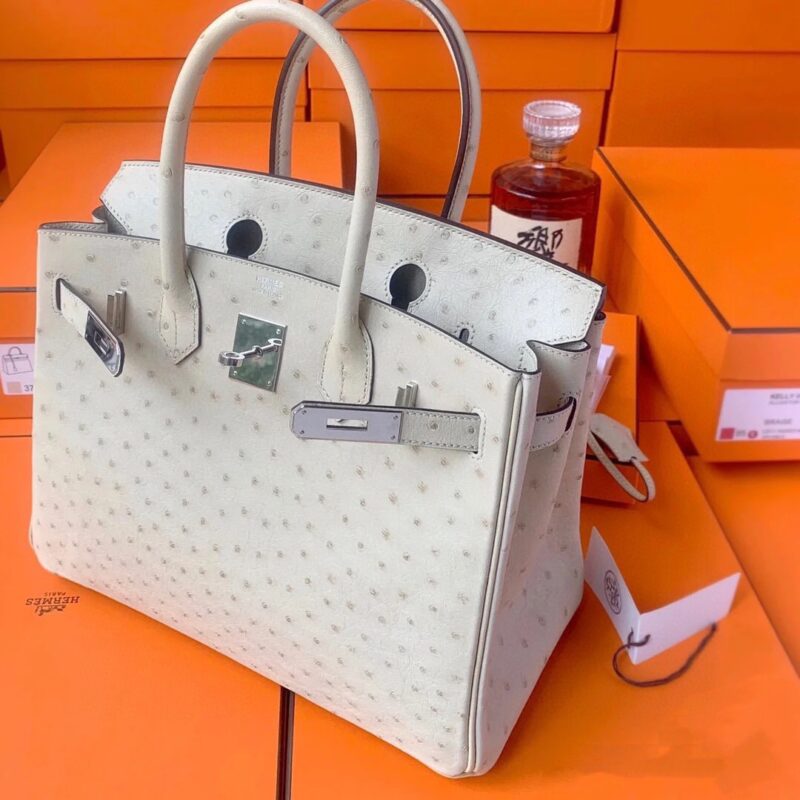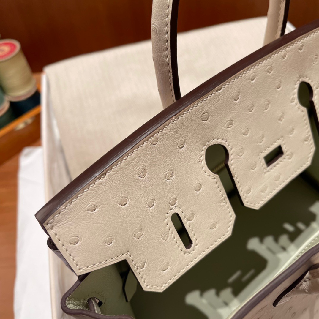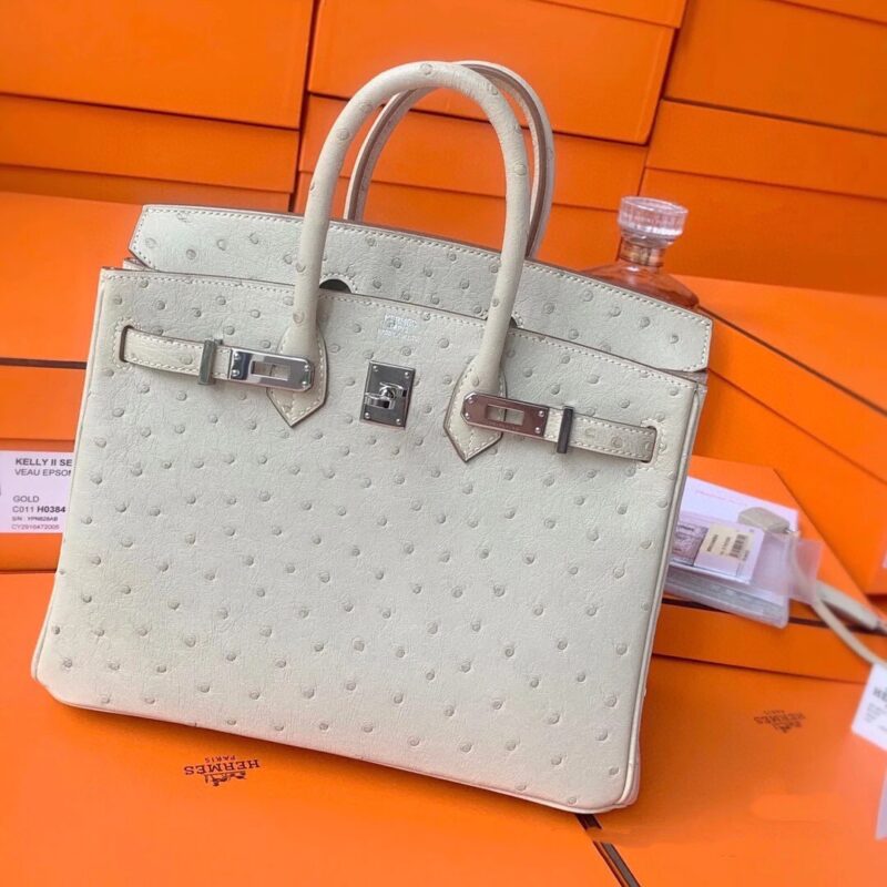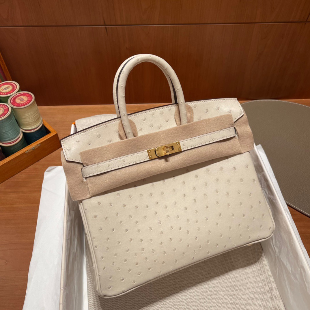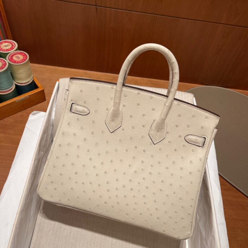 Birkin 25 Ostrich leather. Classic Wool White. Gold Buckle