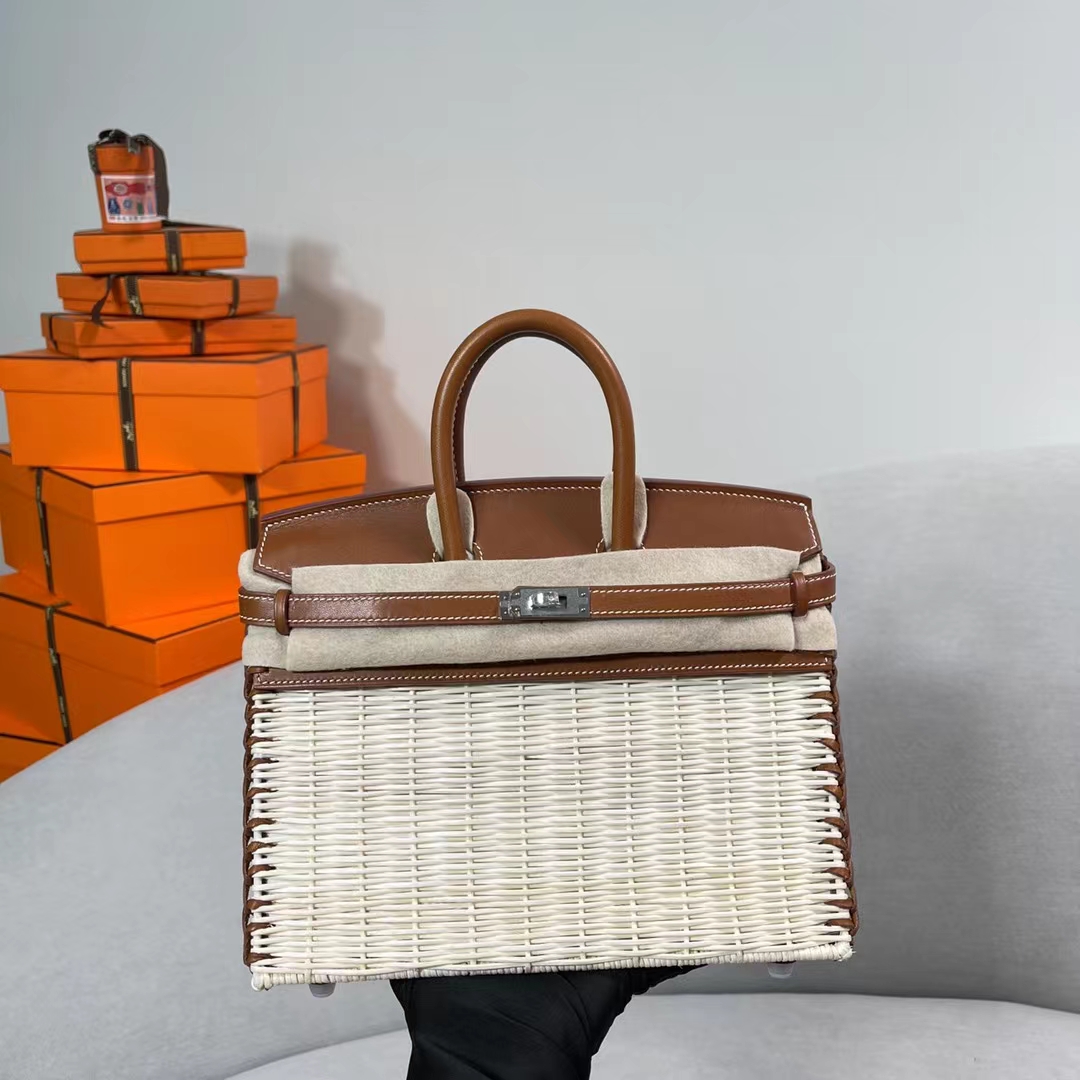 Birkin Picnic 25cm Saddle Leather and Rattan Weave The most complex craftsmanship, the real thing is really too beautiful and shocking, extremely limited and rare.