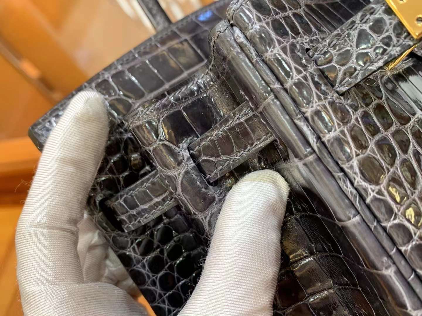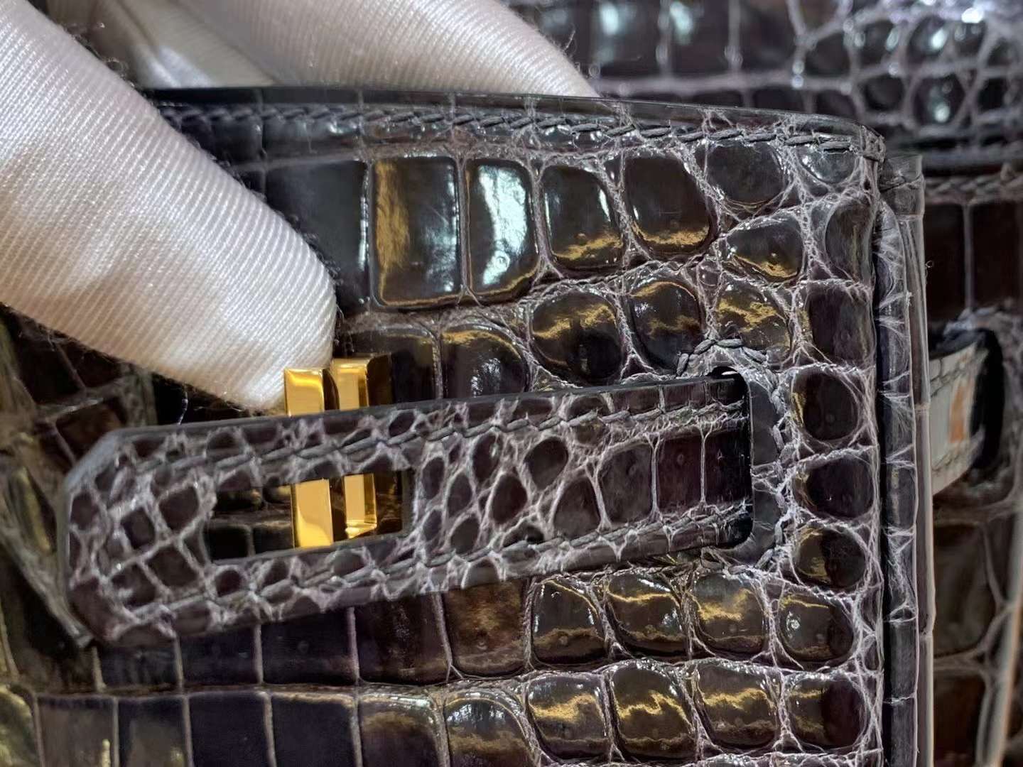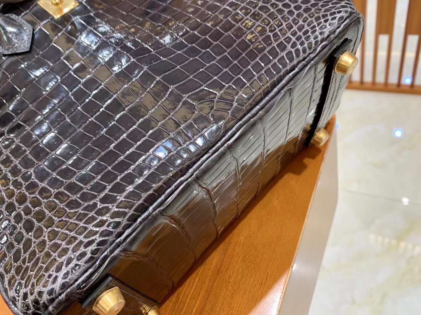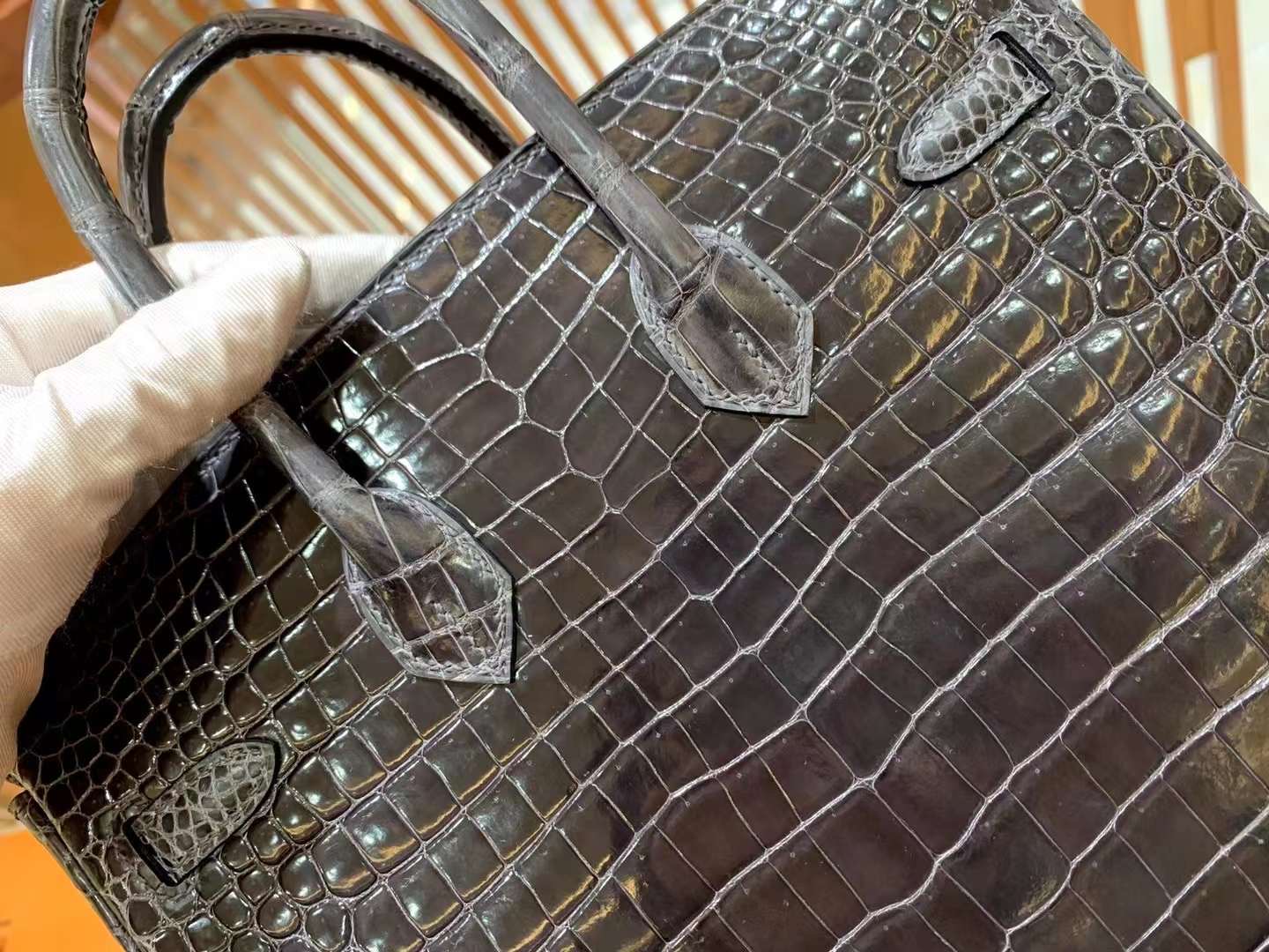 Birkin 25 Shiny Alligator Leather in Graphite Grey