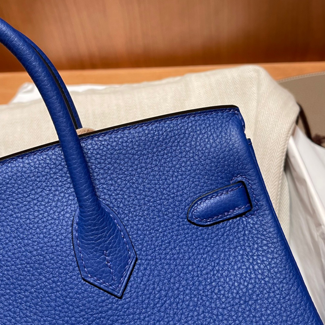 Birkin 25cm TogoTogo calfskin. High-end and elegant.7T Blue Electric