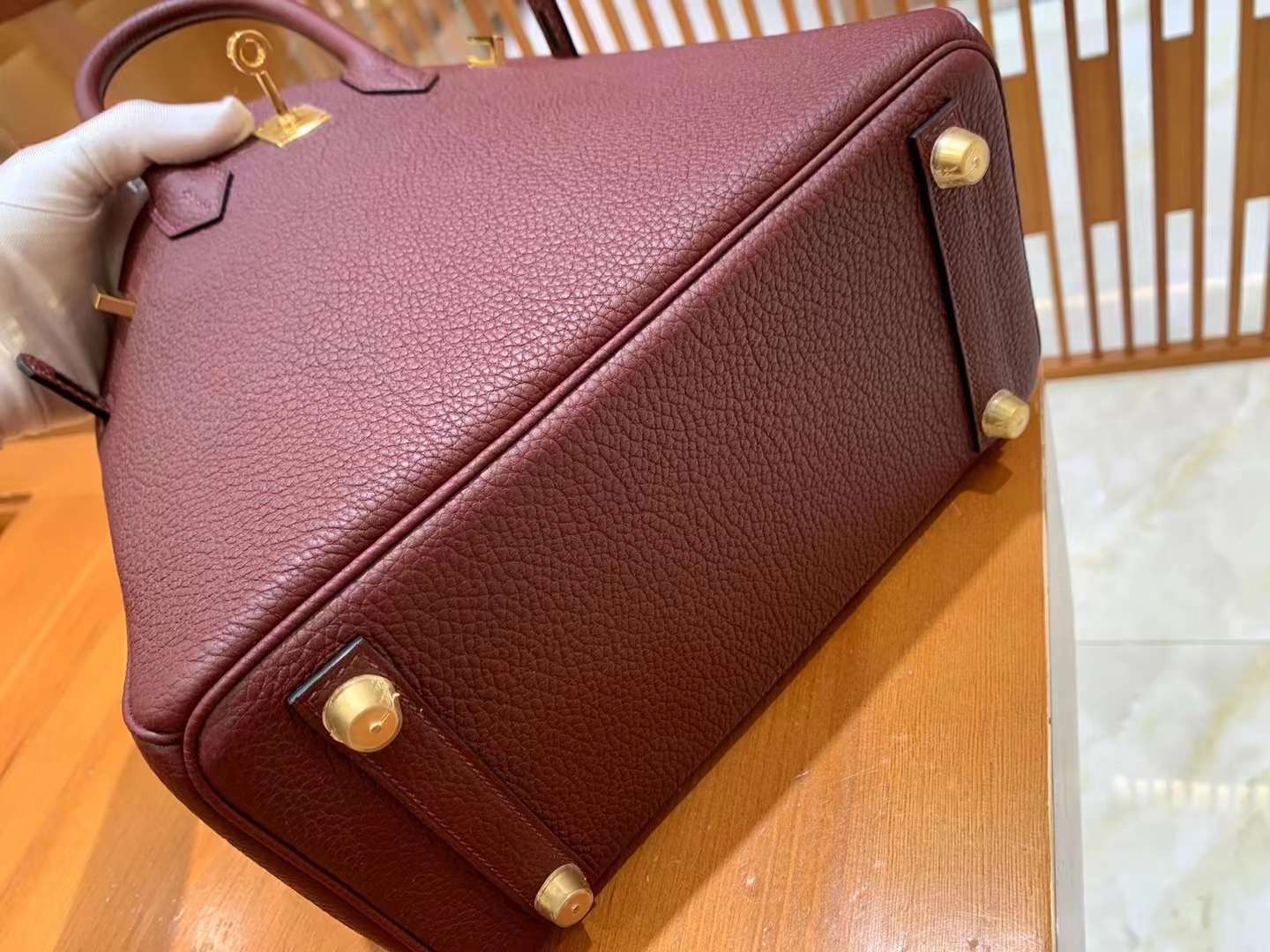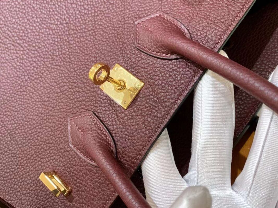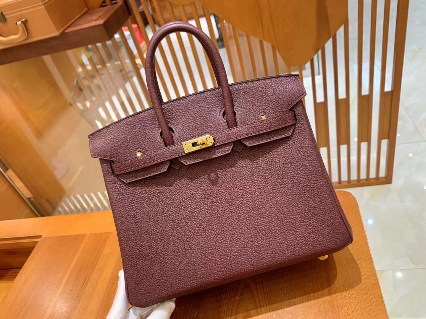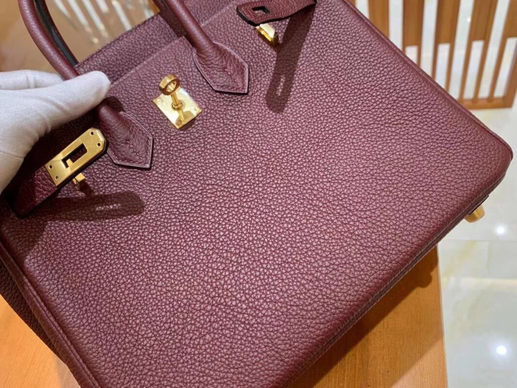 Birkin 25cm Togo lether. Burgundy. Gold Buckle.