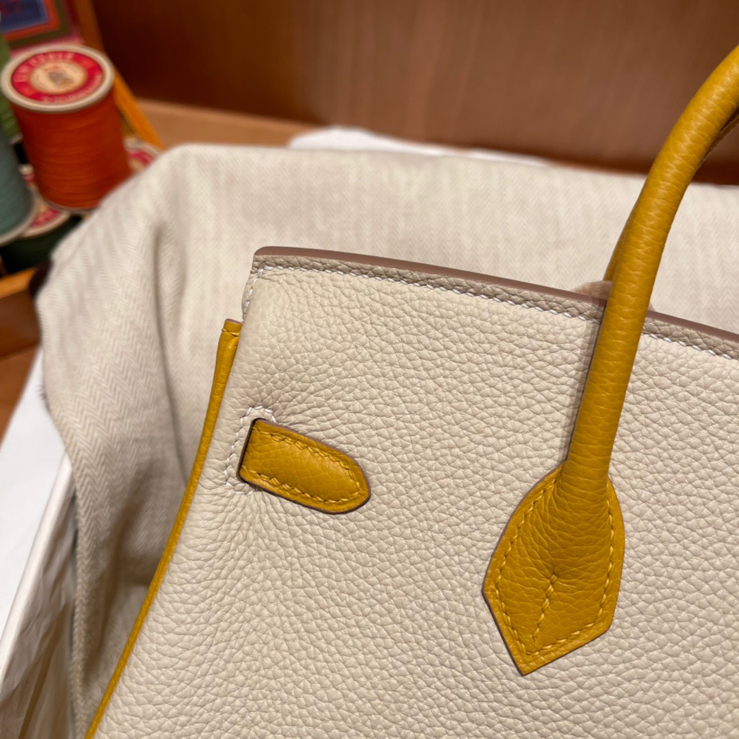 Birkin 25cm TogoTogo calfskin. High class elegance.10 Craie/9D Amber Yellow