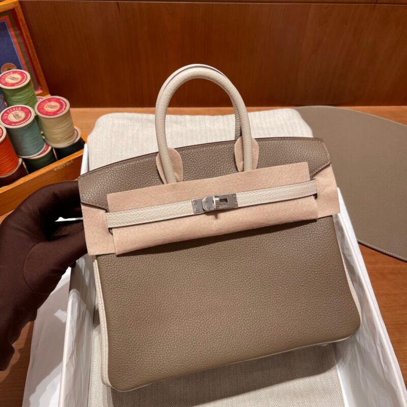 Birkin 25cm TogoTogo calfskin. 25 size is simply very fragrant. High class elegance. 18 Elephant Grey/10 Craie