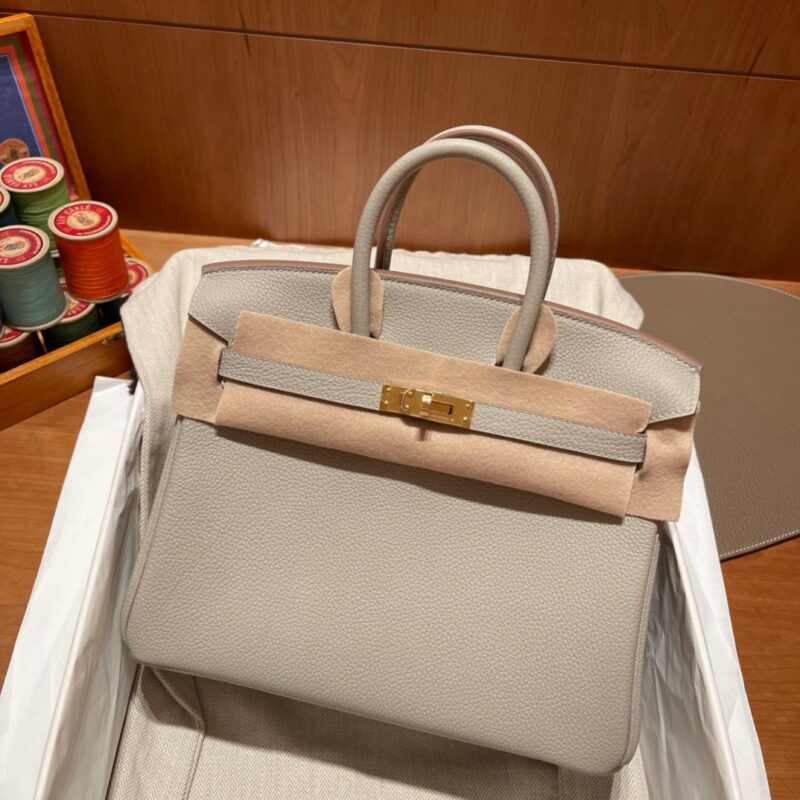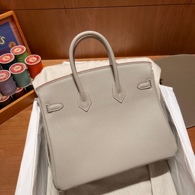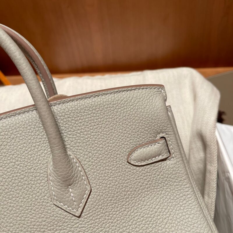 Birkin 25cm Togo calfskin. High-end elegance. 80 Gris Perle