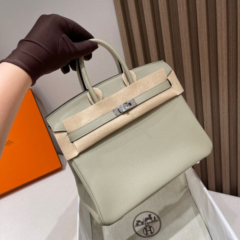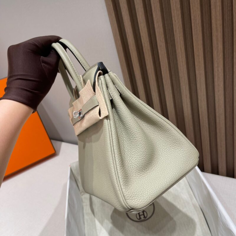 Birkin 25cm Togo Togo calfskin 25 size is so fragrant, high-end and elegant Q1 Sage Green Silver Buckle