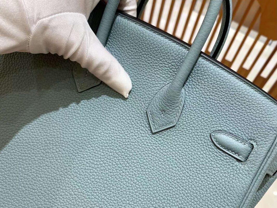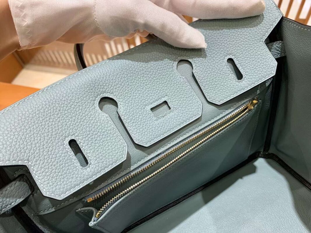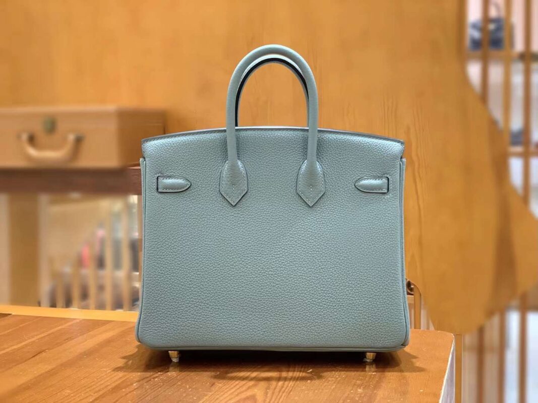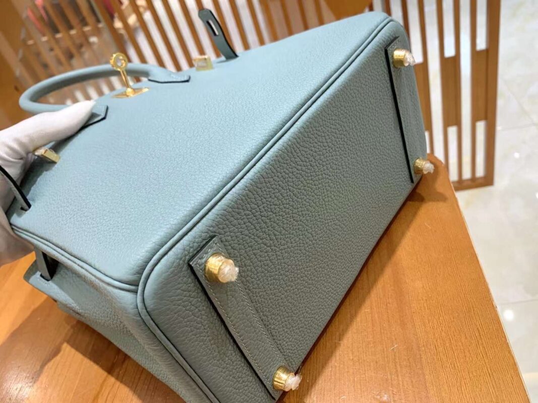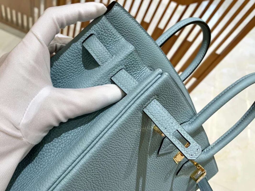 BK25cm Sky Blue. Gold buckle. Imported togo cowhide. French original beeswax thread. Fully hand-sewn