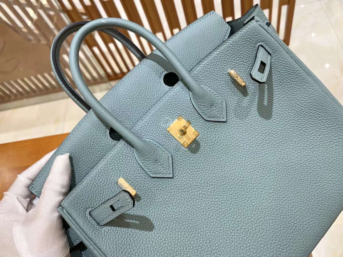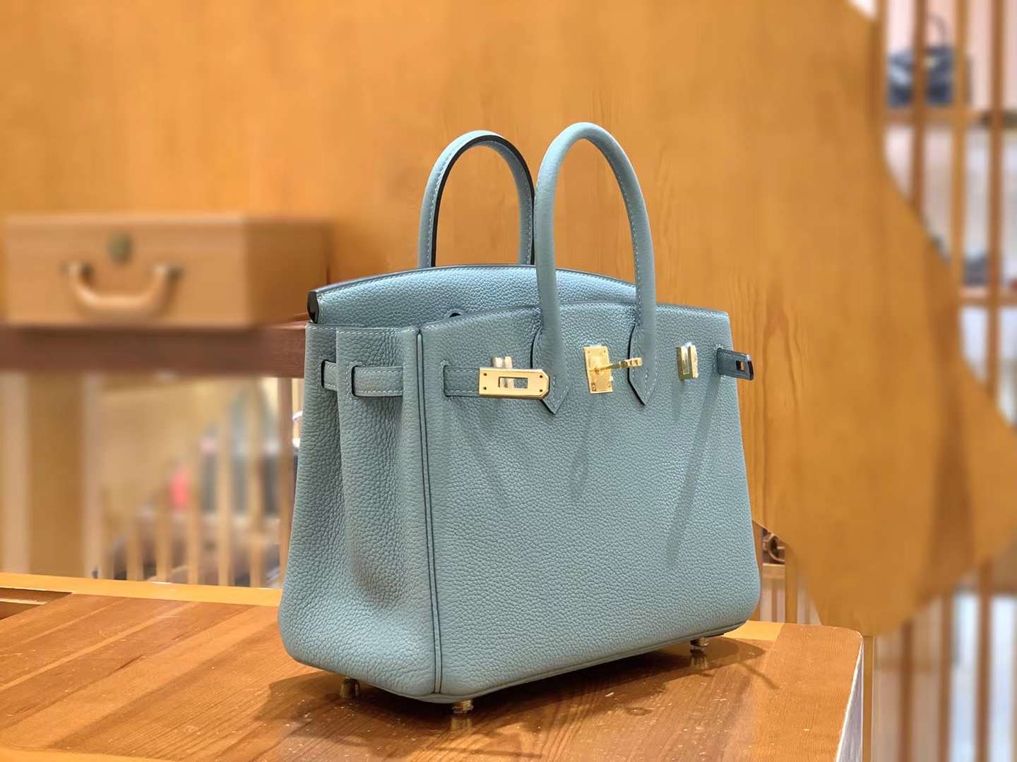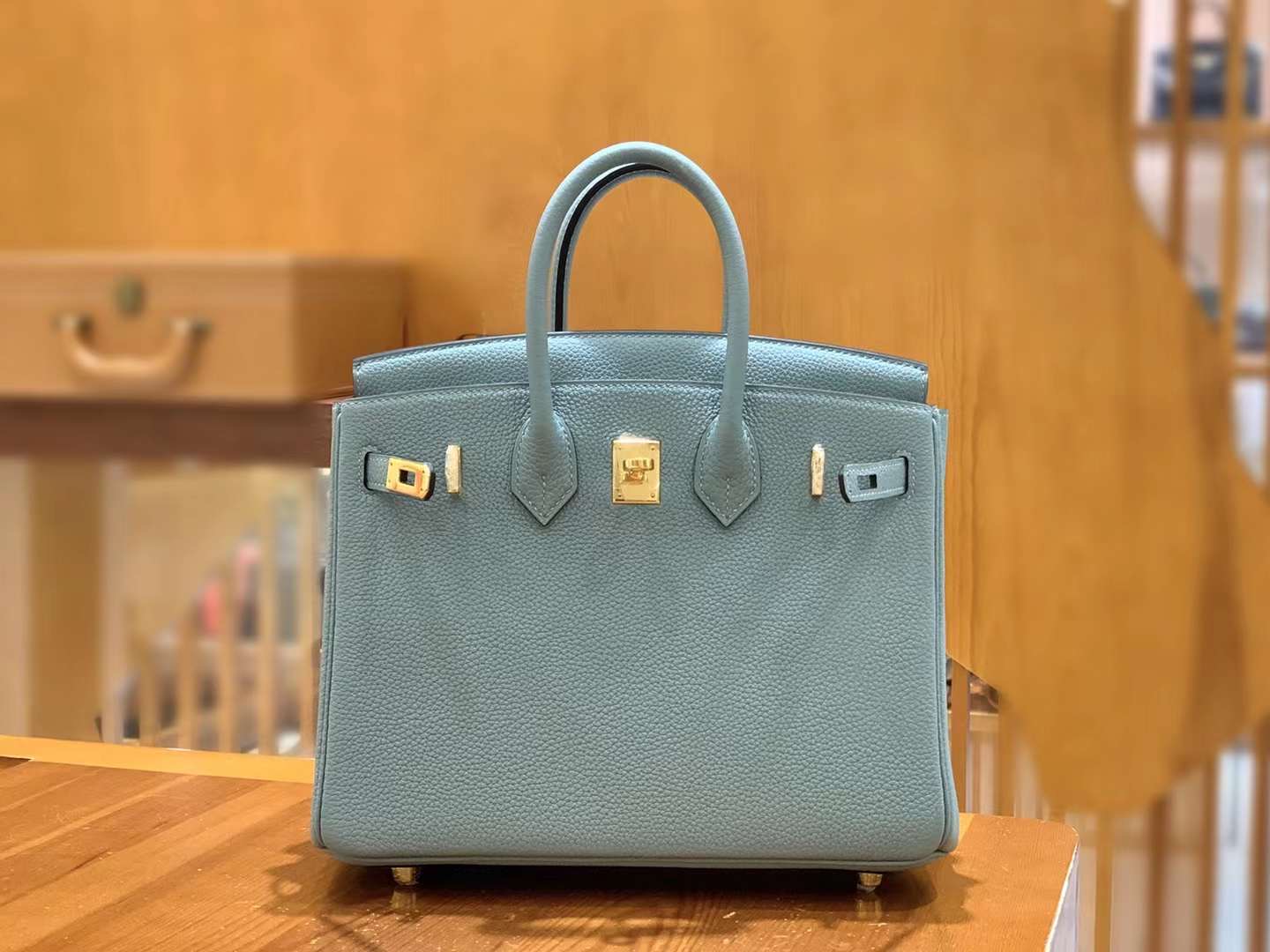 BK25cm Sky Blue. Gold buckle. Imported togo cowhide. French original beeswax thread. Fully hand-sewn