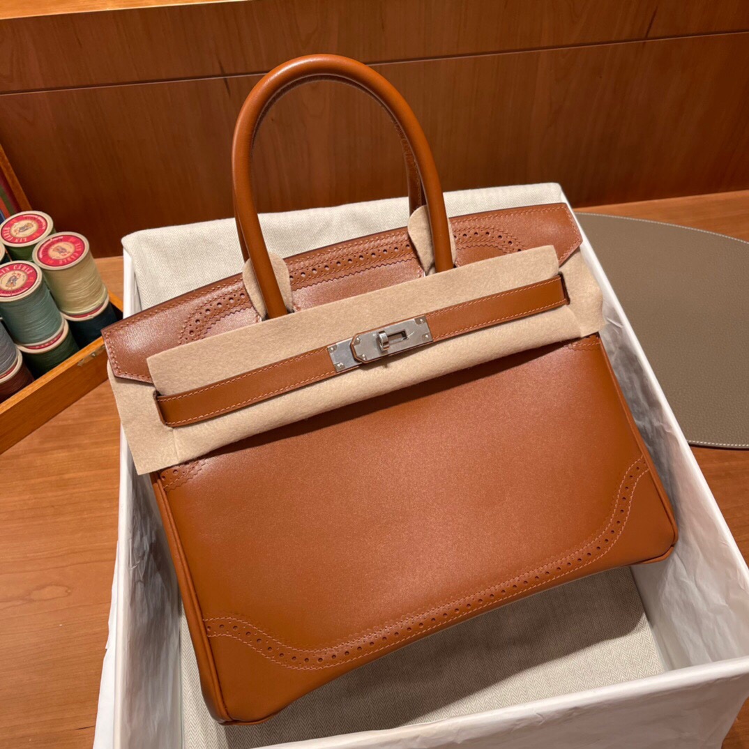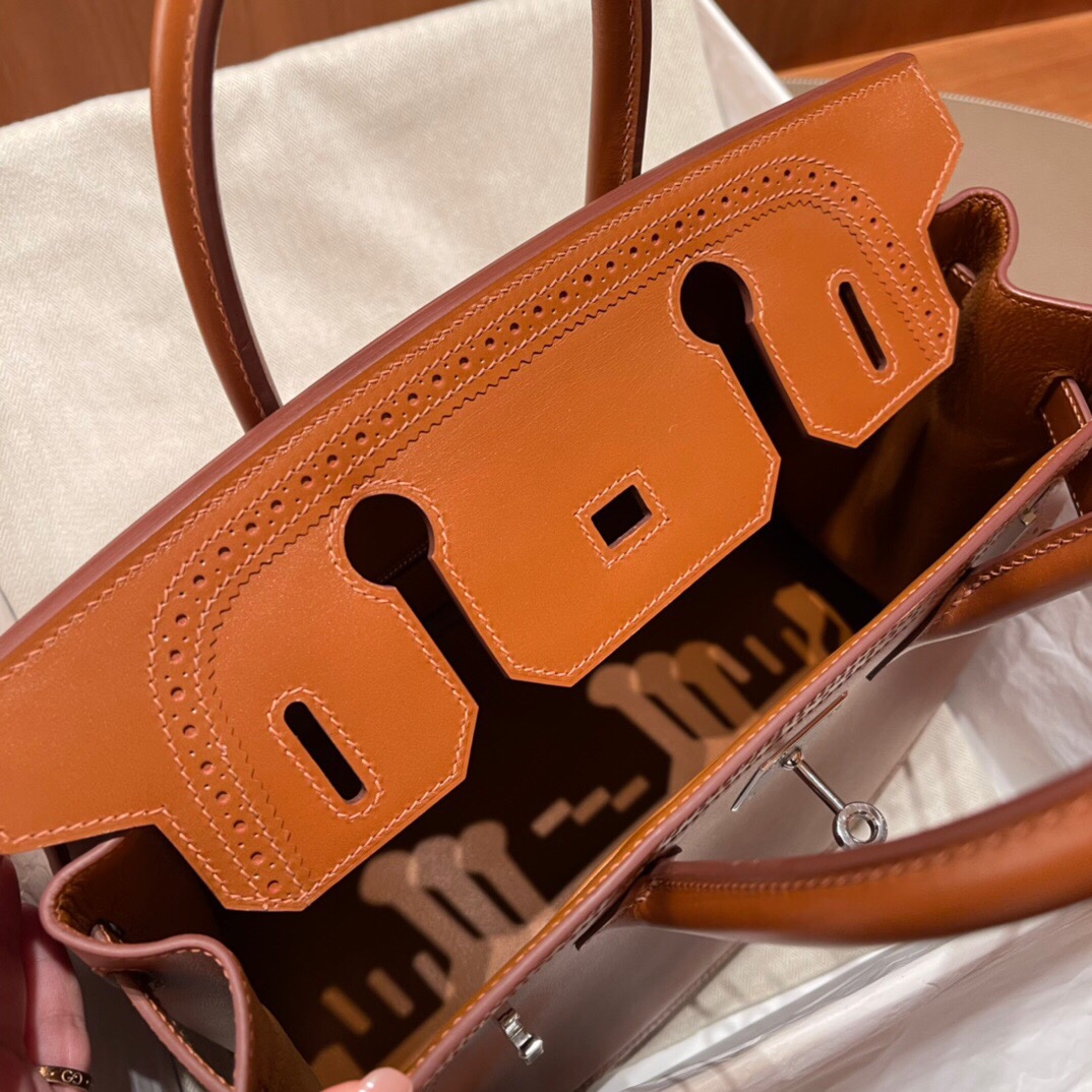 Birkin 30cm lace box leather is full of retro style, exclusive golden brown.