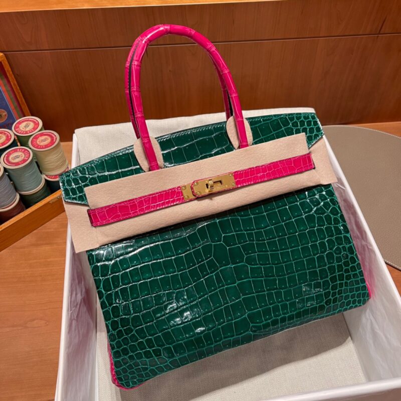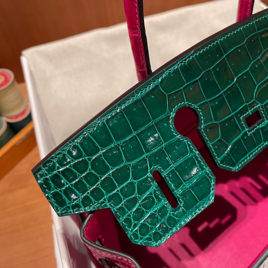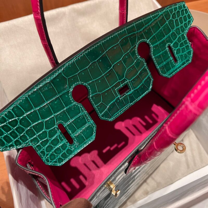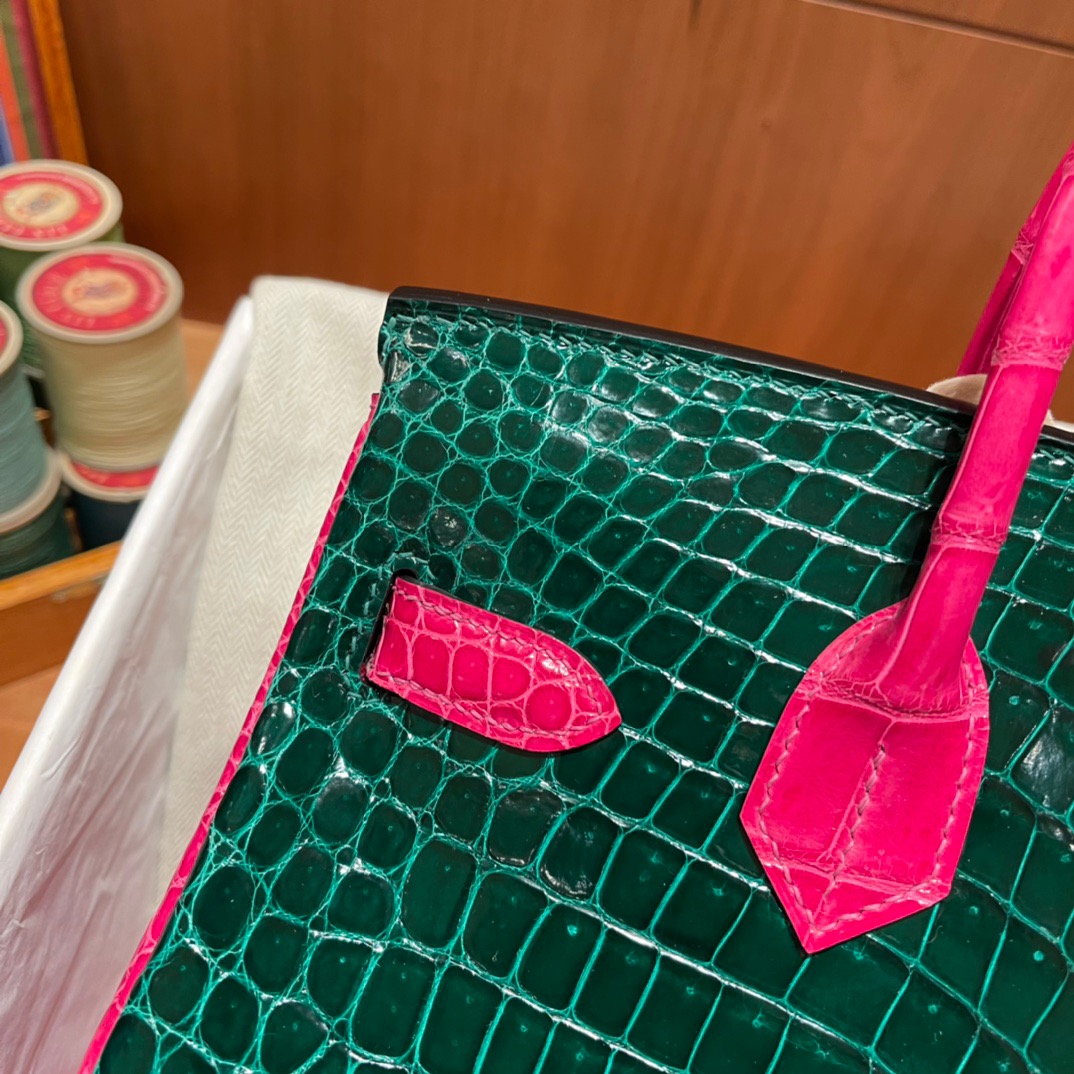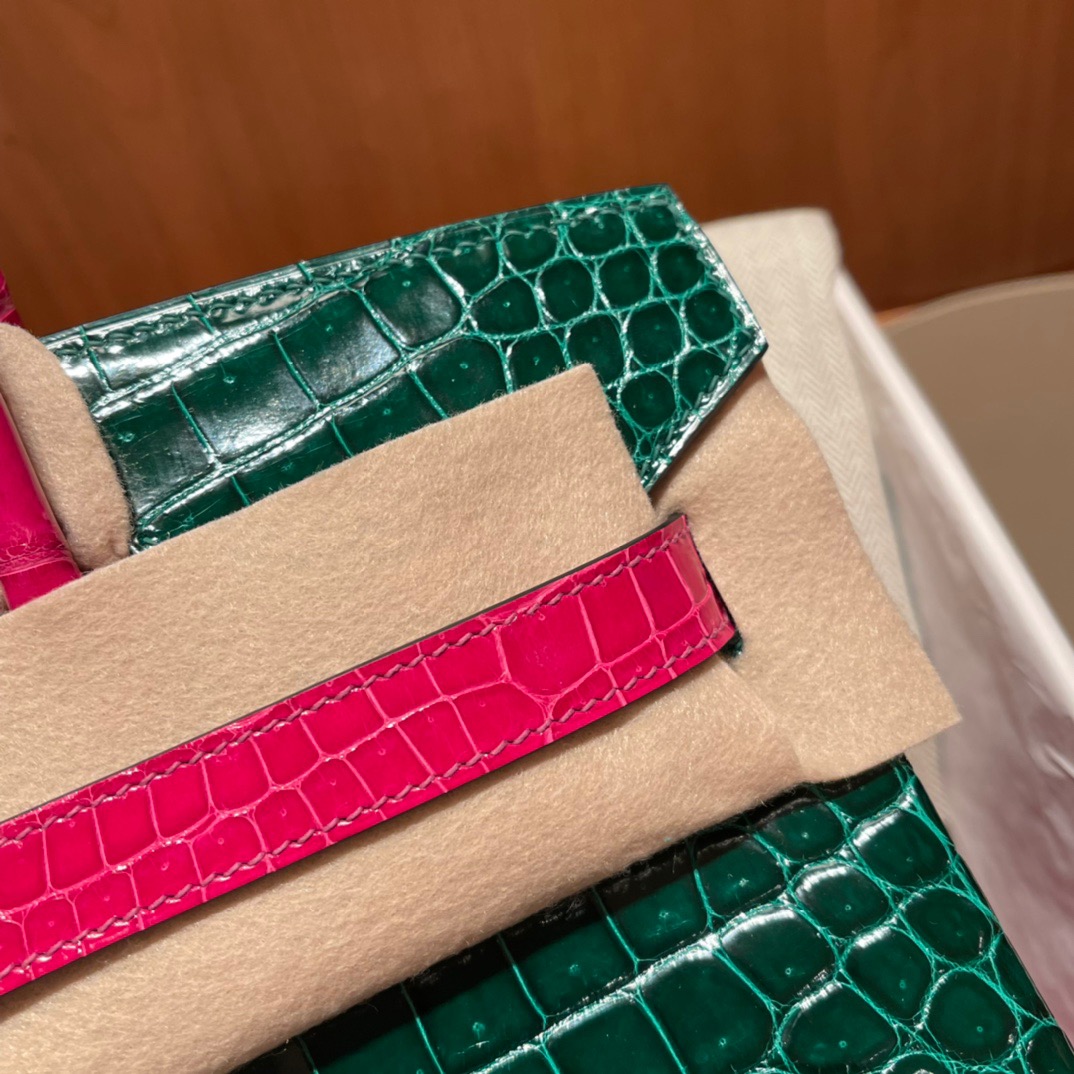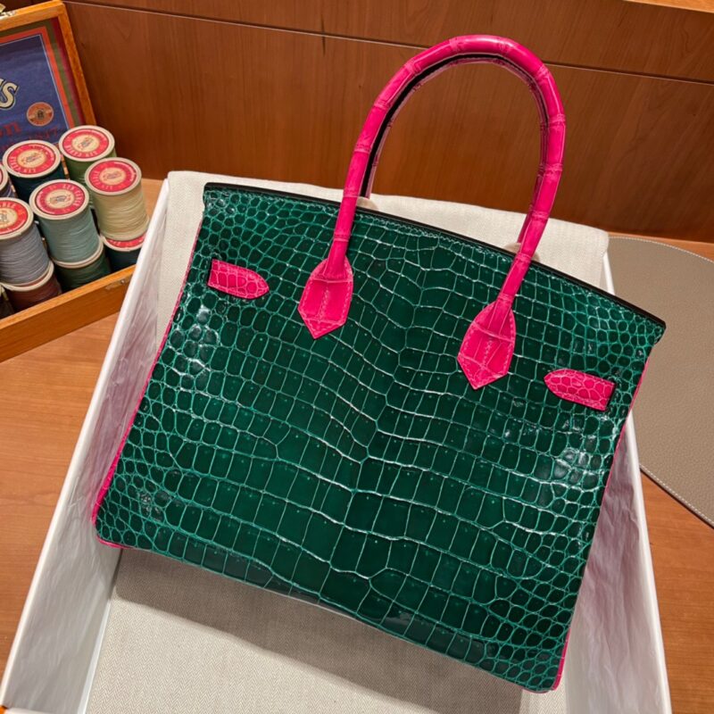 Birkin 30 Alligator Porocus Shiny Emerald&Pink