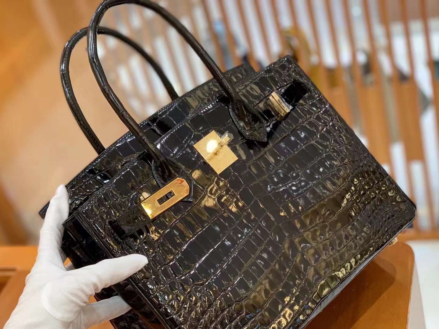 Birkin 30cm Black Gold Imported first-class Nile crocodile. French beeswax thread. 100% hand-sewn
