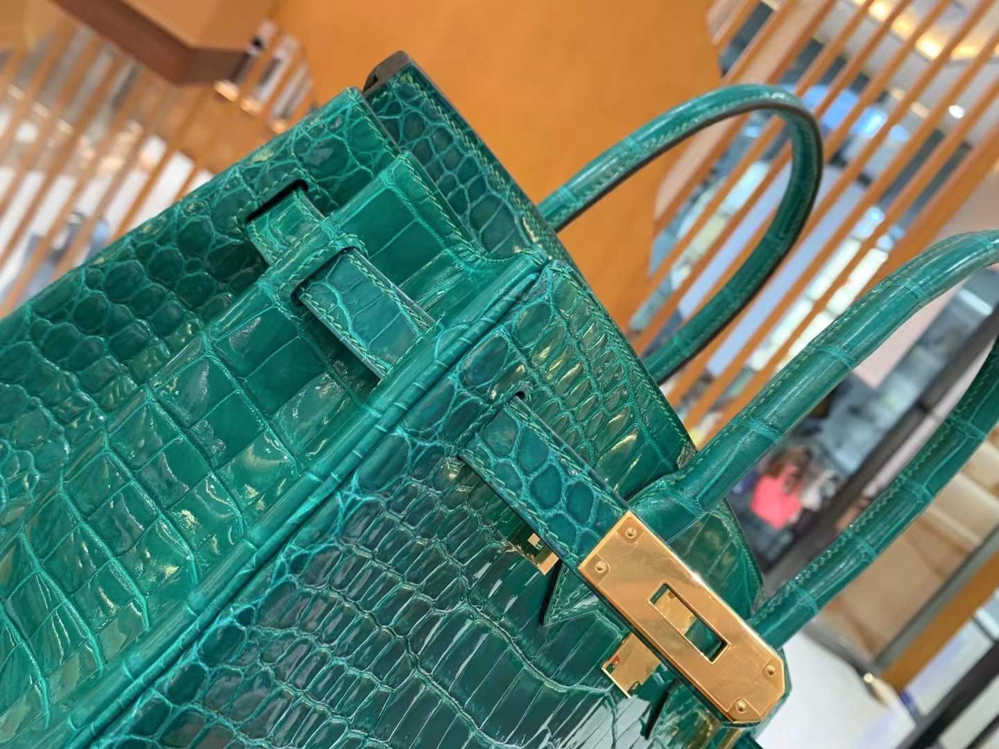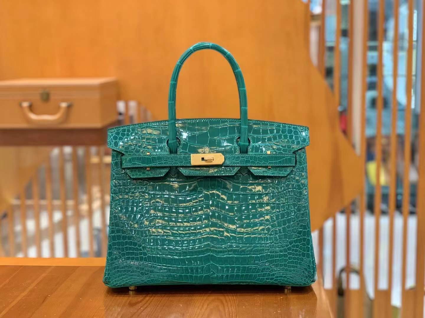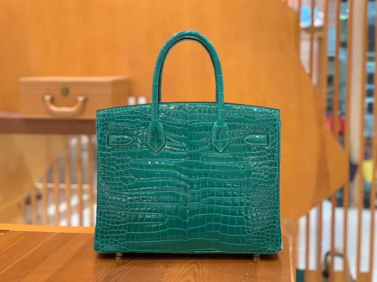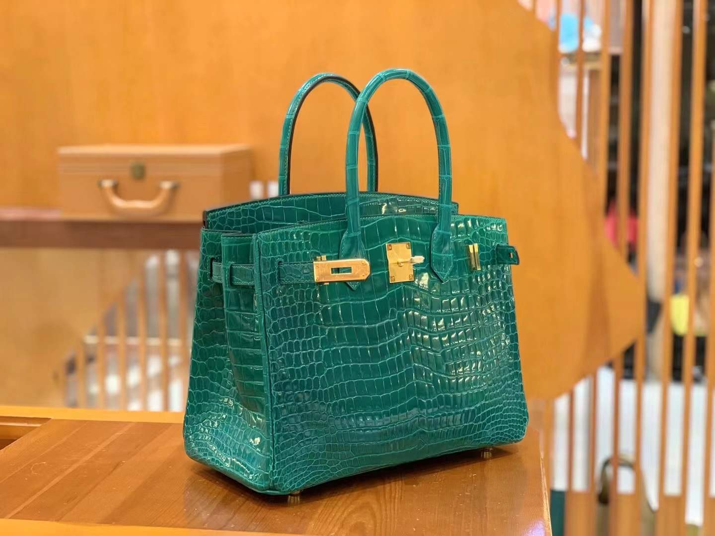 Birkin 30cm Emerald Green Gold Buckle Imported wild crocodile. All hand-sewn