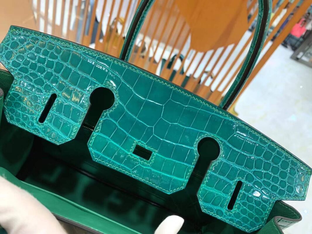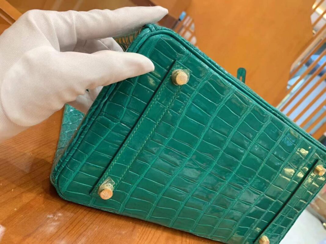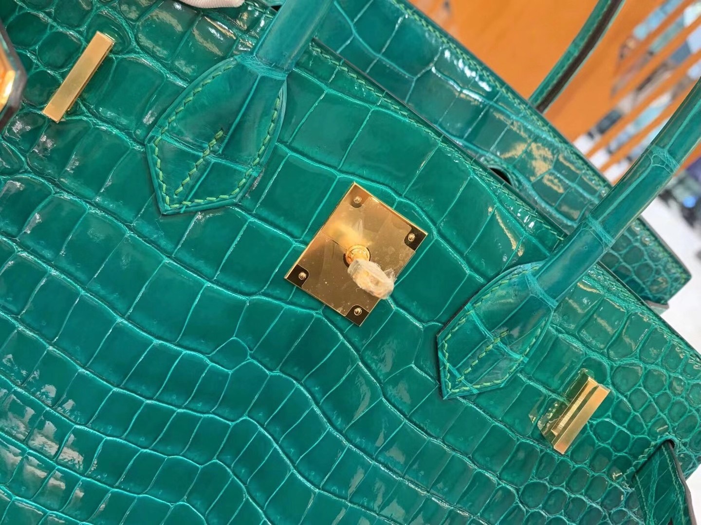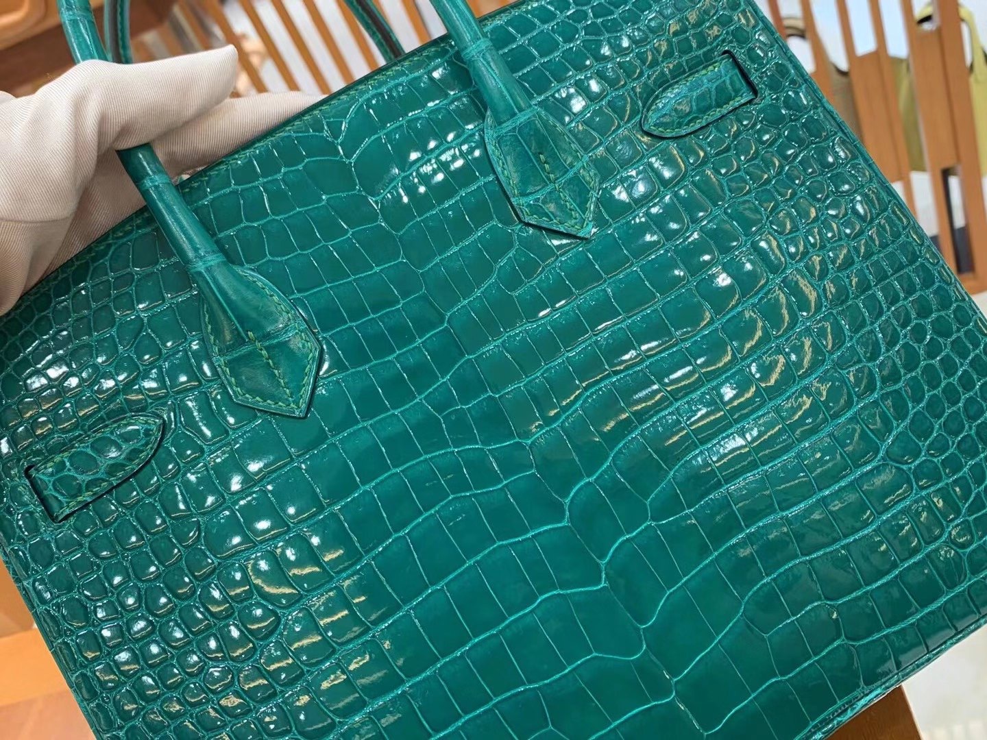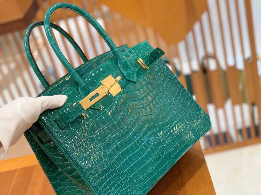 Birkin 30cm Emerald Green Gold Buckle Imported wild crocodile. All hand-sewn