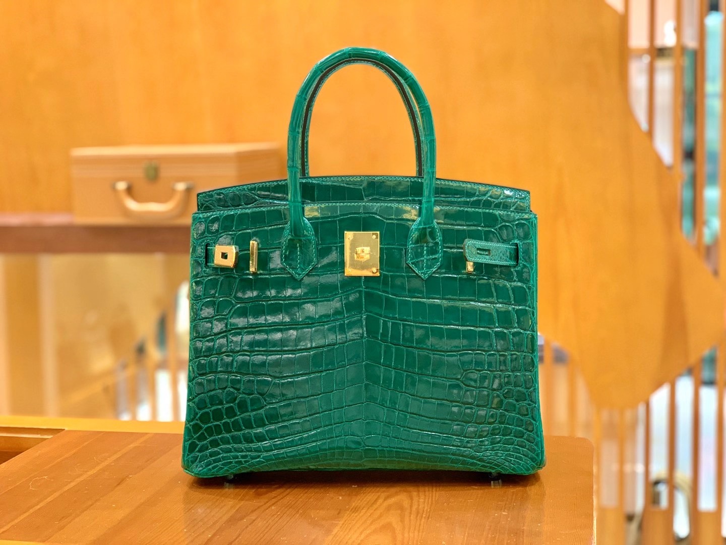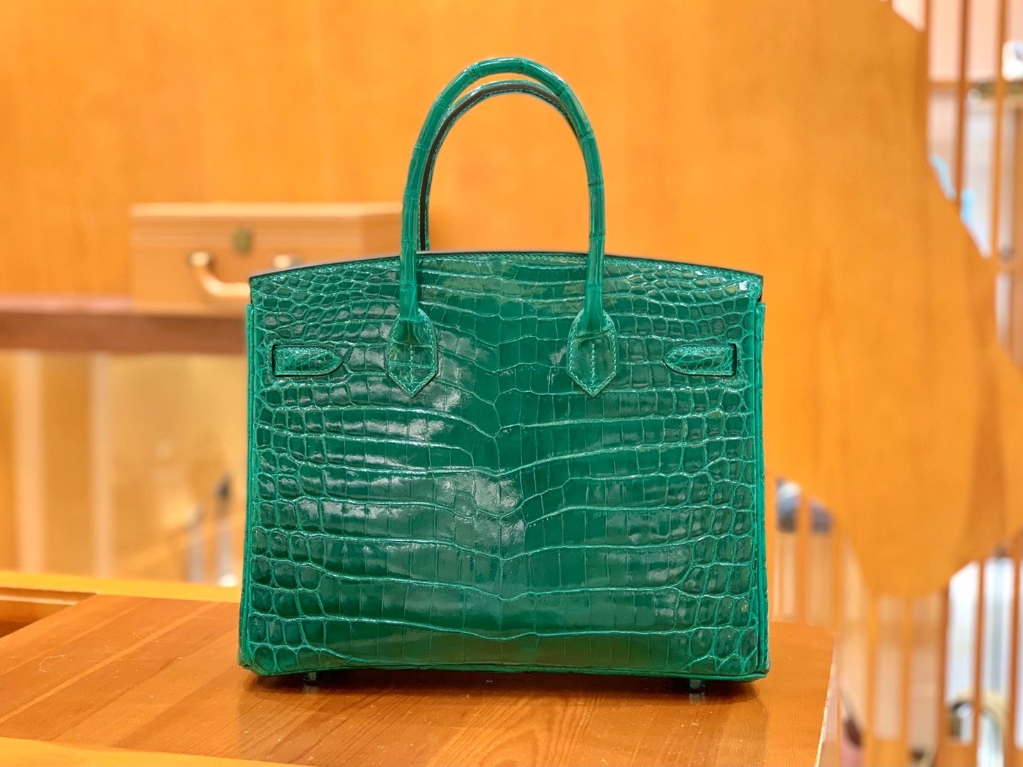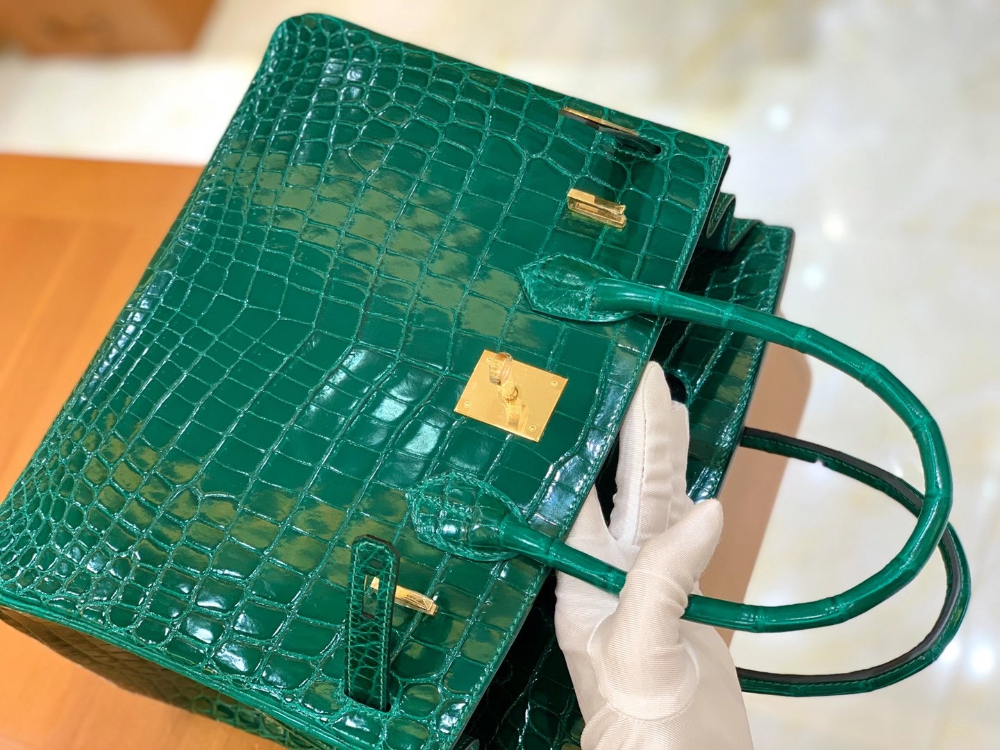 Birkin 30cm Emerald Green Gold Buckle Imported first-class Nile crocodile. All hand-sewn
