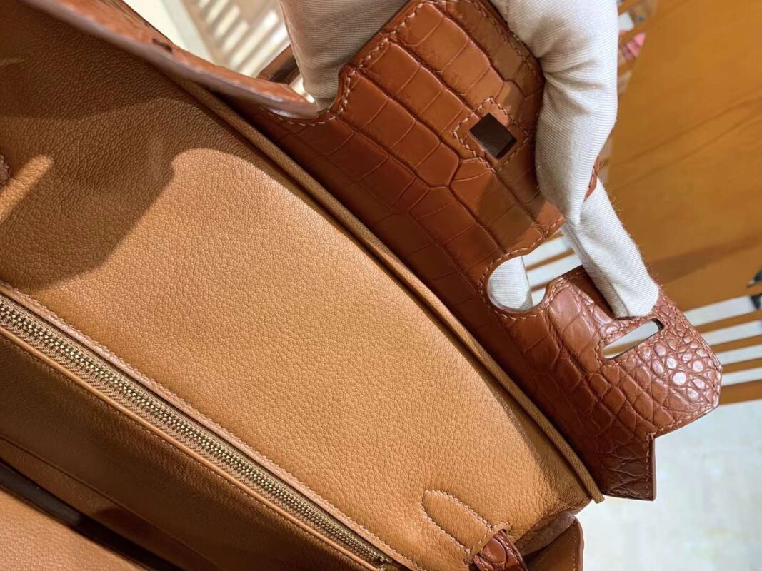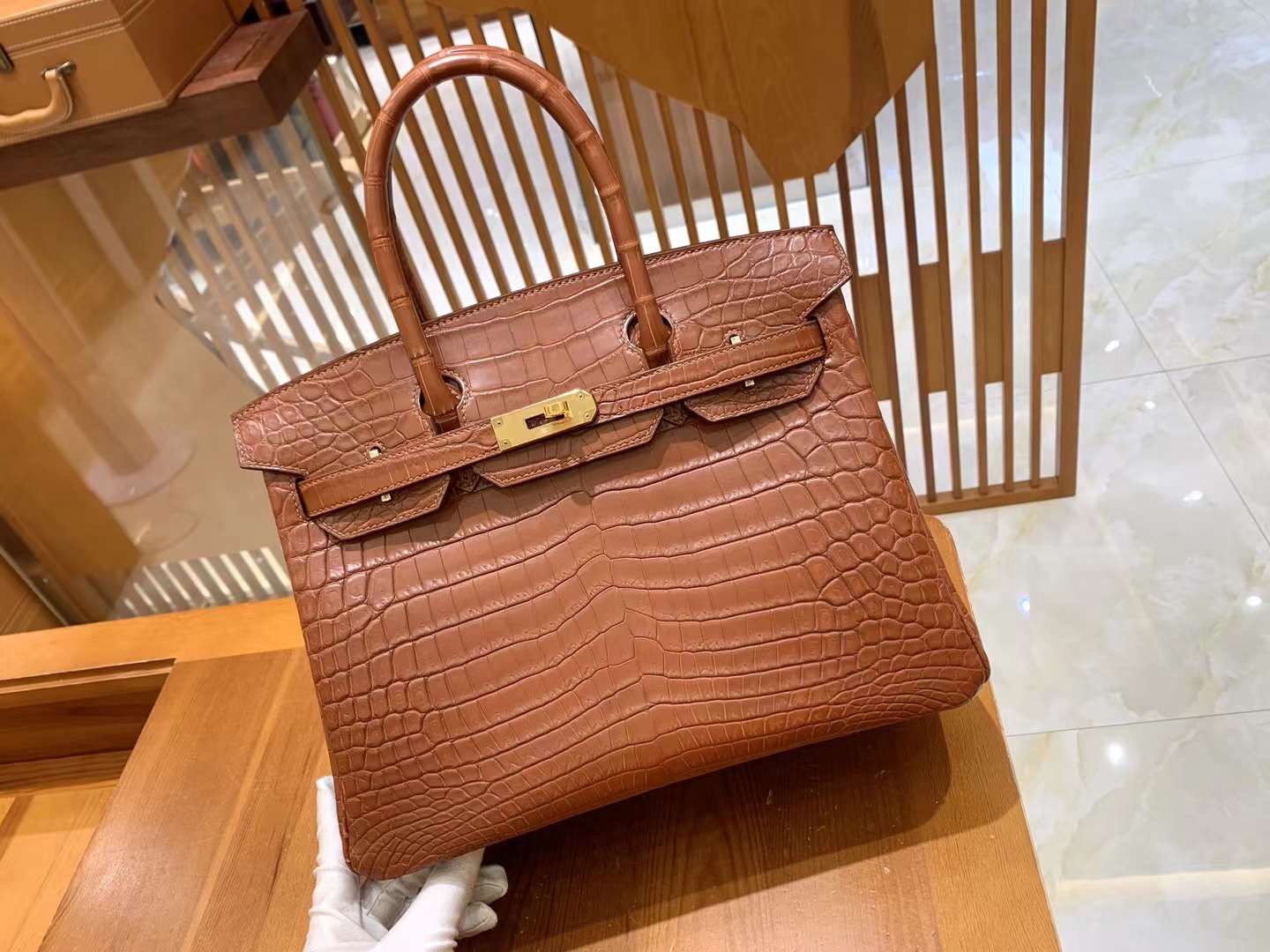Birkin 30cm Golden Brown First-class crocodile leather. Gold buckle. Imported raw materials all hand-sewn