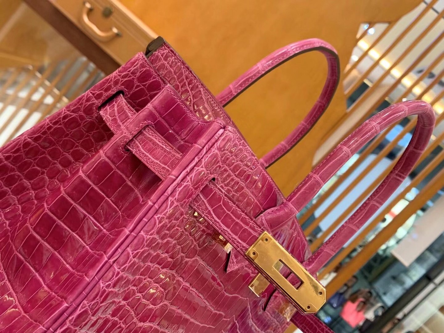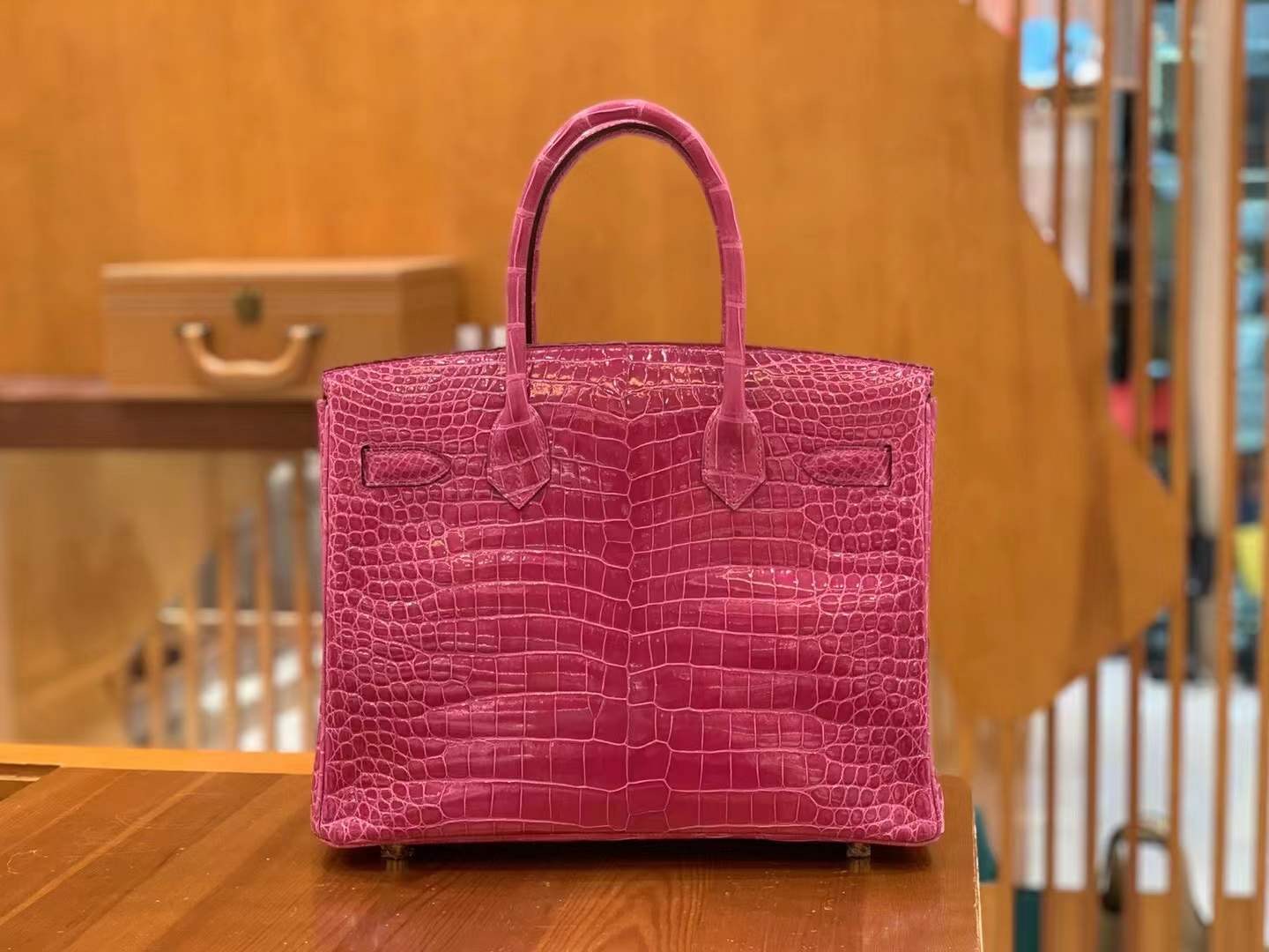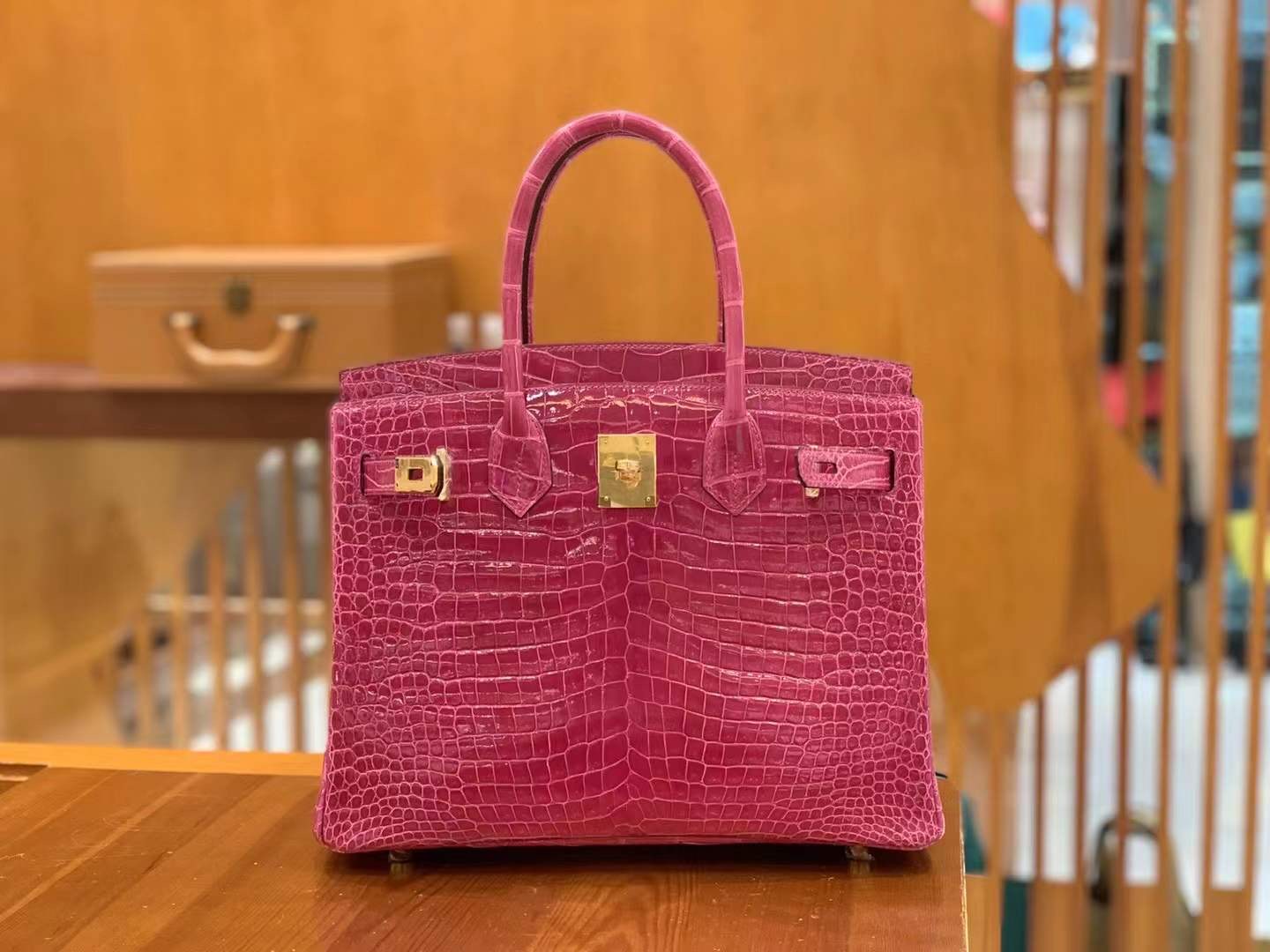 Birkin 30cm Pink Gold Buckle Imported wild crocodile. All hand-sewn