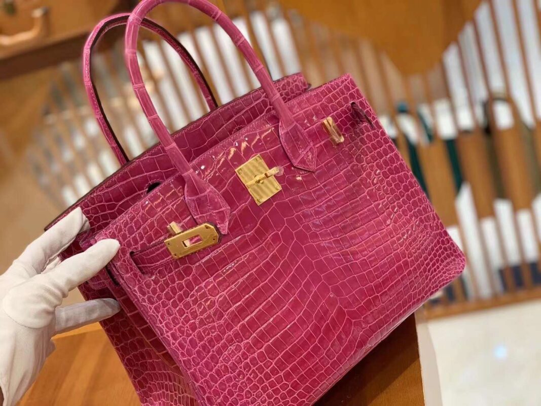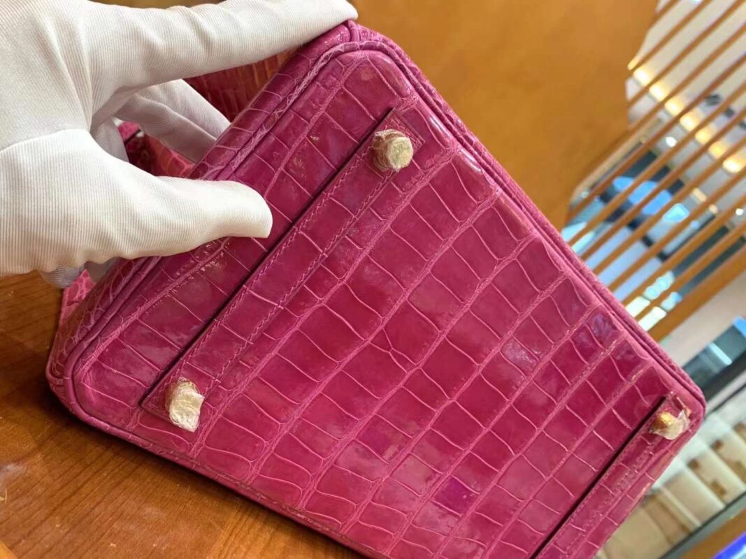 Birkin 30cm Pink Imported wild crocodile. French beeswax thread. 100% hand-sewn