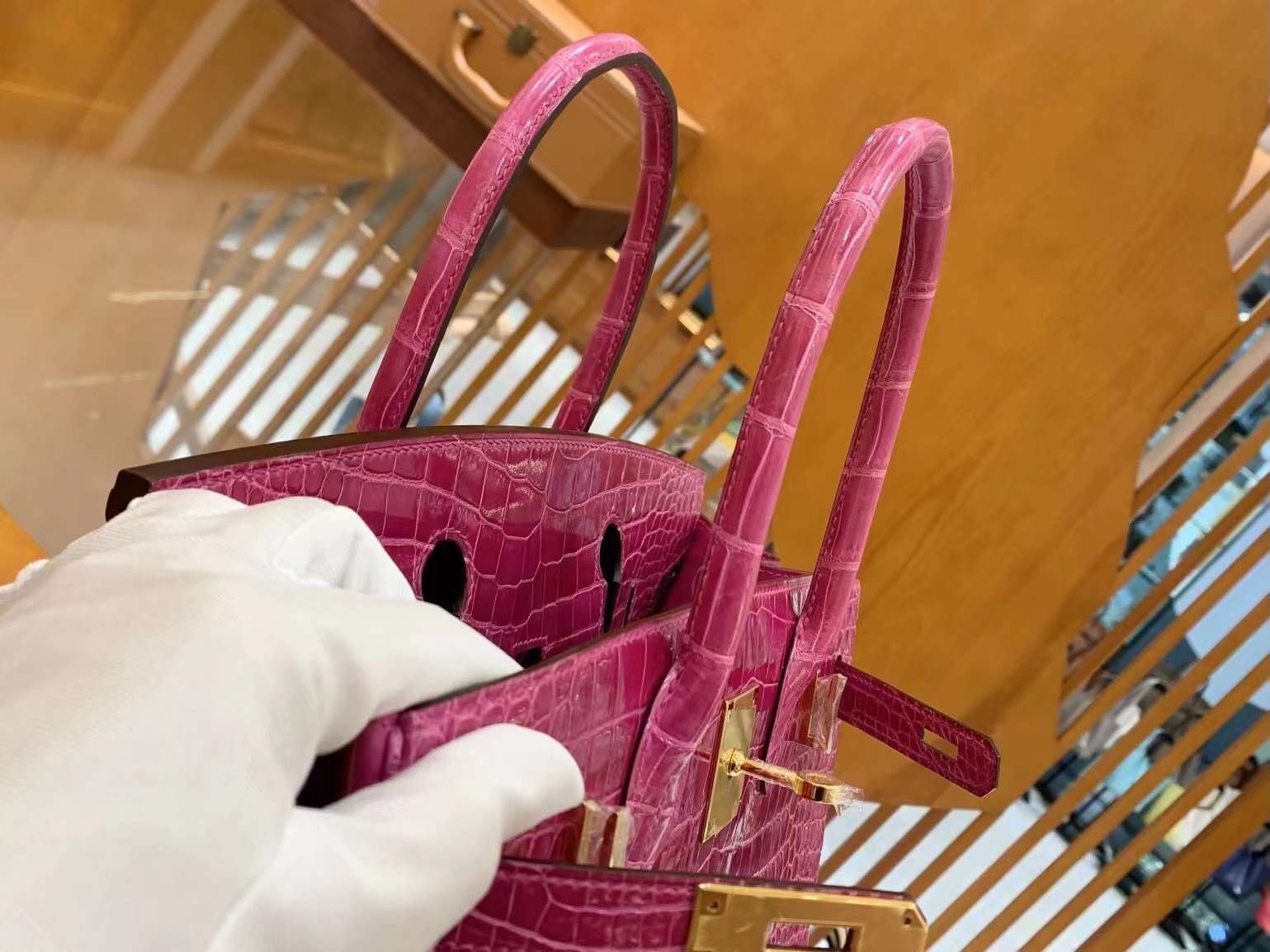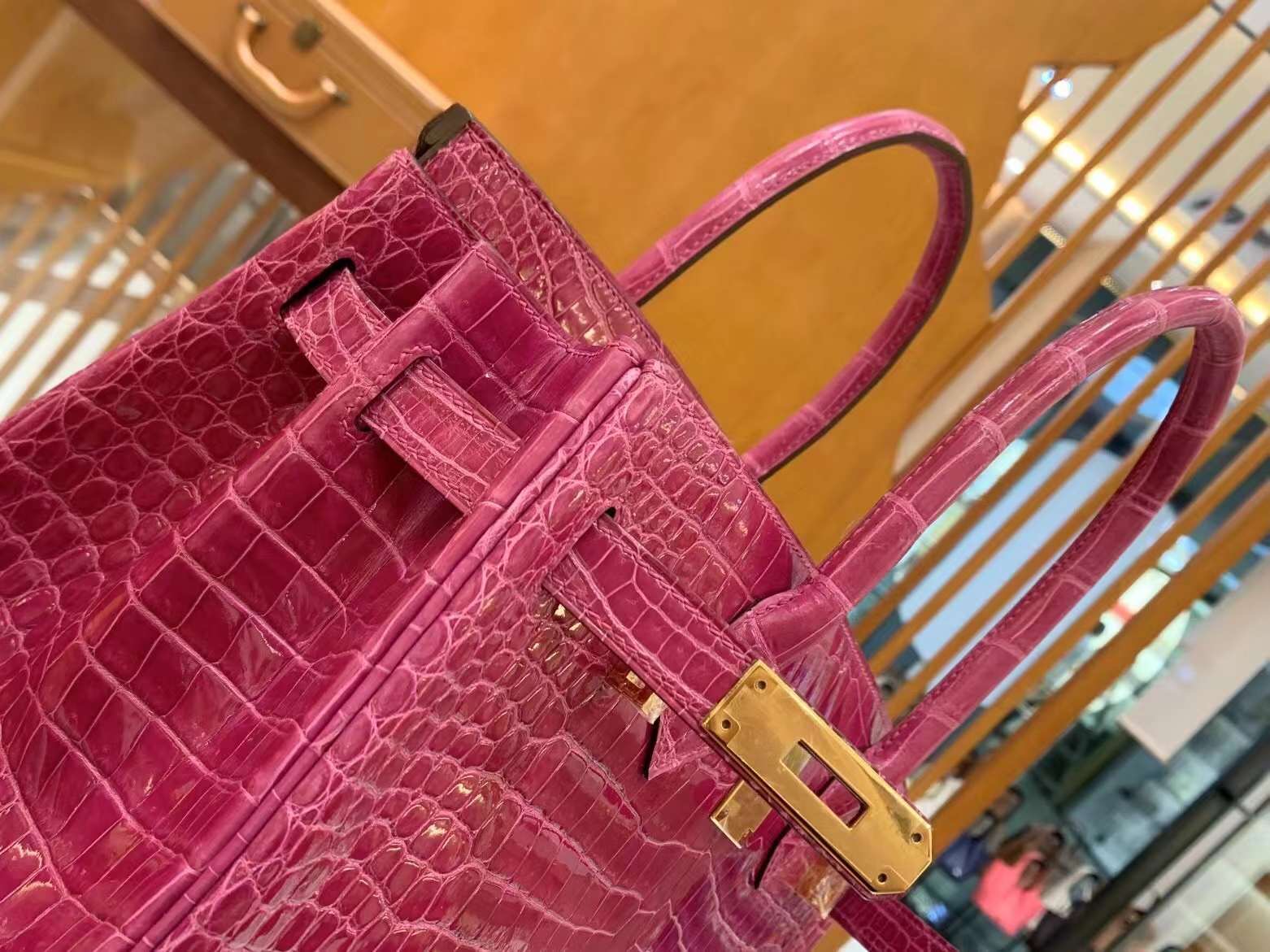 Birkin 30cm Pink Imported wild crocodile. French beeswax thread. 100% hand-sewn