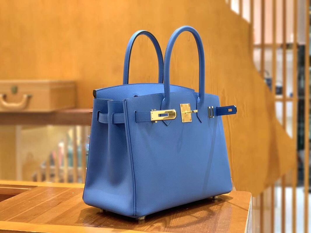 BK30cm love Sea Blue. Gold Buckle Imported Epsom cowhide .French original beeswax thread. Fully hand-sewn
