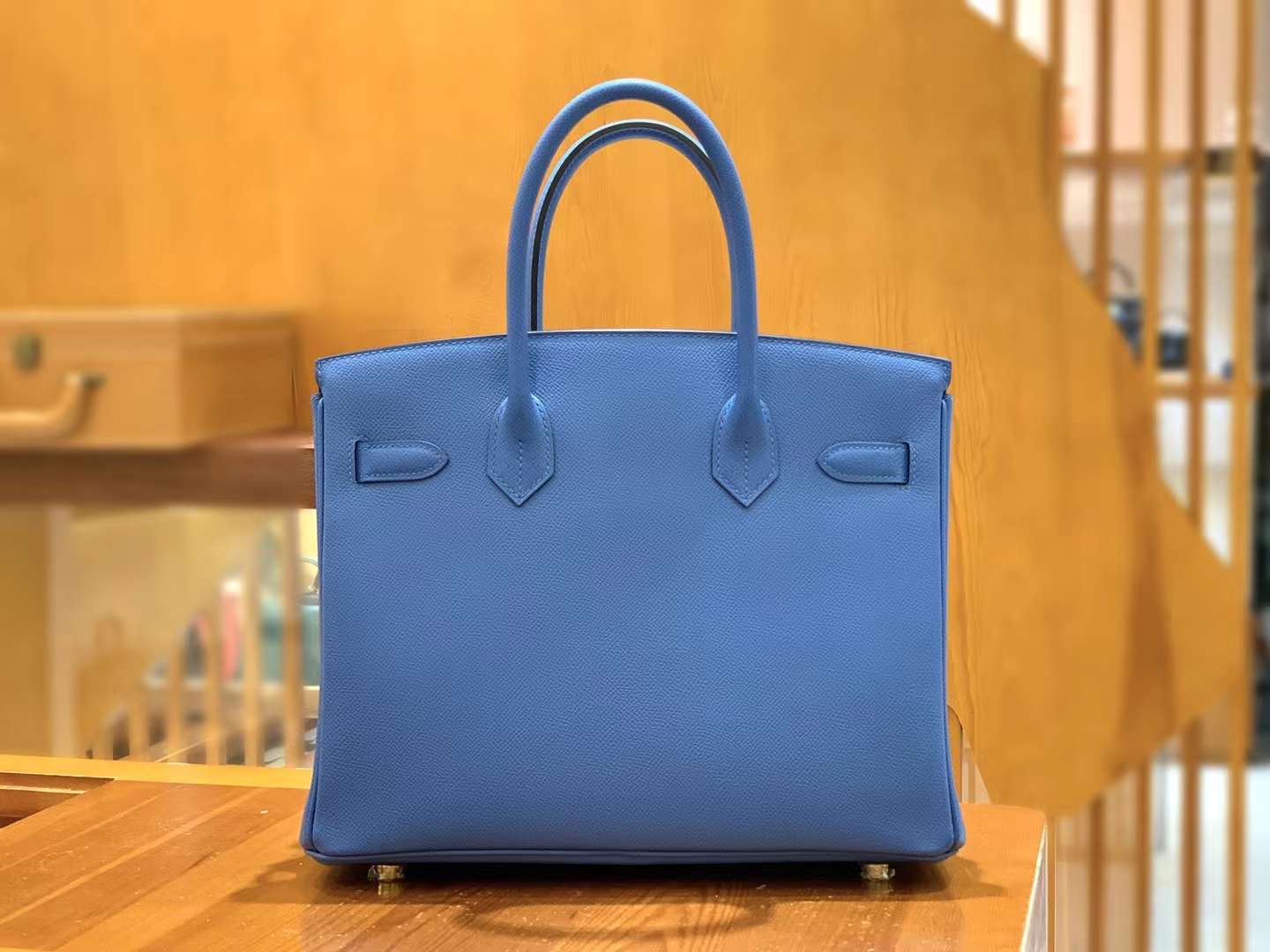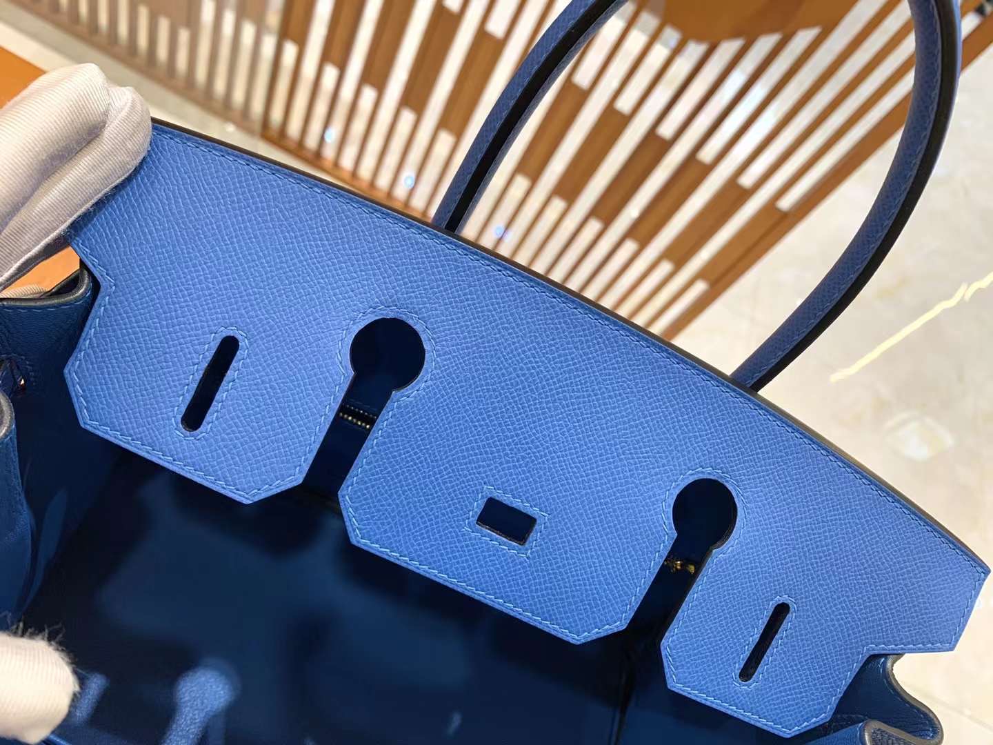 BK30cm love Sea Blue. Gold Buckle Imported Epsom cowhide .French original beeswax thread. Fully hand-sewn
