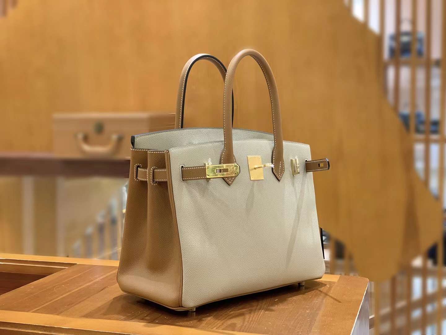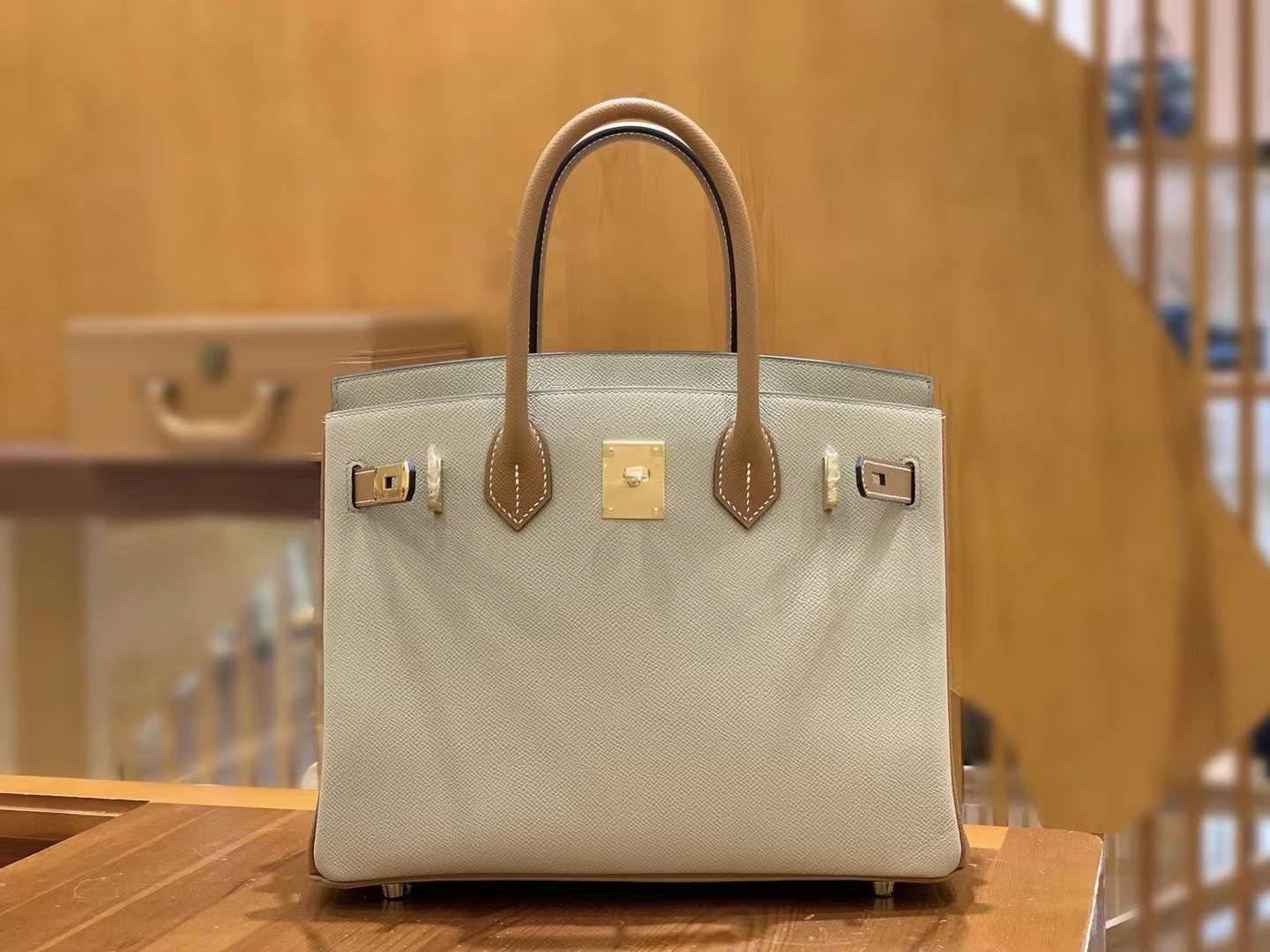 Birkin 30 Epsom Turtle Dove Grey&Golden Brown
