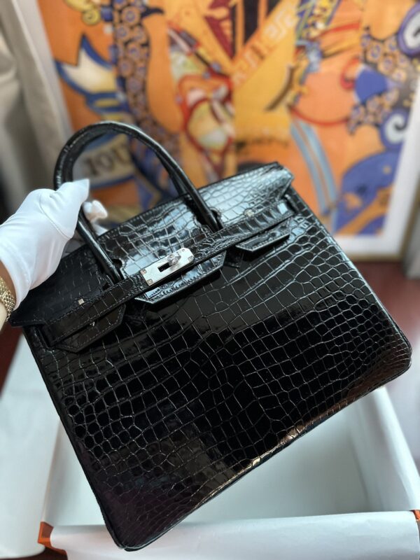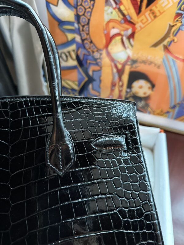 Birkin 30 in Noir Shiny Porosus Crocodile
