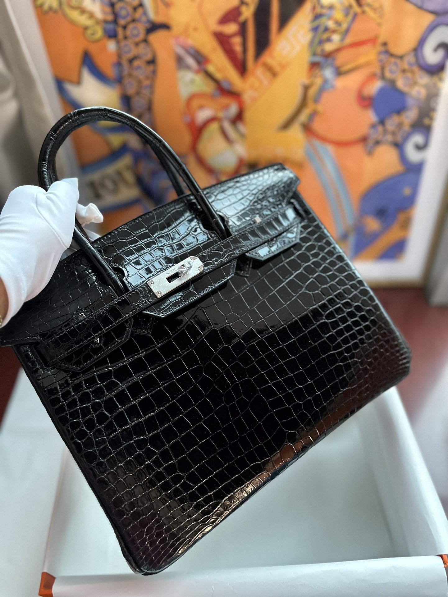Birkin 30 in Noir Shiny Porosus Crocodile