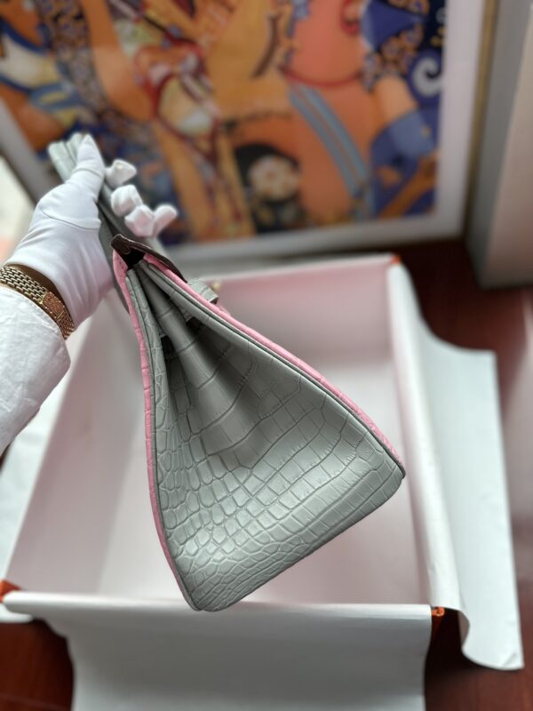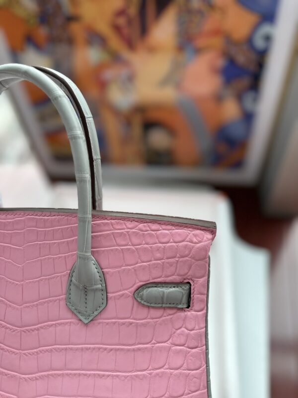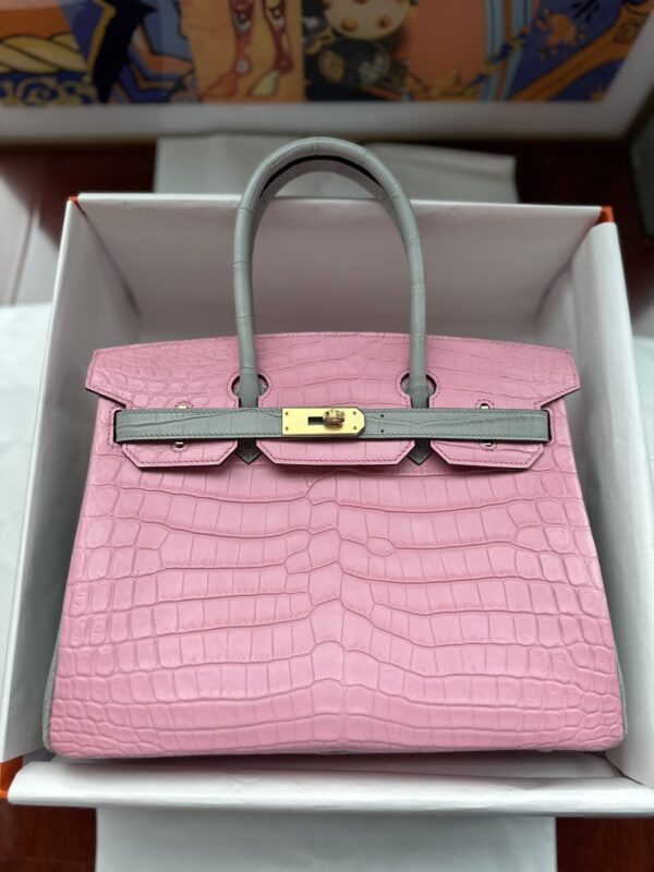 Birkin 30 in Rose Sakura & Gris Perle Matte Niloticus Crocodile |