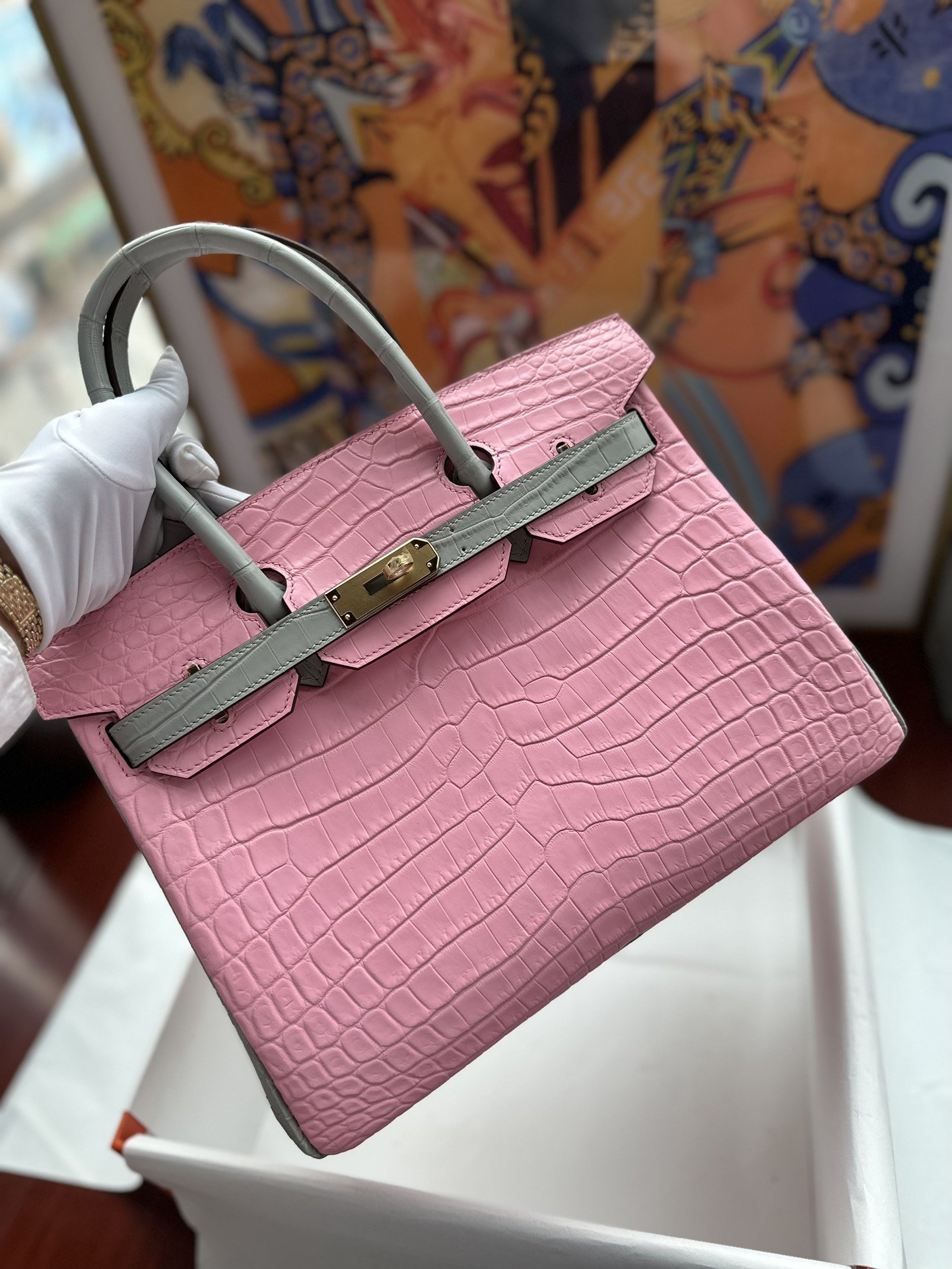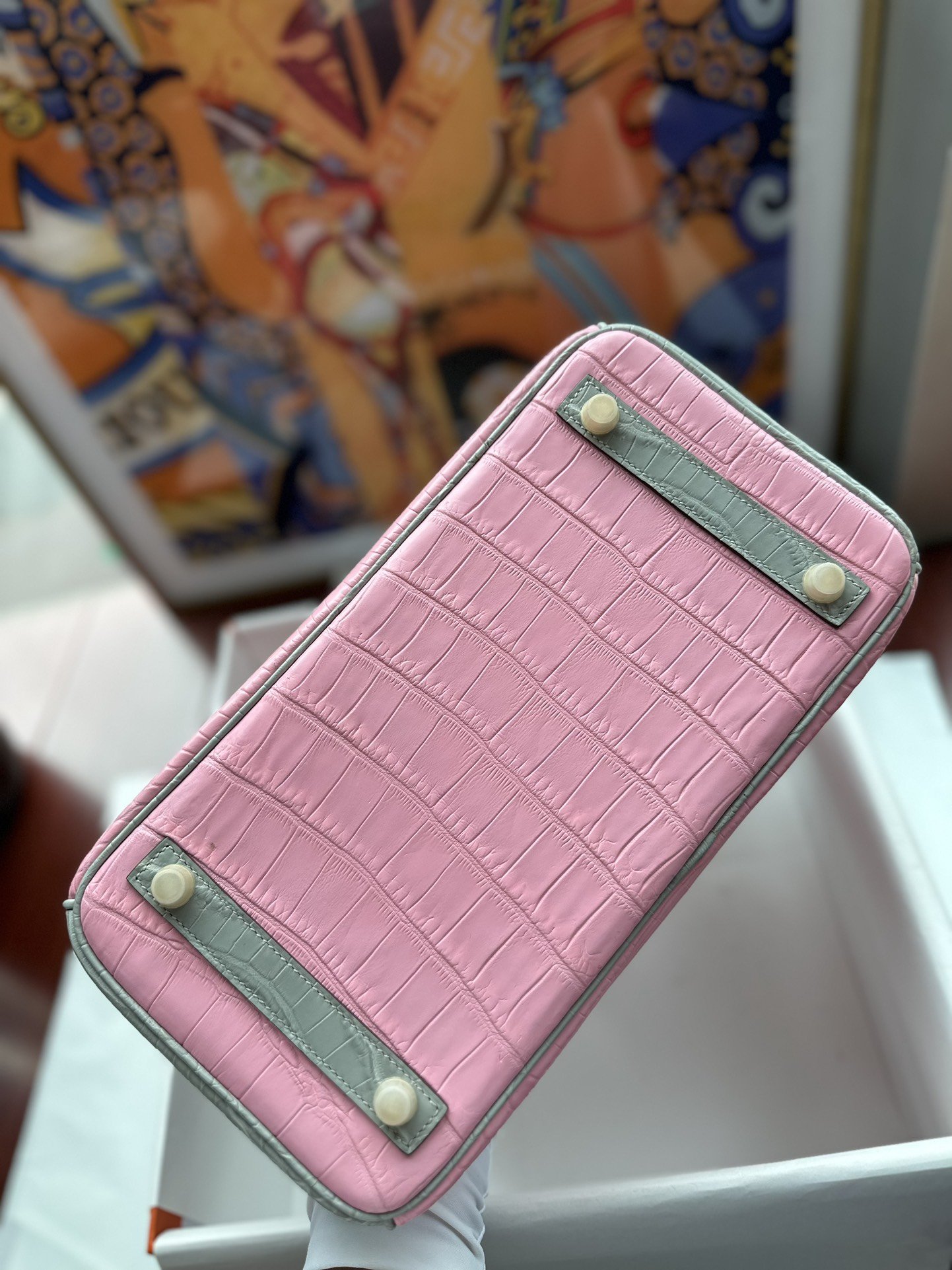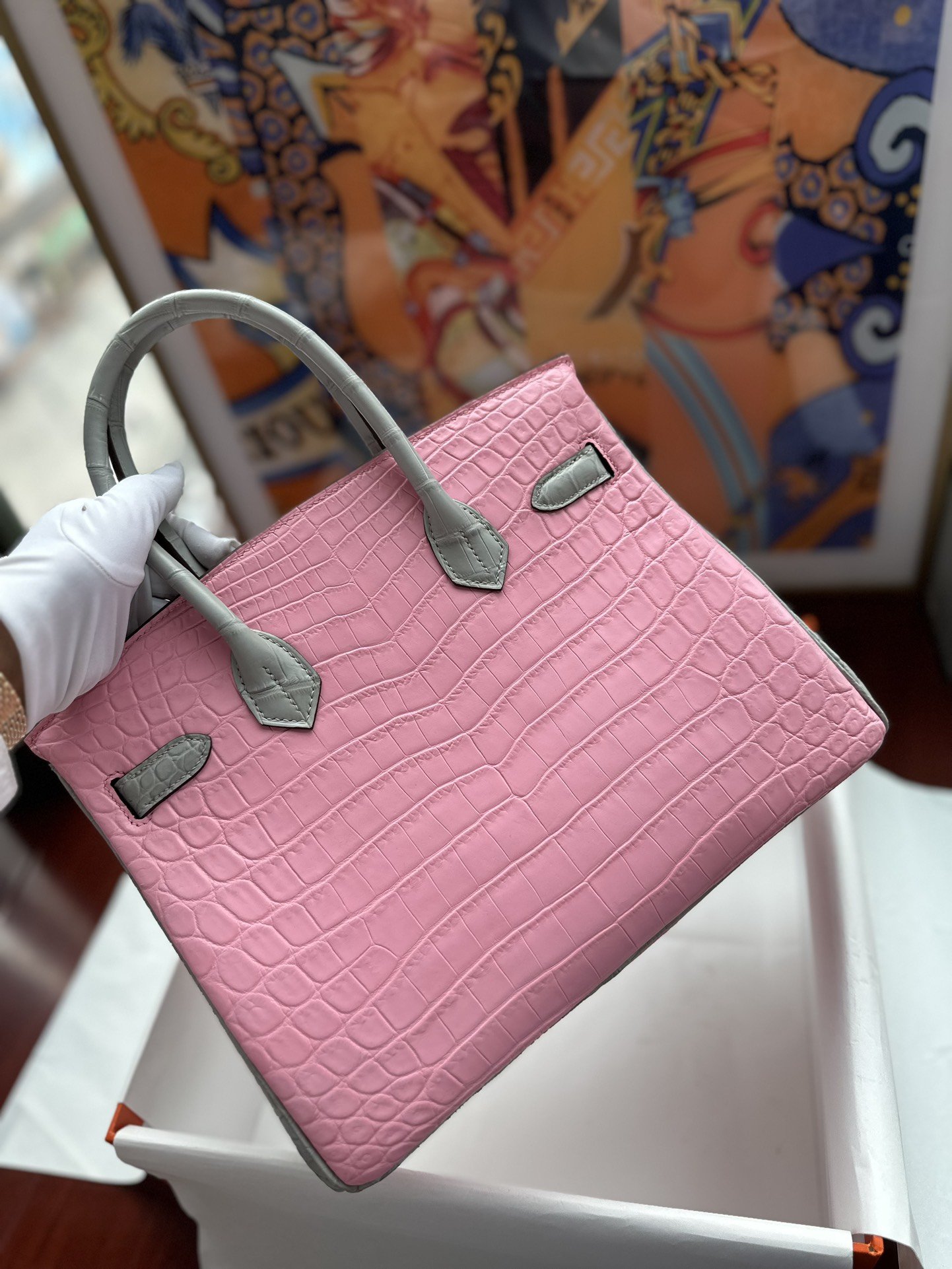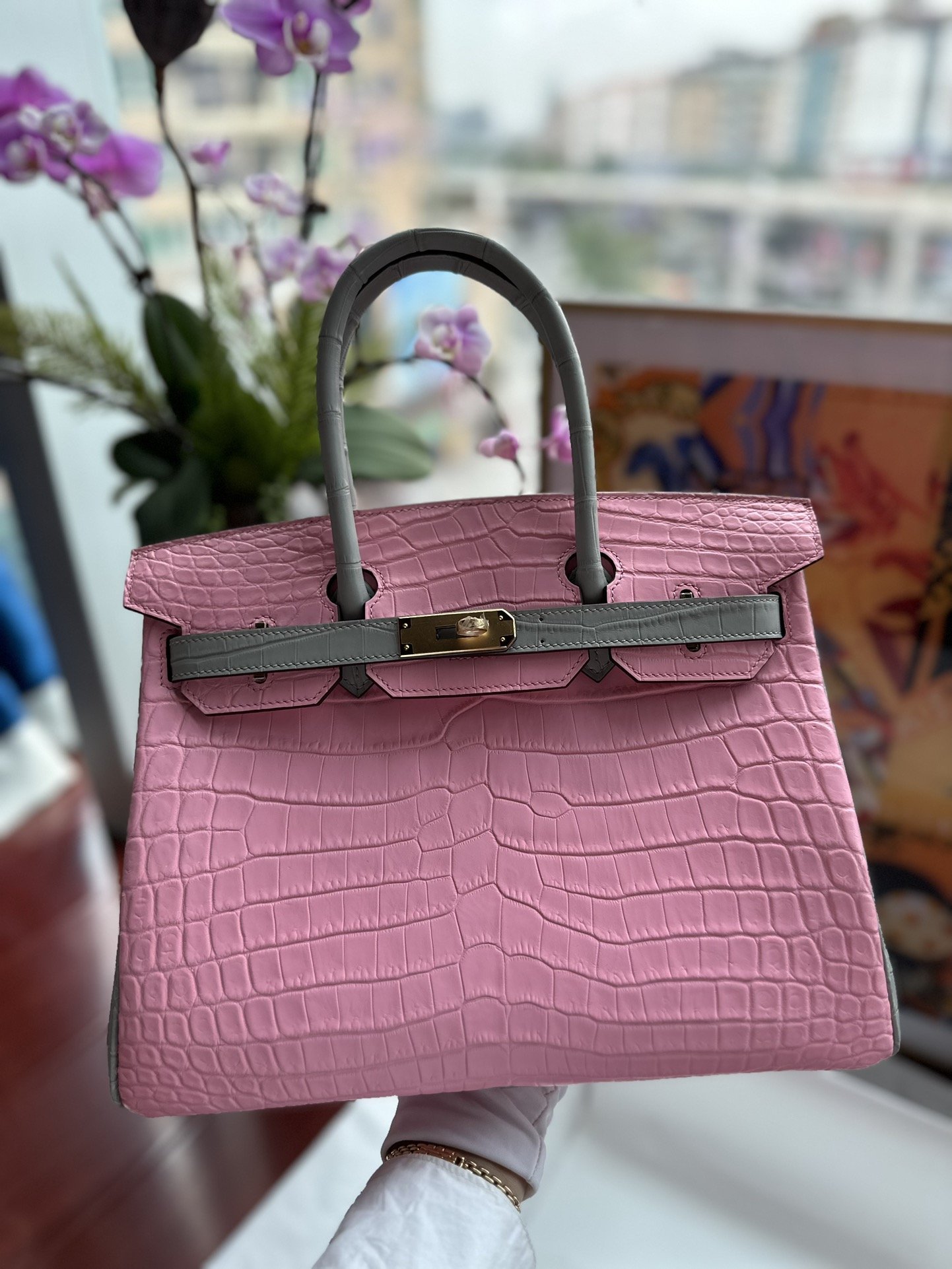 Birkin 30 in Rose Sakura & Gris Perle Matte Niloticus Crocodile |
