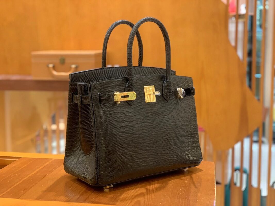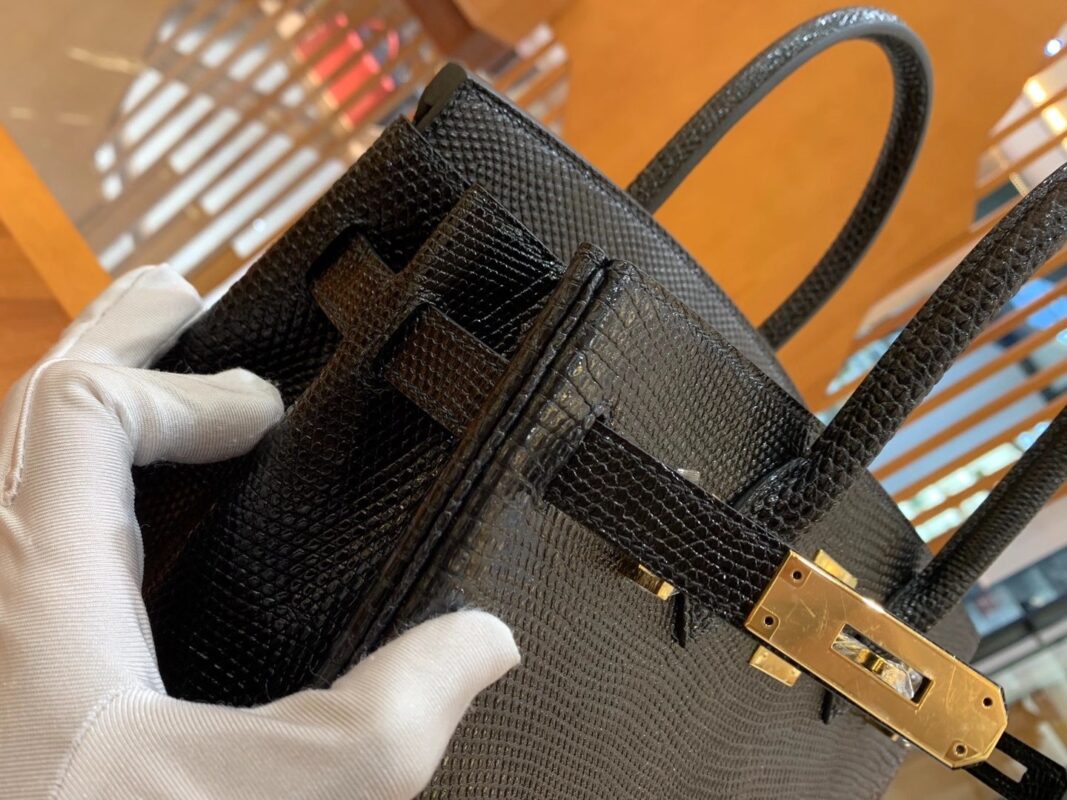 Birkin 30cm Black GoldImported wild lizard skin. All hand-sewn