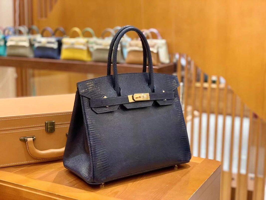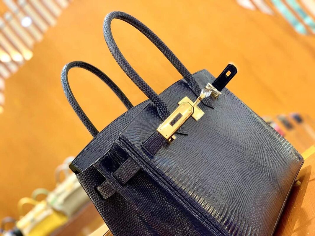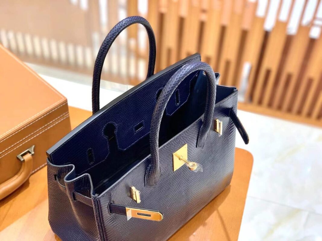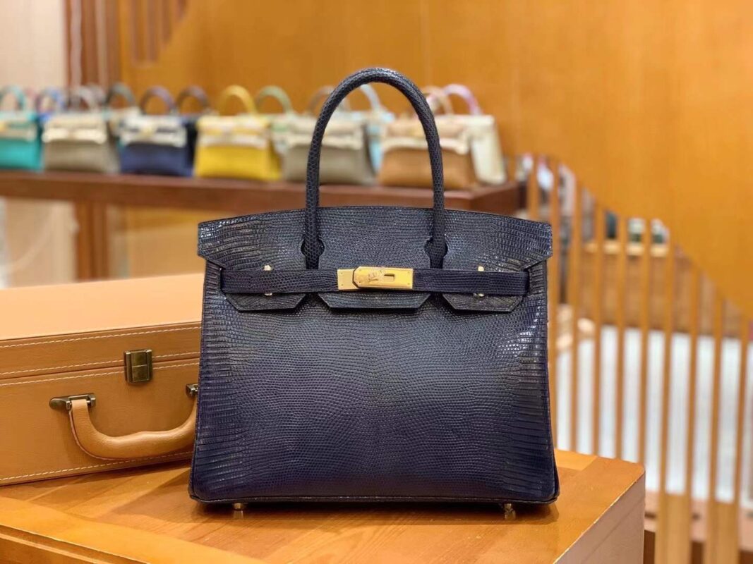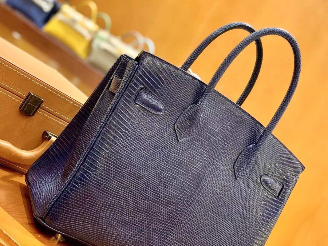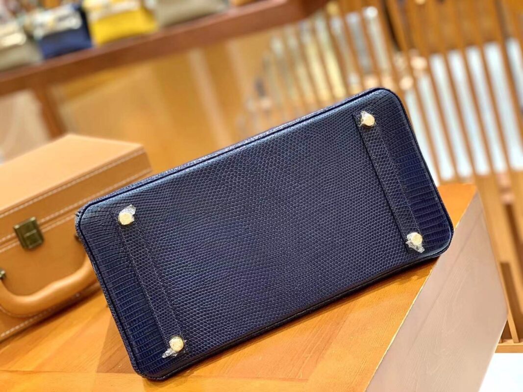 Birkin 30cm Midnight BlueImported wild lizard skin. All hand-sewn
