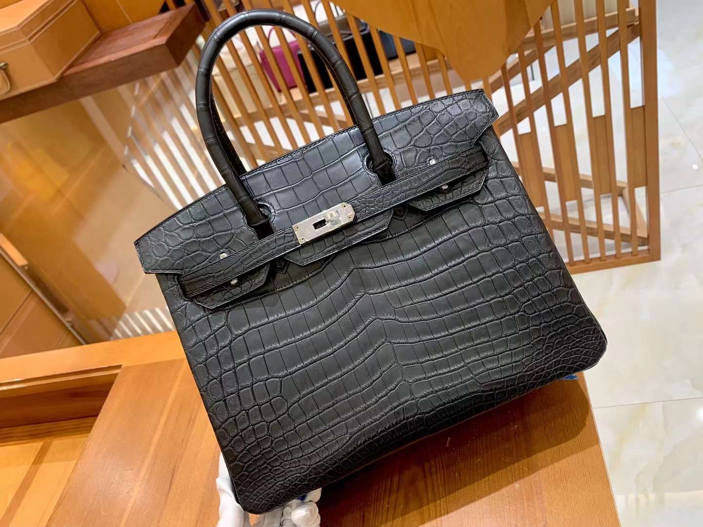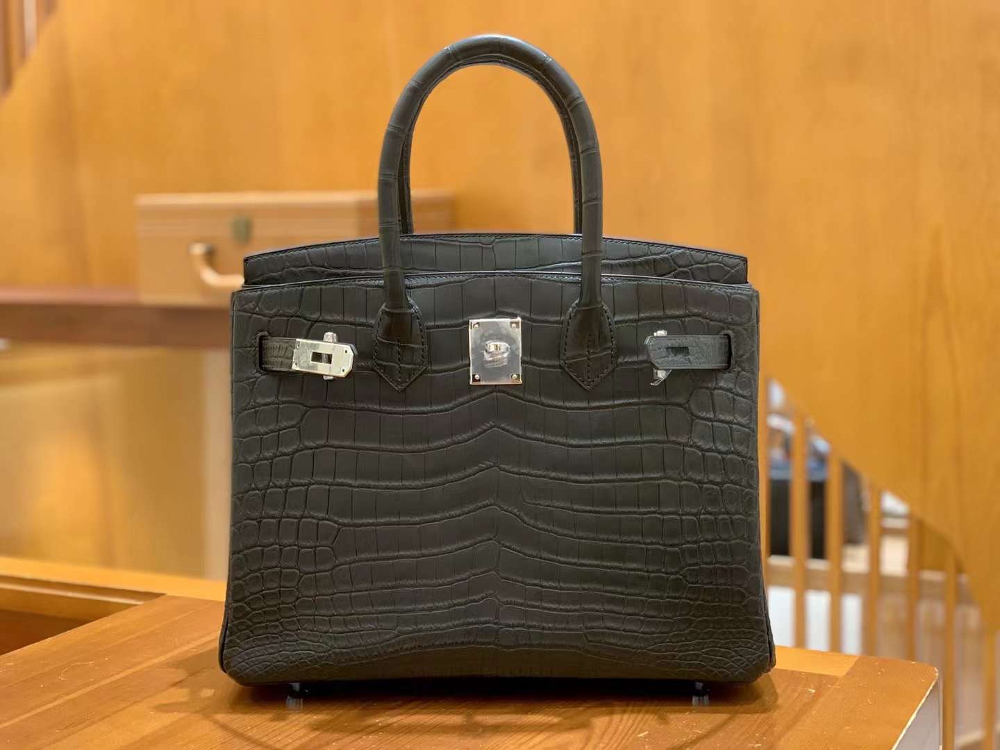 Birkin 30cm black First-class Nile crocodile leather. Silver buckle im3ported raw materials. All hand-sewn