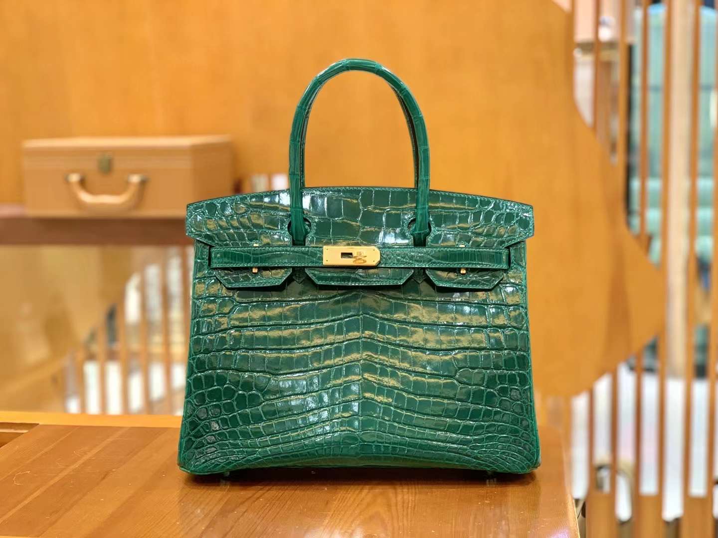 Birkin 30cm Emerald Green First Class Nile Crocodile Leather. Gold Buckle Imported Raw Materials. All Hand Sewn