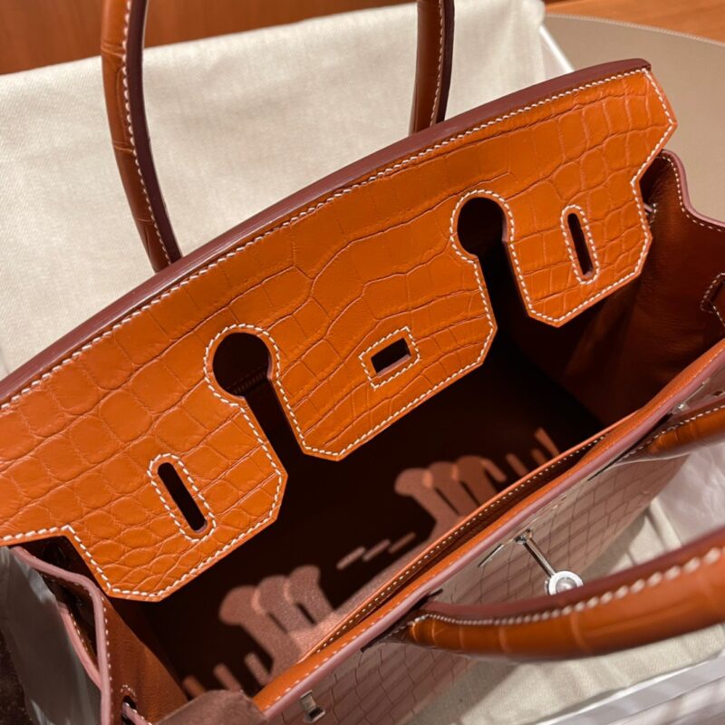 Birkin 30cm Nile Crocodile Matte. 34 Fauve. Silver Buckle