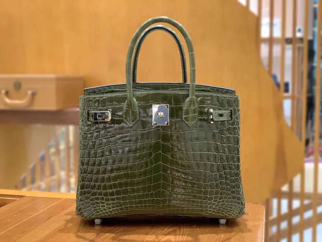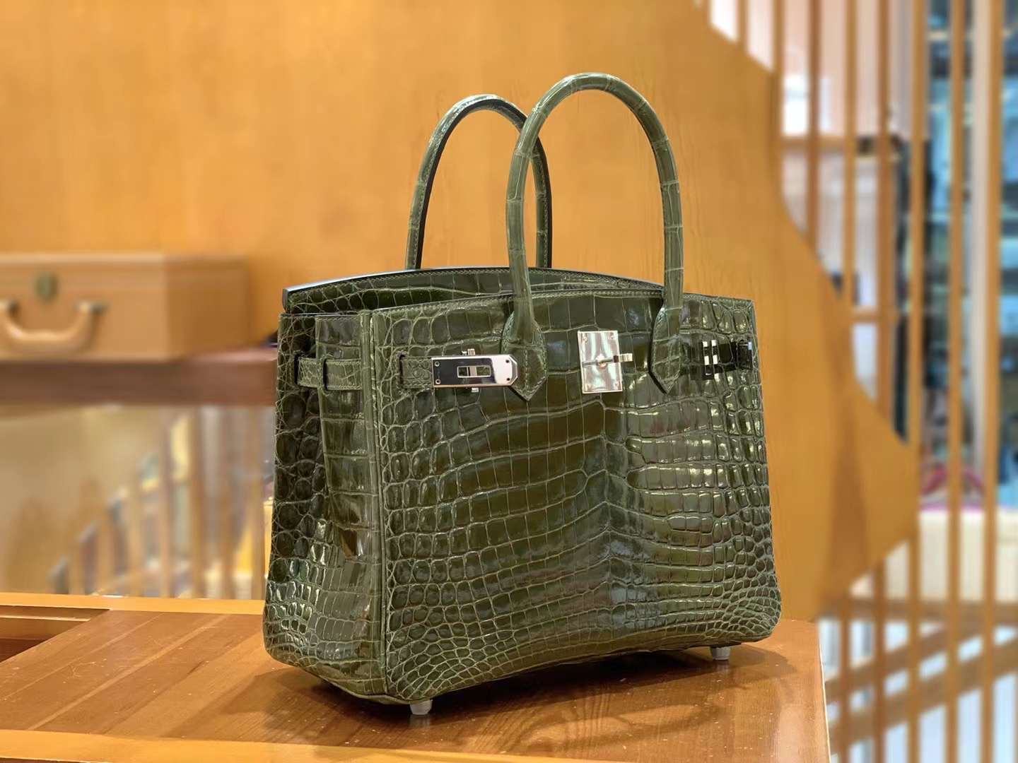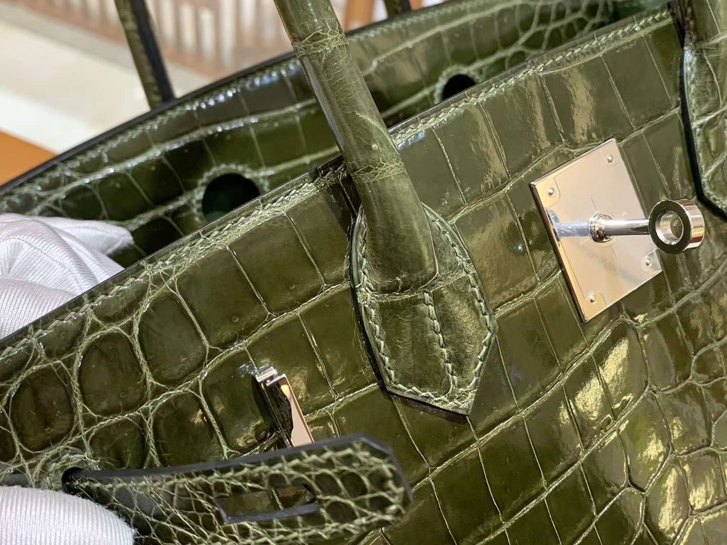 Birkin 30cm Olive Green First-class Nile crocodile leather. Silver buckle Imported raw materials. Fully hand-sewn